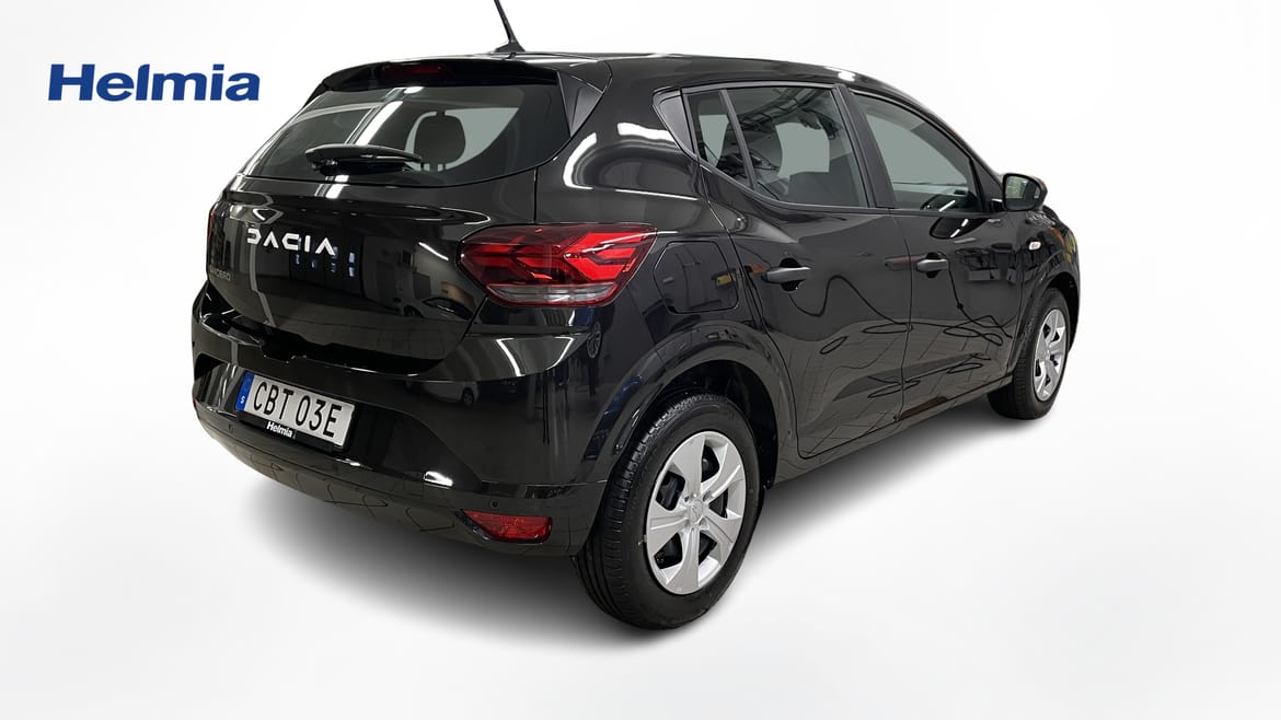 En svart begagnad Dacia Sandero som är tillverkad 2025 med årsmodell 2025 och har utrustningspaketet med 91 hk. Fordonet finns i Karlstad med reg. nummer CBT03E, har manuell-växellåda och mätarställning är 150 mil. Fordonet har totalt 5 st sittplatser och är kategoriserad som liten familjebil.