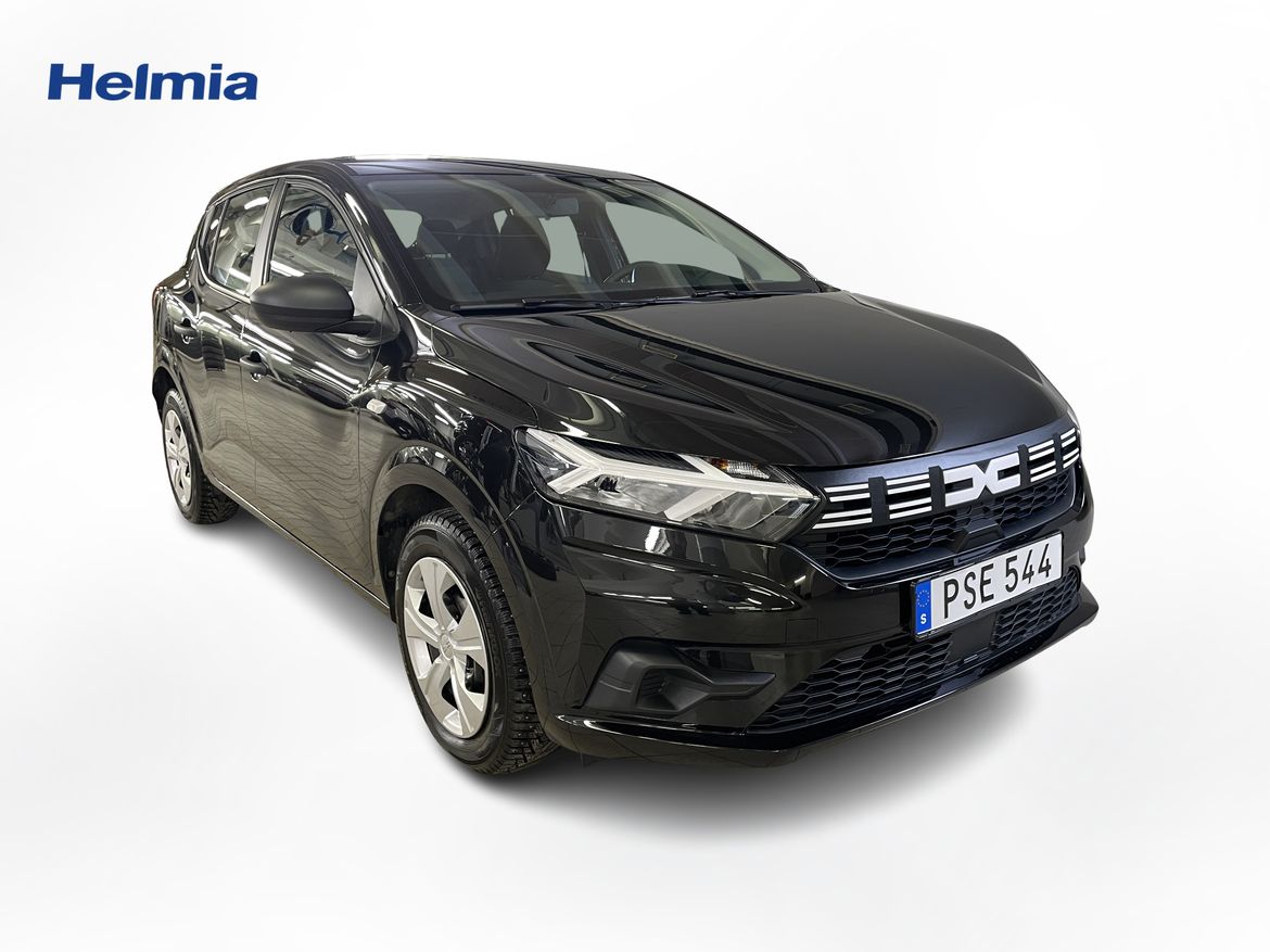 En svart begagnad Dacia Sandero som är tillverkad 2022 med årsmodell 2023 och har utrustningspaketet med 91 hk. Fordonet finns i Karlstad med reg. nummer PSE544, har manuell-växellåda och mätarställning är 2.016 mil. Fordonet har totalt 5 st sittplatser och är kategoriserad som liten familjebil.
