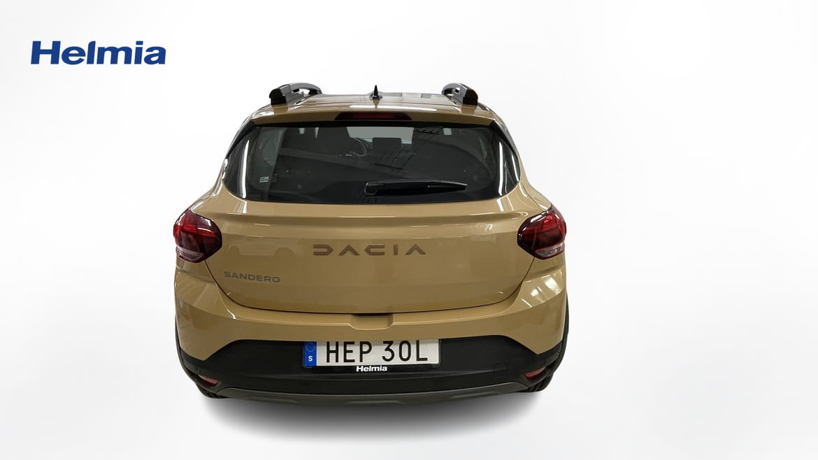 En brun begagnad Dacia Sandero Stepway som är tillverkad 2024 med årsmodell 2025 och har utrustningspaketet med 91 hk. Fordonet finns i Arvika med reg. nummer HEP30L, har automat-växellåda och mätarställning är 800 mil. Fordonet har totalt 5 st sittplatser och är kategoriserad som liten familjebil.
