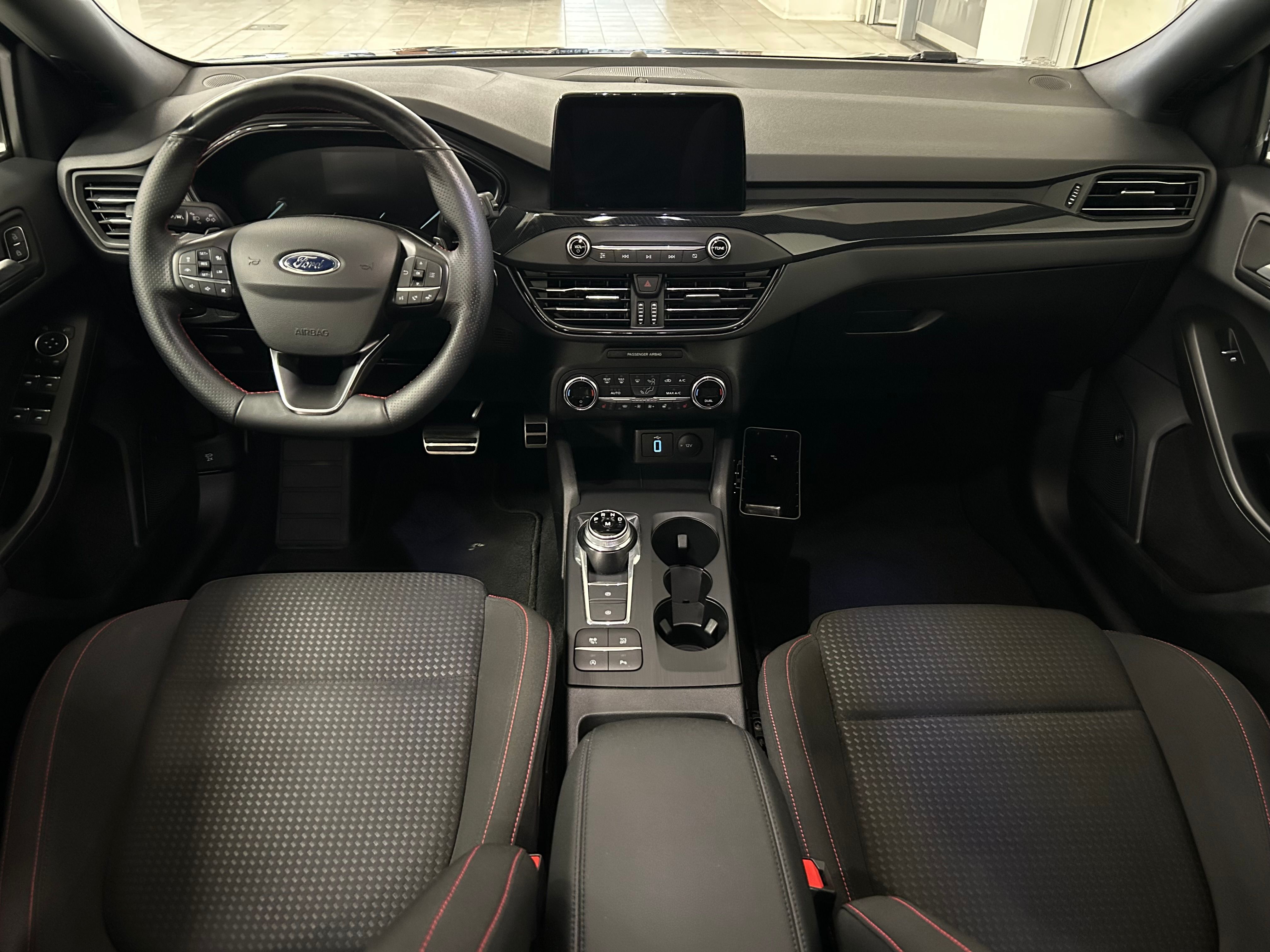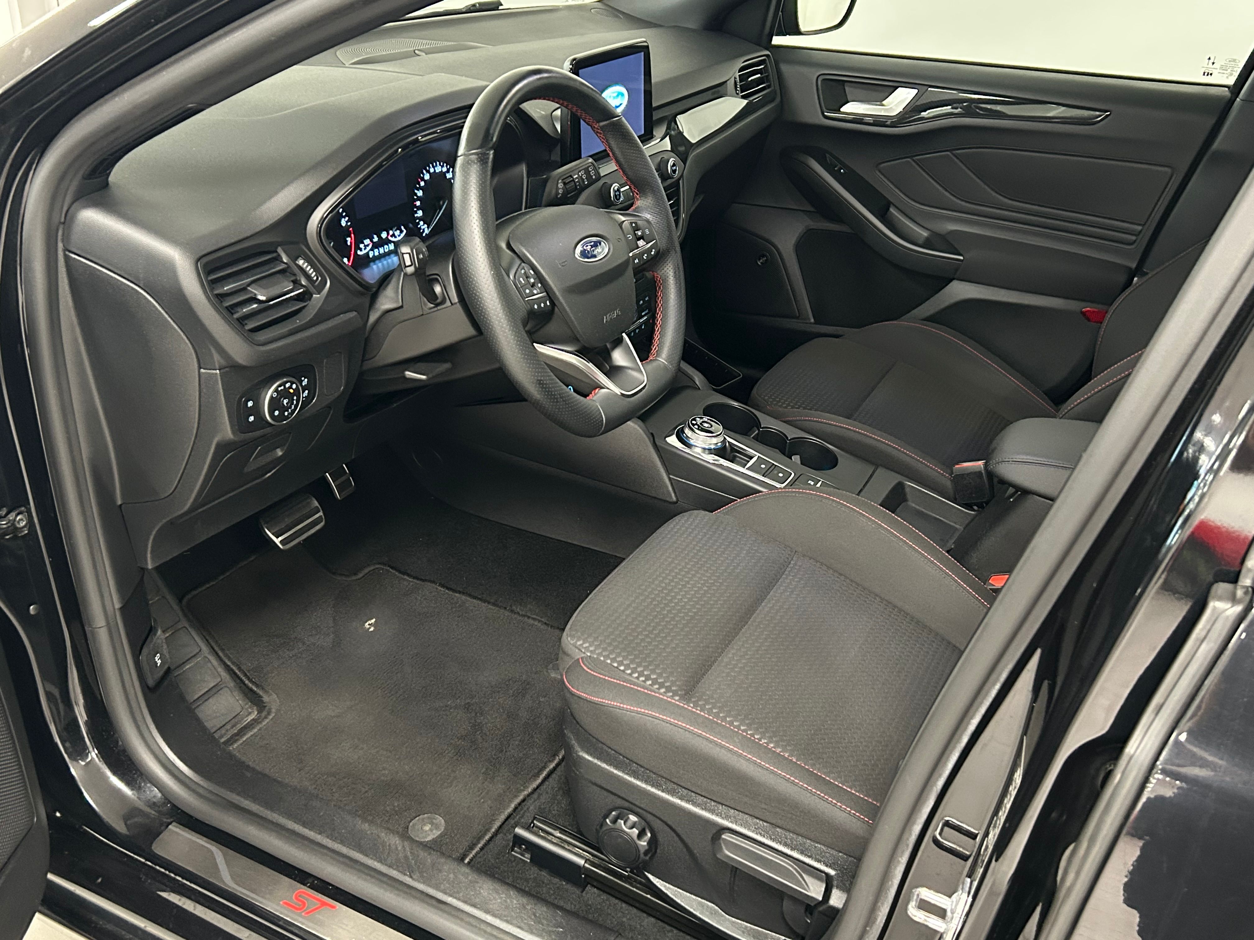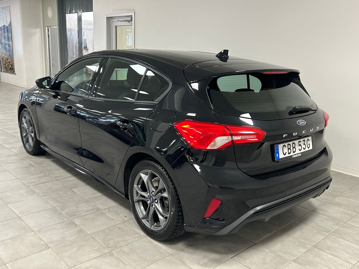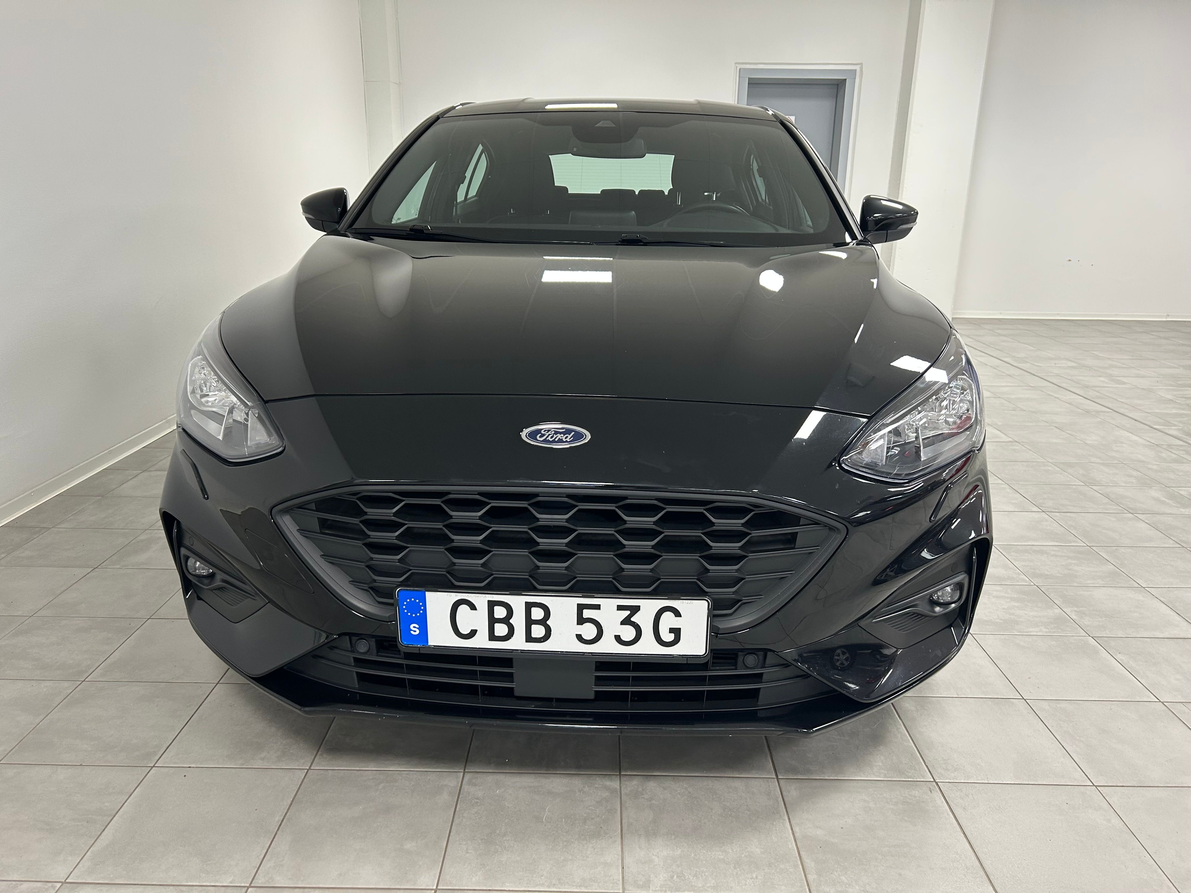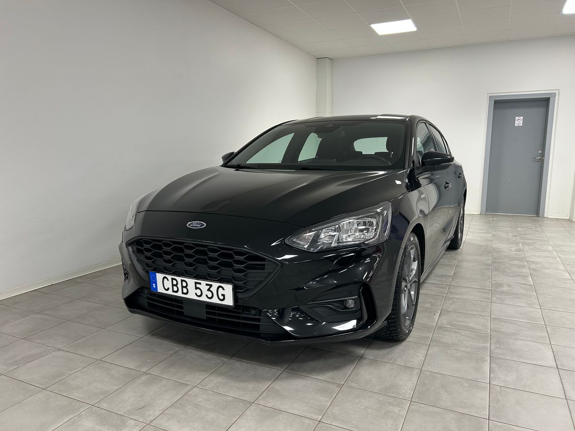En svart begagnad Ford Focus som är tillverkad 2019 med årsmodell 2020 och har utrustningspaketet ST-Line med 150 hk. Fordonet finns i Filipstad med reg. nummer CBB53G, har automat-växellåda och mätarställning är 7.487 mil. Fordonet har totalt 5 st sittplatser och är kategoriserad som mellanstor familjebil.