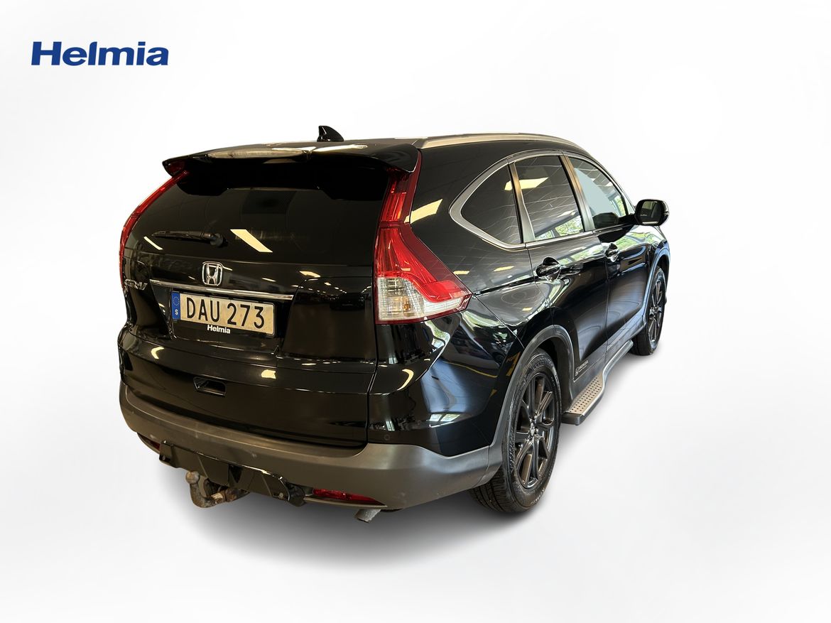 En svart begagnad Honda CR-V som är tillverkad 2014 med årsmodell 2014 och har utrustningspaketet med 150 hk. Fordonet finns i Karlskoga med reg. nummer DAU273, har manuell-växellåda och mätarställning är 24.300 mil. Fordonet har totalt 5 st sittplatser och är kategoriserad som mellanstor suv.