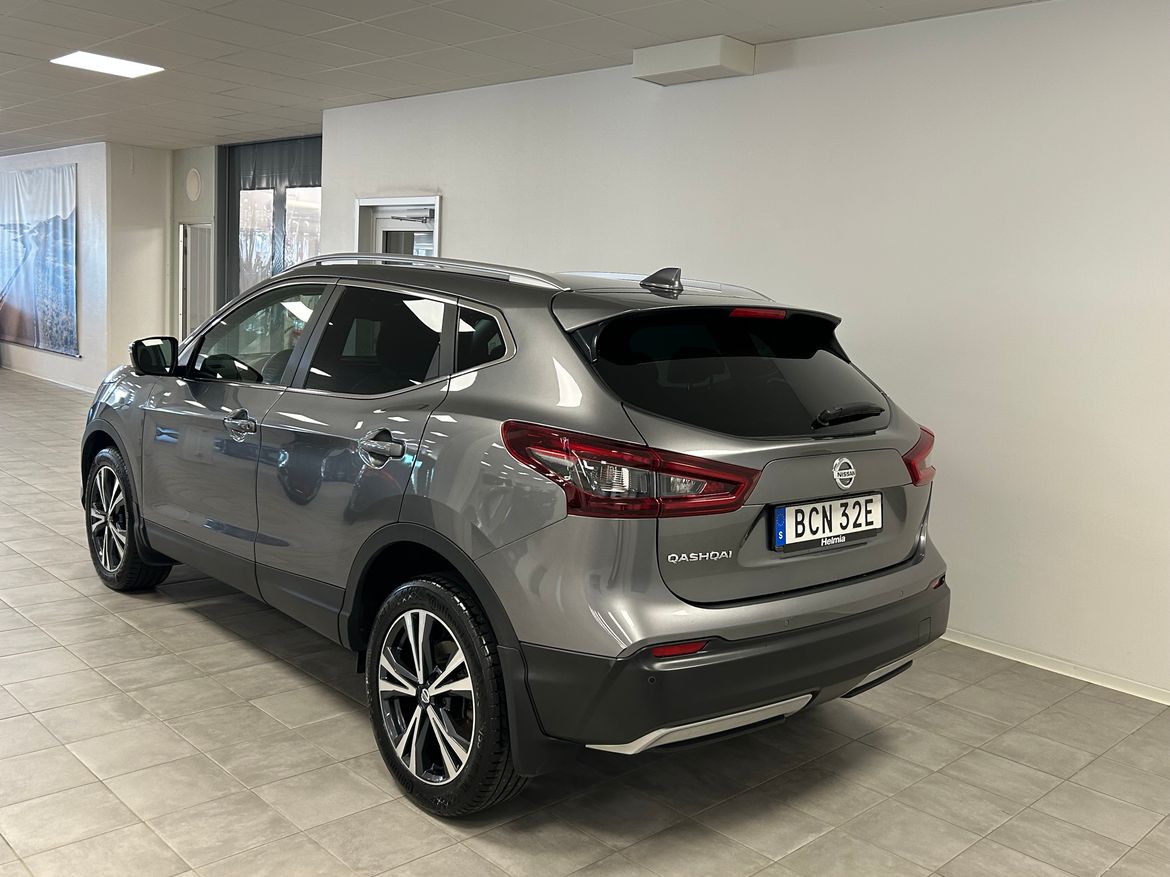 En grå begagnad Nissan Qashqai som är tillverkad 2019 med årsmodell 2020 och har utrustningspaketet med 160 hk. Fordonet finns i Filipstad med reg. nummer BCN32E, har automat-växellåda och mätarställning är 6.747 mil. Fordonet har totalt 5 st sittplatser och är kategoriserad som mellanstor suv.