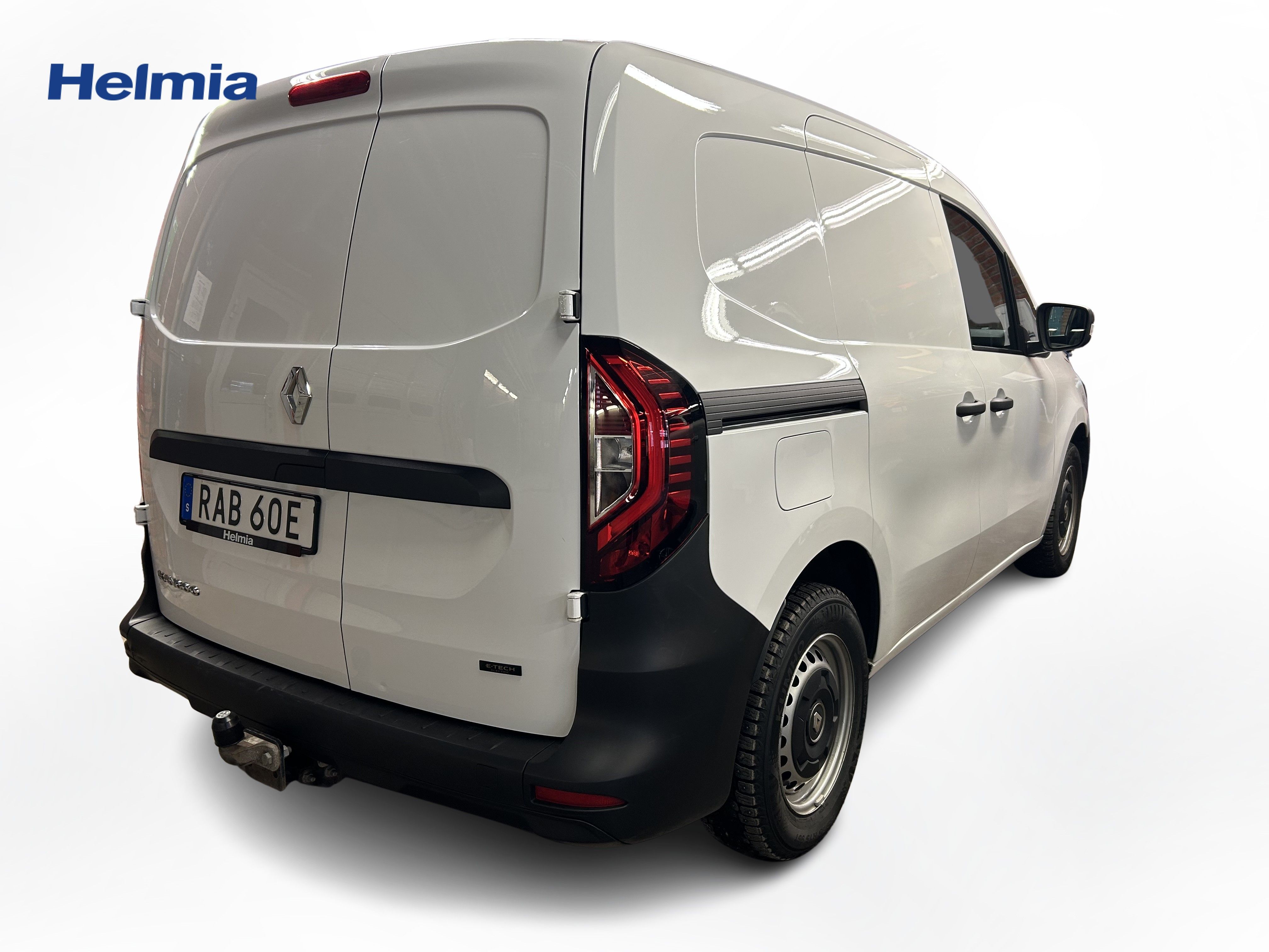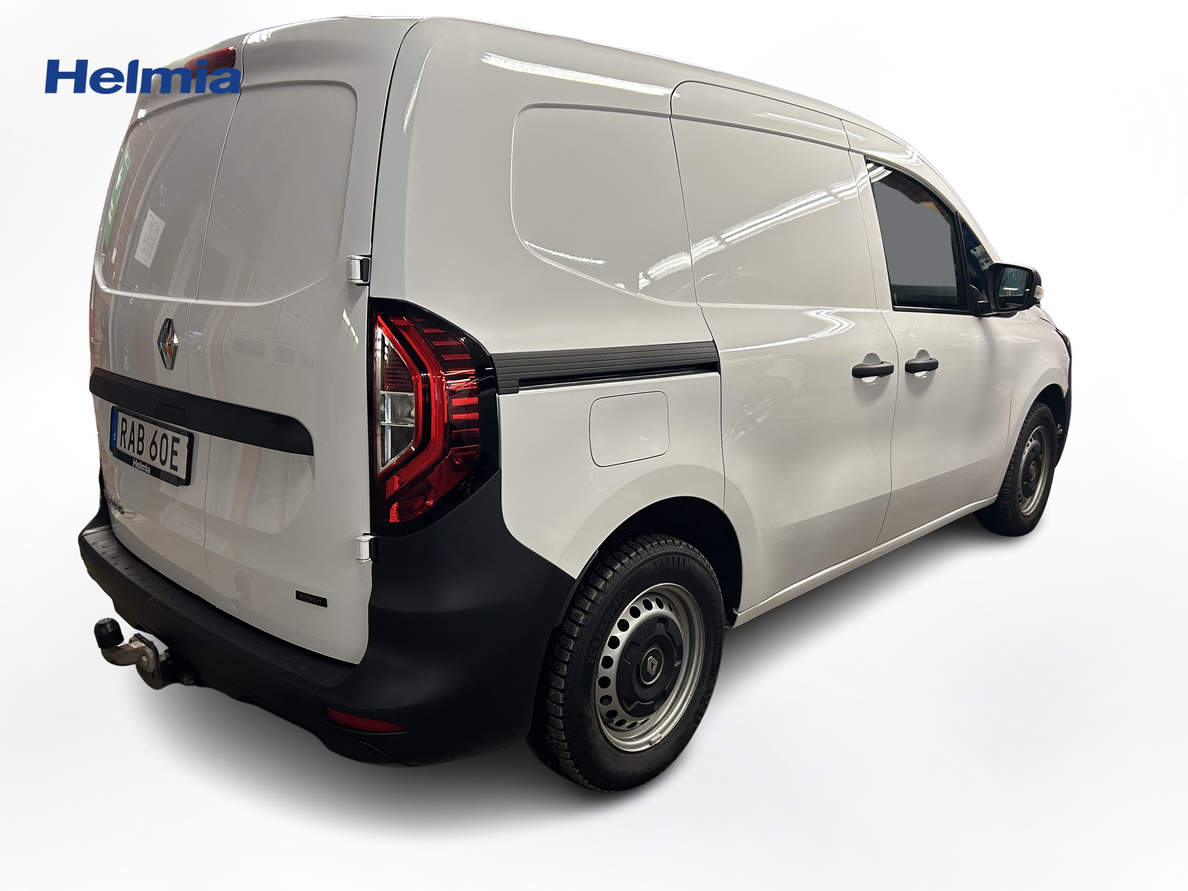 En vit begagnad Renault Kangoo E-Tech som är tillverkad 2022 med årsmodell 2023 och har utrustningspaketet med 122 hk. Fordonet finns i Karlskoga med reg. nummer RAB60E, har automat-växellåda och mätarställning är 3.333 mil. Fordonet har totalt 2 st sittplatser och är kategoriserad som skåpbil.