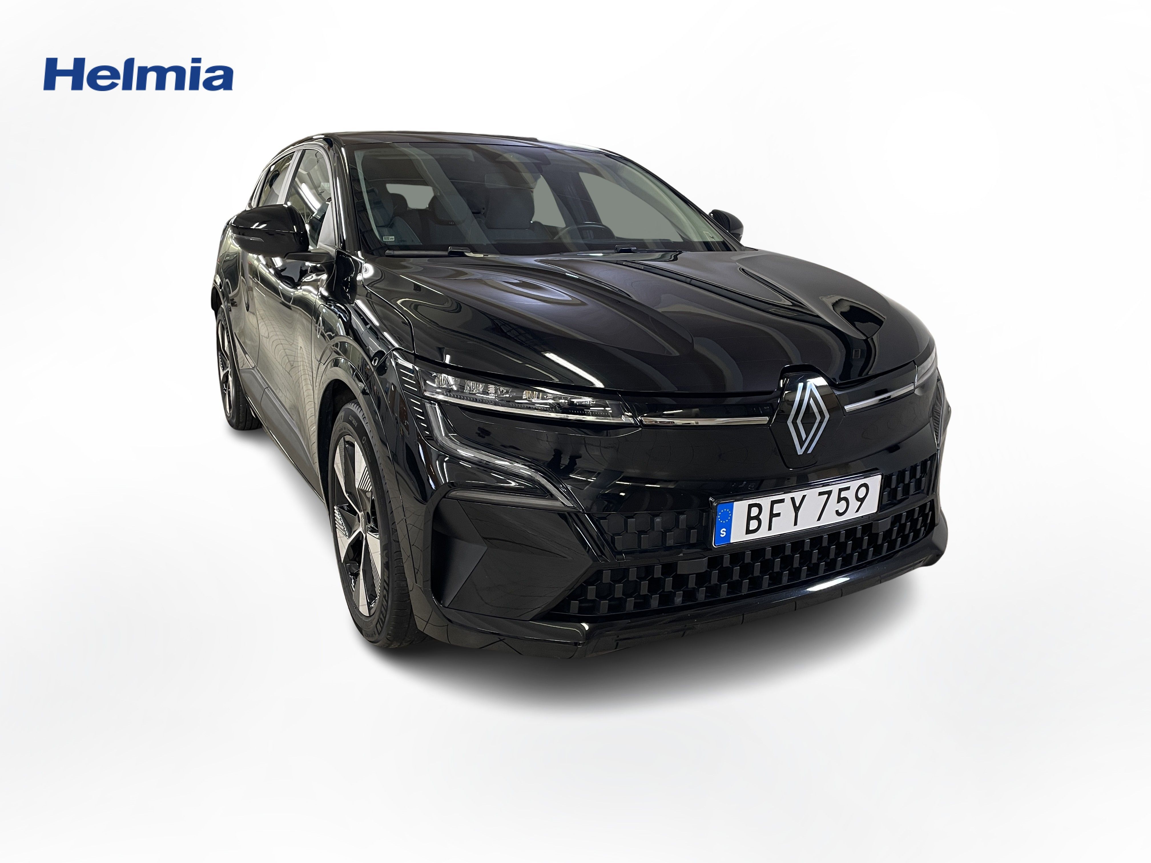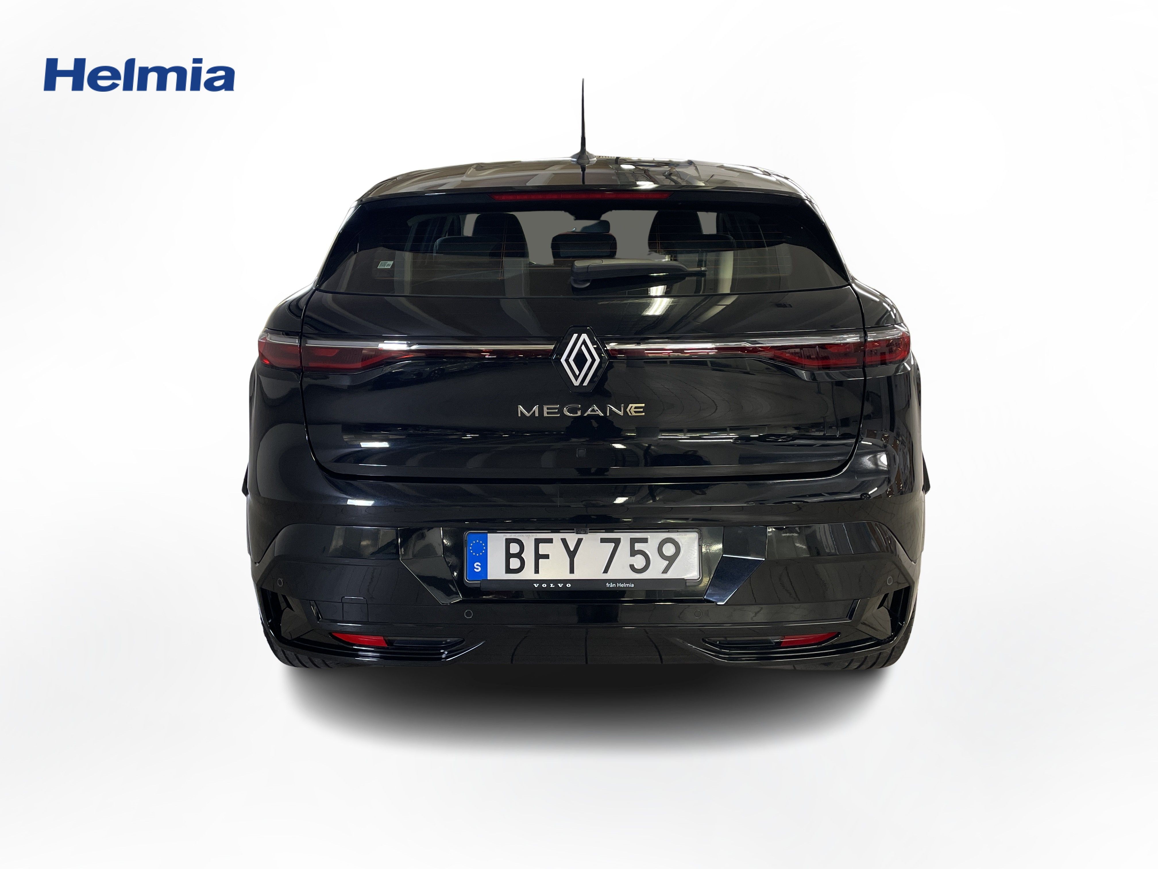 En svart begagnad Renault Mégane E-TECH som är tillverkad 2023 med årsmodell 2023 och har utrustningspaketet med 130 hk. Fordonet finns i Karlstad med reg. nummer BFY759, har automat-växellåda och mätarställning är 3.300 mil. Fordonet har totalt 5 st sittplatser och är kategoriserad som mellanstor familjebil.