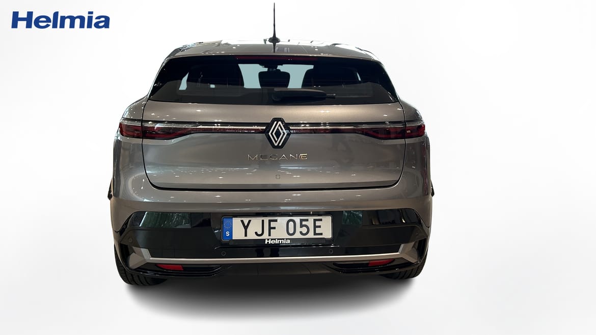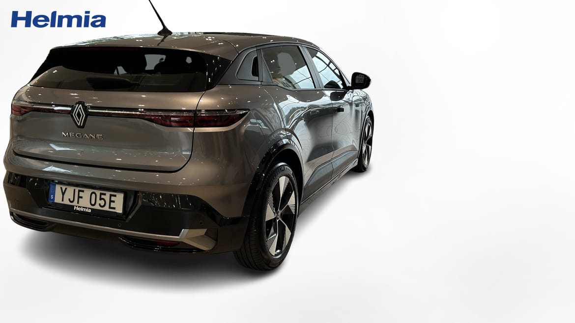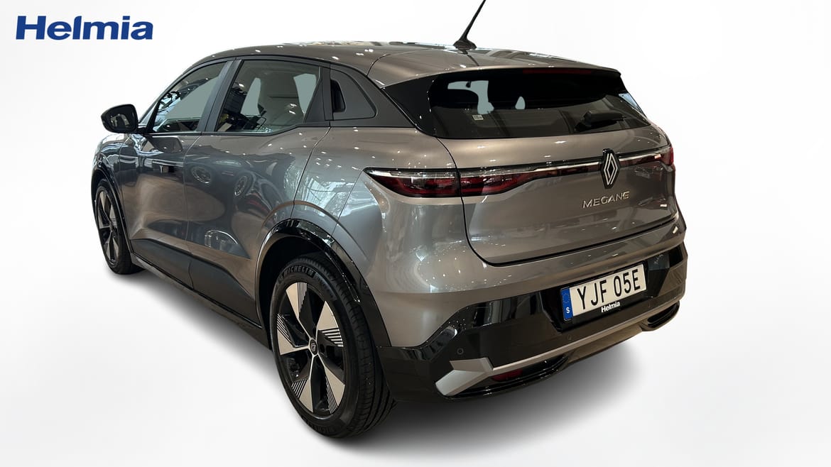 En grå begagnad Renault Mégane E-TECH som är tillverkad 2023 med årsmodell 2023 och har utrustningspaketet med 130 hk. Fordonet finns i Torsby med reg. nummer YJF05E, har automat-växellåda och mätarställning är 2.840 mil. Fordonet har totalt 5 st sittplatser och är kategoriserad som mellanstor familjebil.