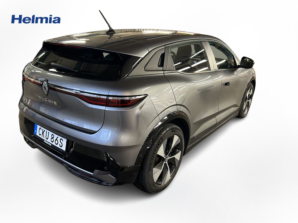 En grå begagnad Renault Mégane E-TECH som är tillverkad 2022 med årsmodell 2023 och har utrustningspaketet med 218 hk. Fordonet finns i Karlskoga med reg. nummer CKU86S, har automat-växellåda och mätarställning är 4.379 mil. Fordonet har totalt 5 st sittplatser och är kategoriserad som mellanstor familjebil.