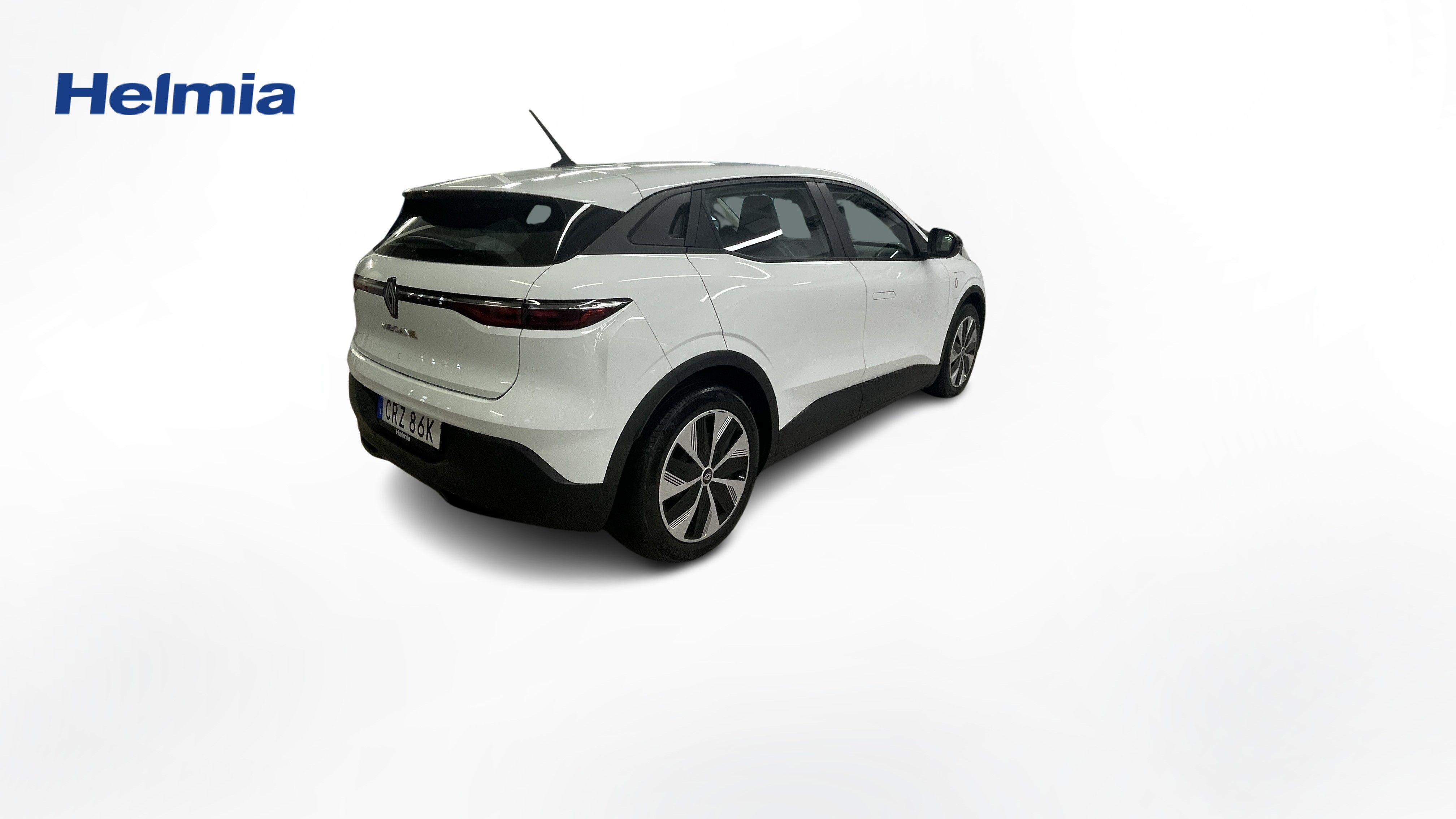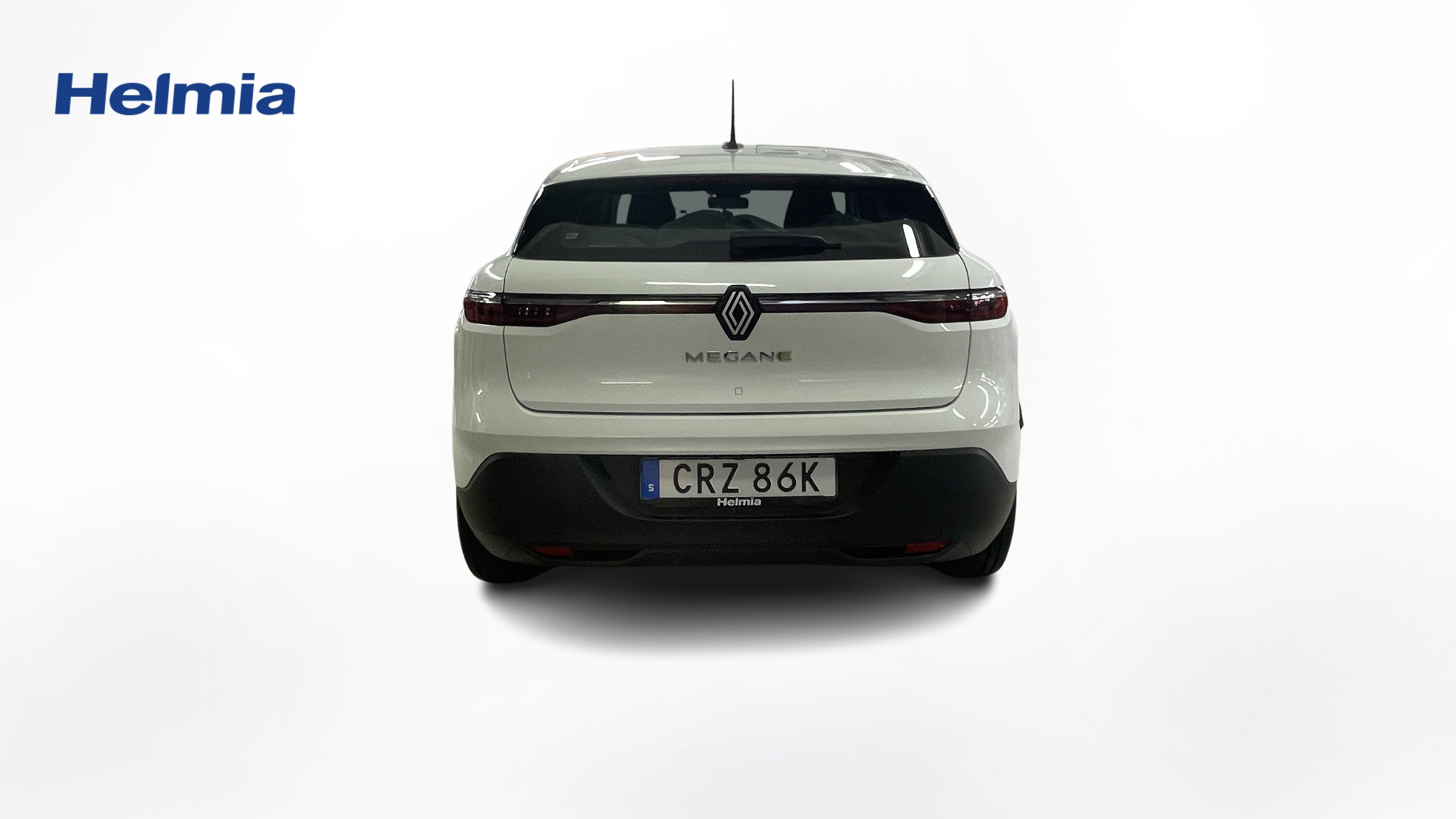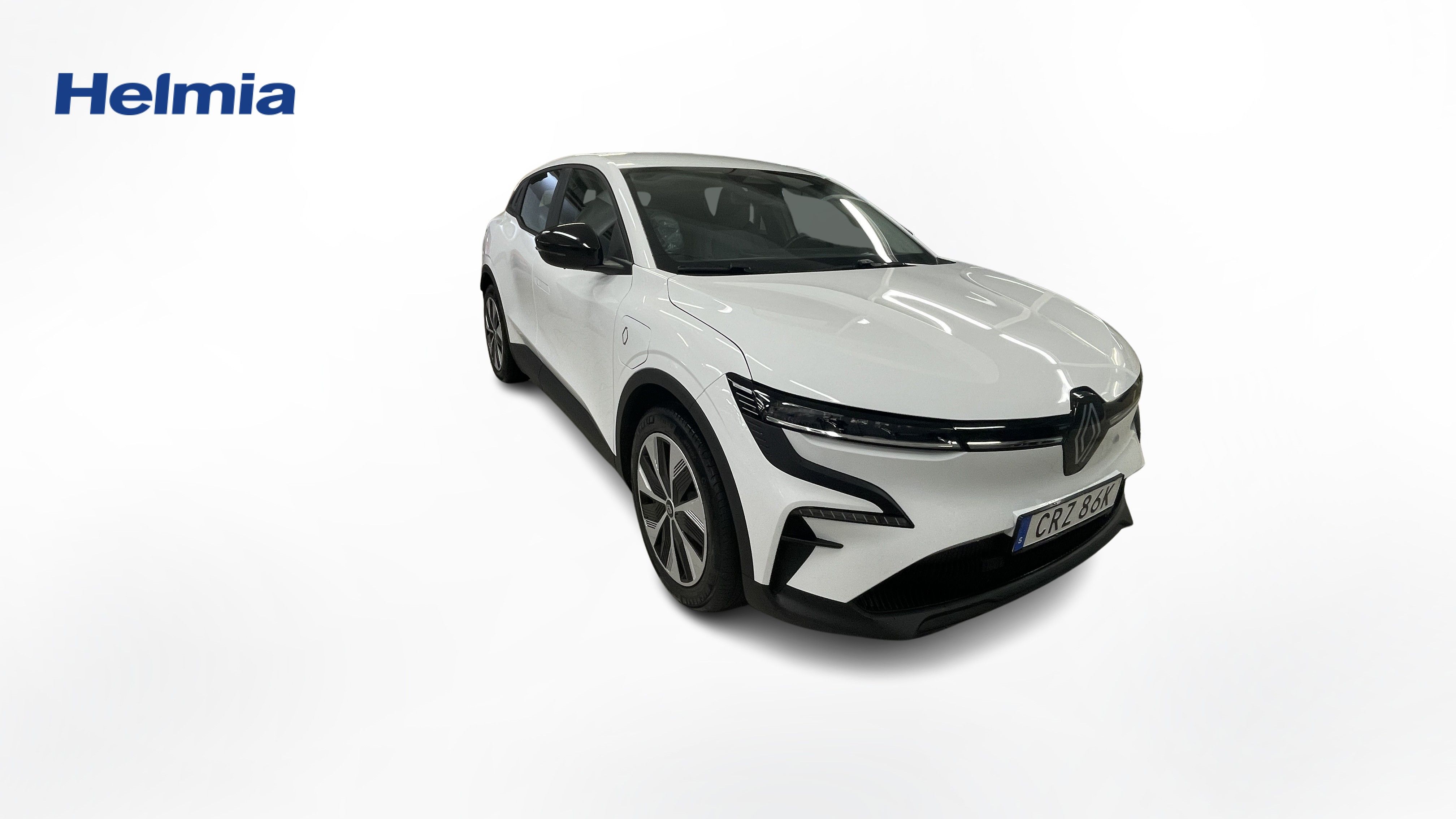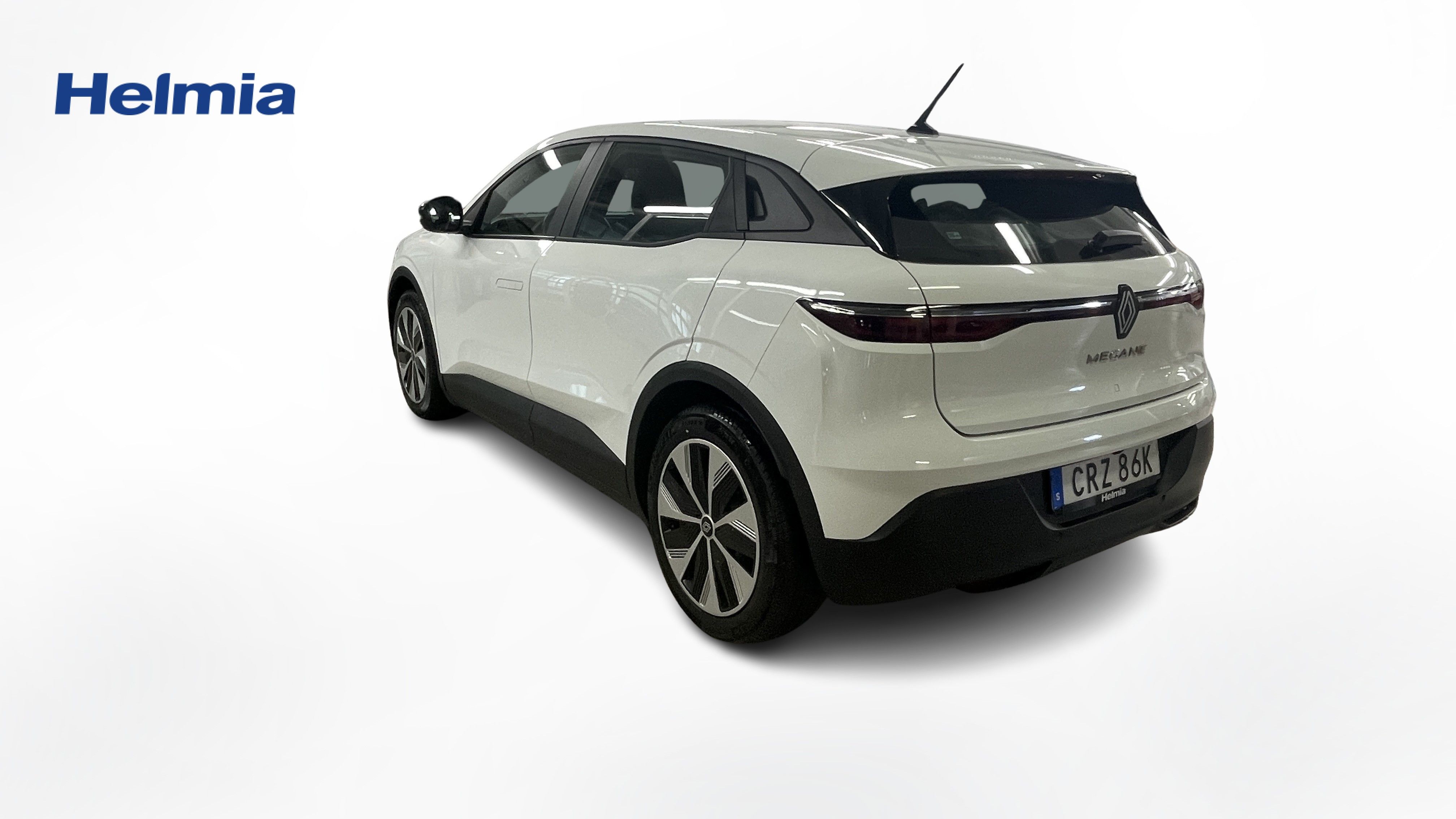 En vit begagnad Renault Mégane E-TECH som är tillverkad 2023 med årsmodell 2023 och har utrustningspaketet med 130 hk. Fordonet finns i Karlstad med reg. nummer CRZ86K, har automat-växellåda och mätarställning är 2.802 mil. Fordonet har totalt 5 st sittplatser och är kategoriserad som mellanstor familjebil.