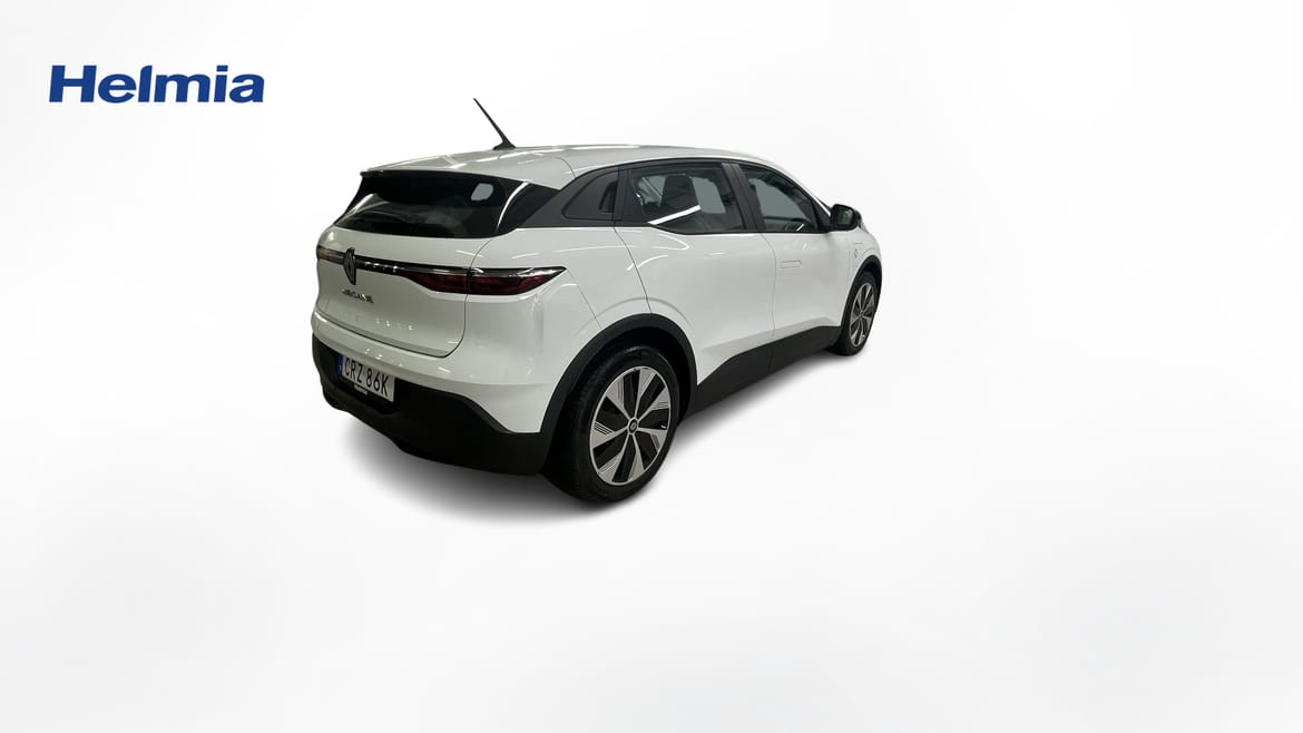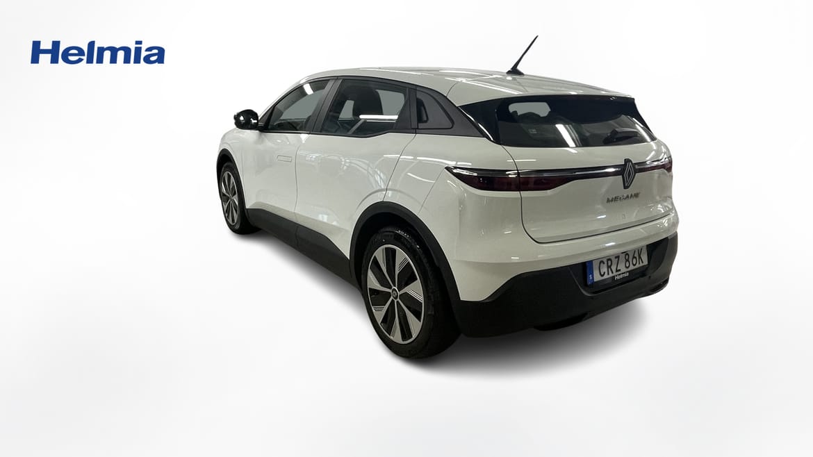En vit begagnad Renault Mégane E-TECH som är tillverkad 2023 med årsmodell 2023 och har utrustningspaketet med 130 hk. Fordonet finns i Karlstad med reg. nummer CRZ86K, har automat-växellåda och mätarställning är 2.770 mil. Fordonet har totalt 5 st sittplatser och är kategoriserad som mellanstor familjebil.