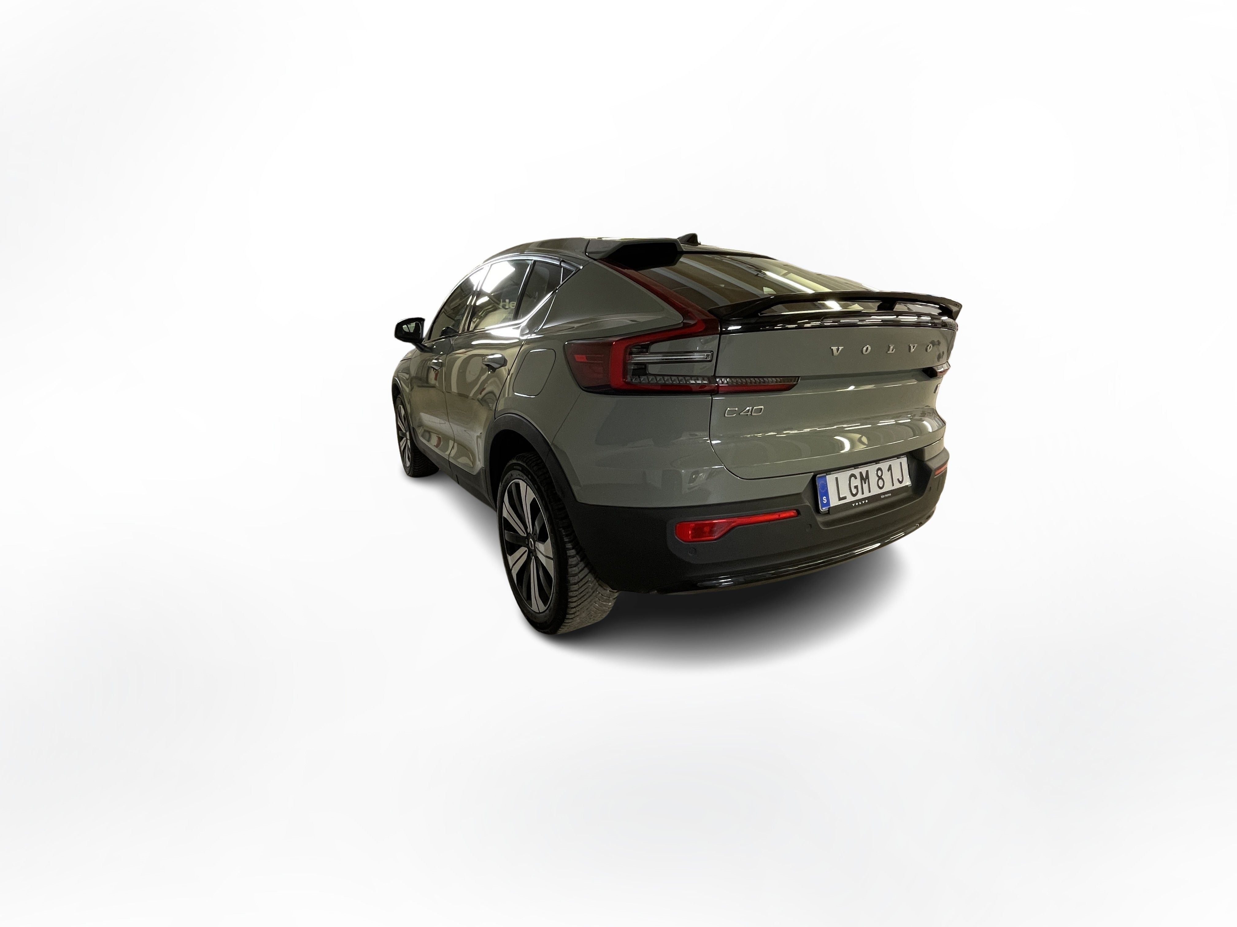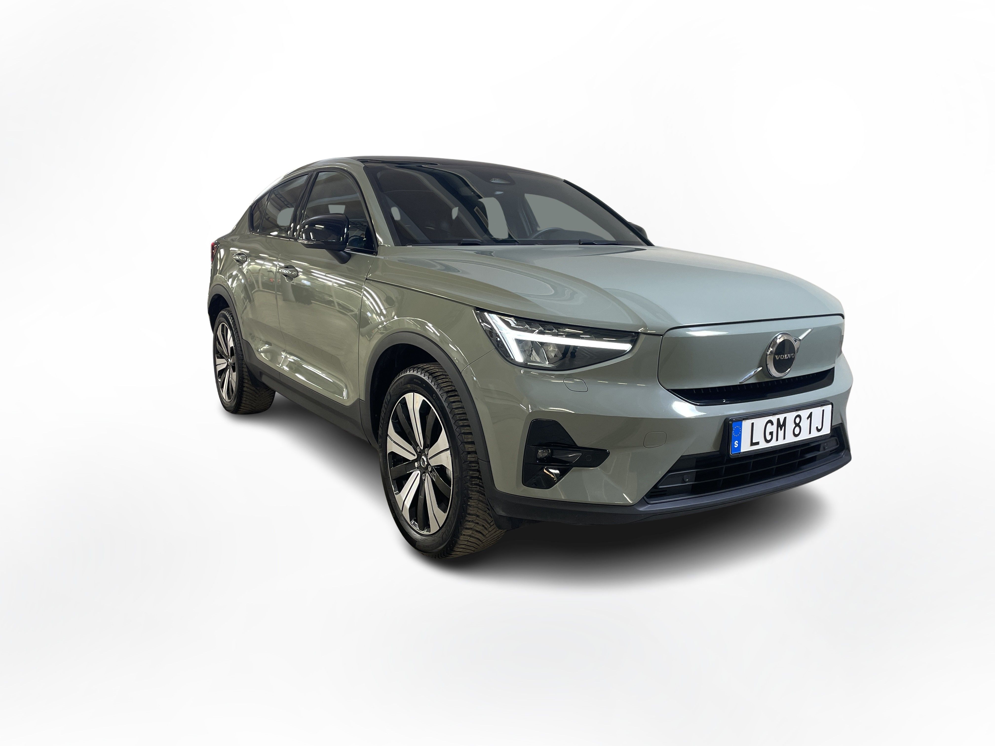 En grön begagnad Volvo C40 Recharge Single Motor som är tillverkad 2022 med årsmodell 2023 och har utrustningspaketet Plus med 231 hk. Fordonet finns i Karlstad med reg. nummer LGM81J, har automat-växellåda och mätarställning är 2.700 mil. Fordonet har totalt 5 st sittplatser och är kategoriserad som liten suv.