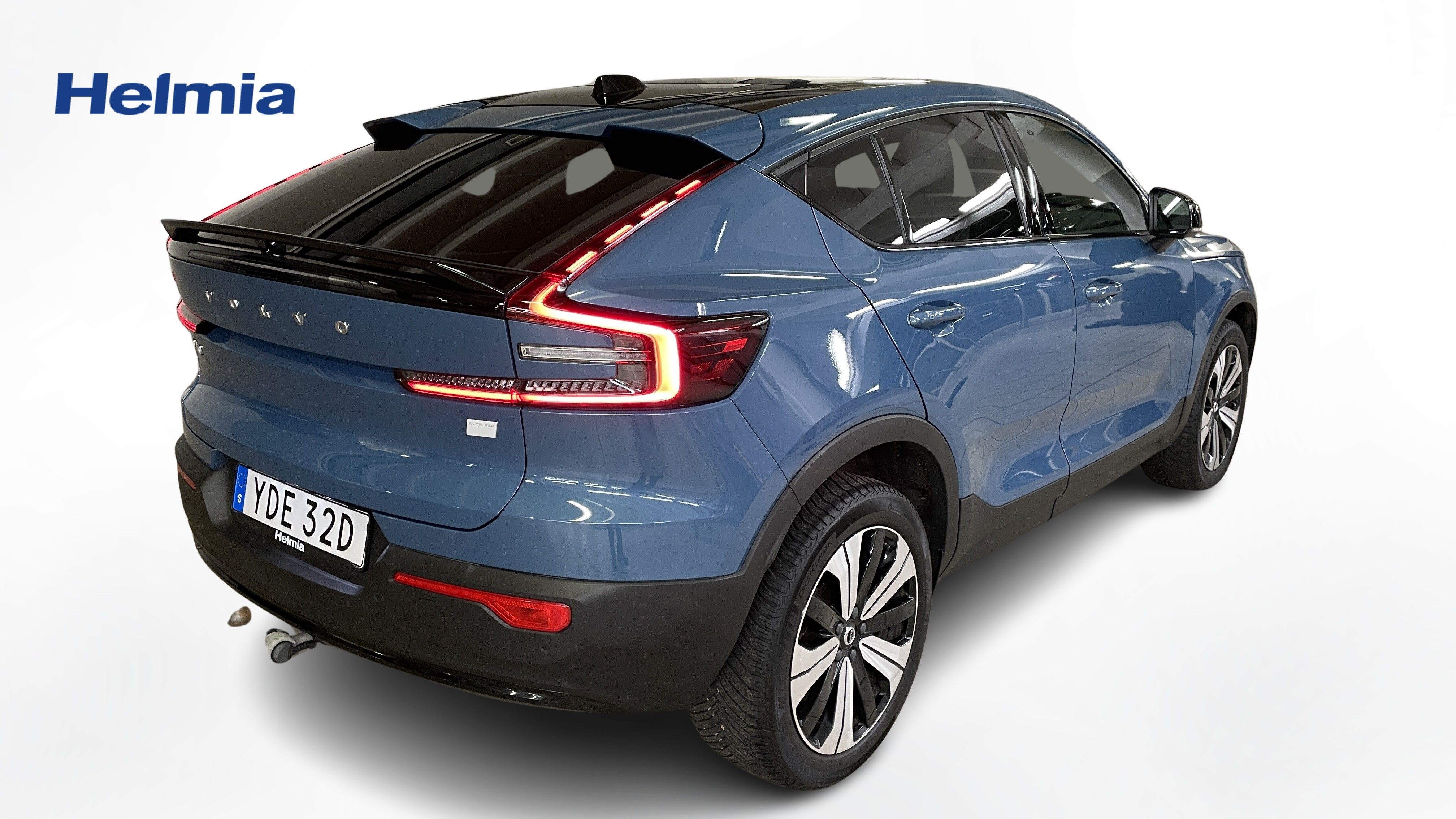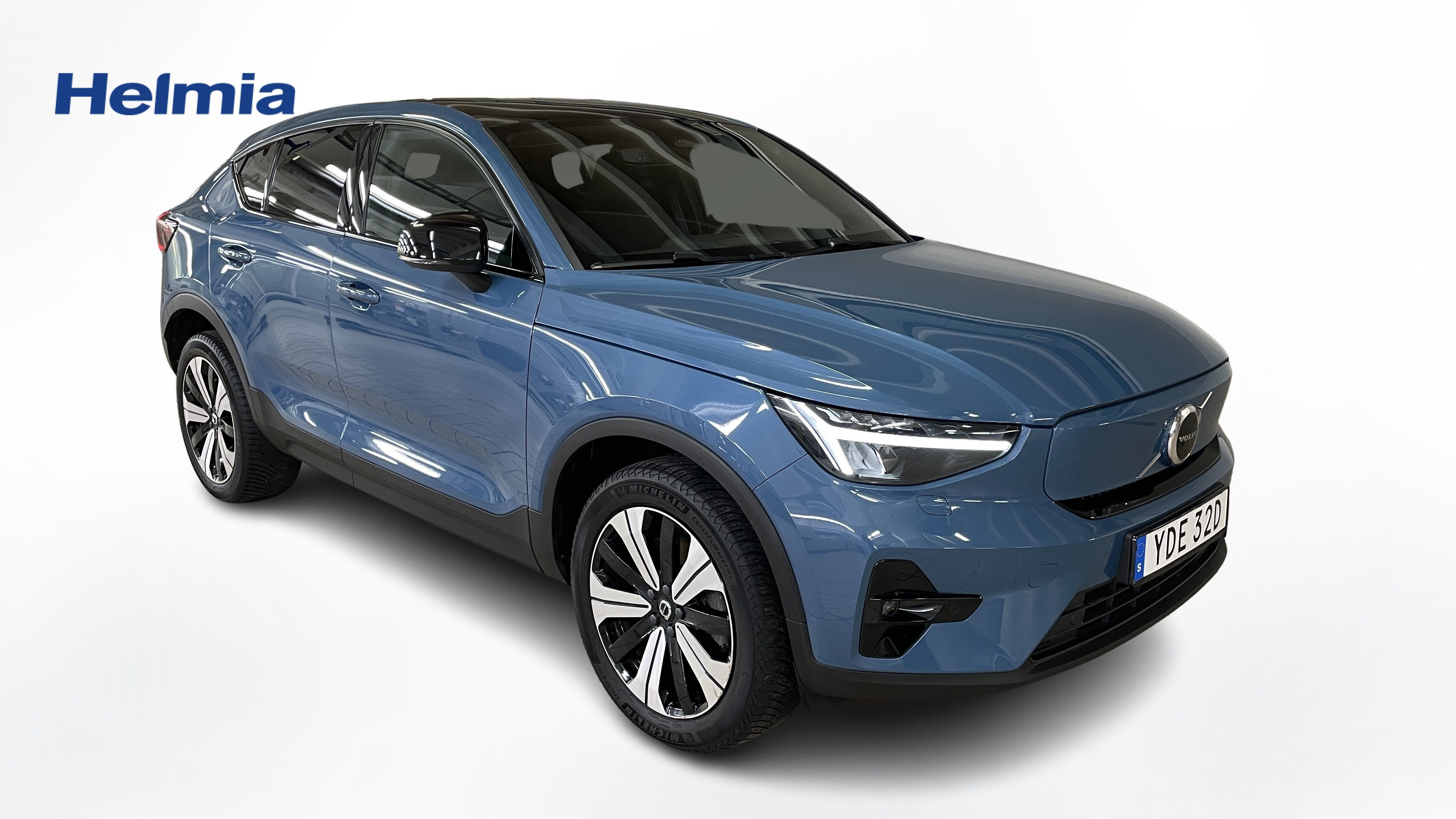 En blå begagnad Volvo C40 Recharge Single Motor som är tillverkad 2022 med årsmodell 2023 och har utrustningspaketet Plus med 231 hk. Fordonet finns i Karlstad med reg. nummer YDE32D, har automat-växellåda och mätarställning är 6.843 mil. Fordonet har totalt 5 st sittplatser och är kategoriserad som liten suv.