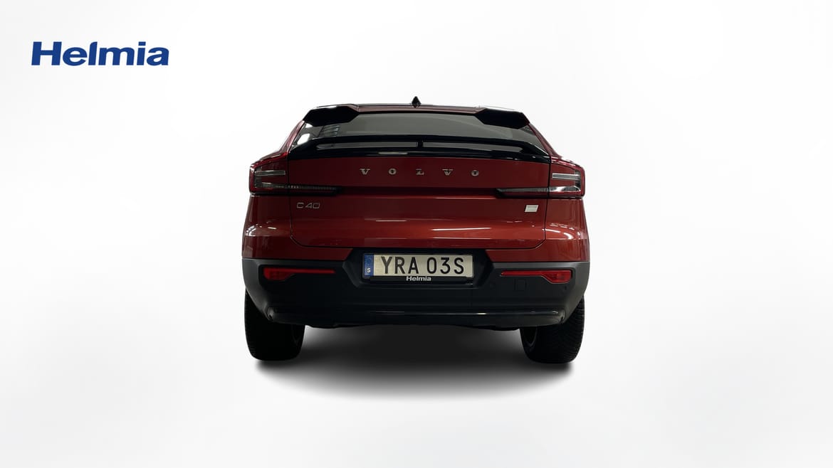 En röd begagnad Volvo C40 Recharge Single Motor som är tillverkad 2022 med årsmodell 2023 och har utrustningspaketet Plus med 231 hk. Fordonet finns i Filipstad med reg. nummer YRA03S, har automat-växellåda och mätarställning är 3.000 mil. Fordonet har totalt 5 st sittplatser och är kategoriserad som liten suv.