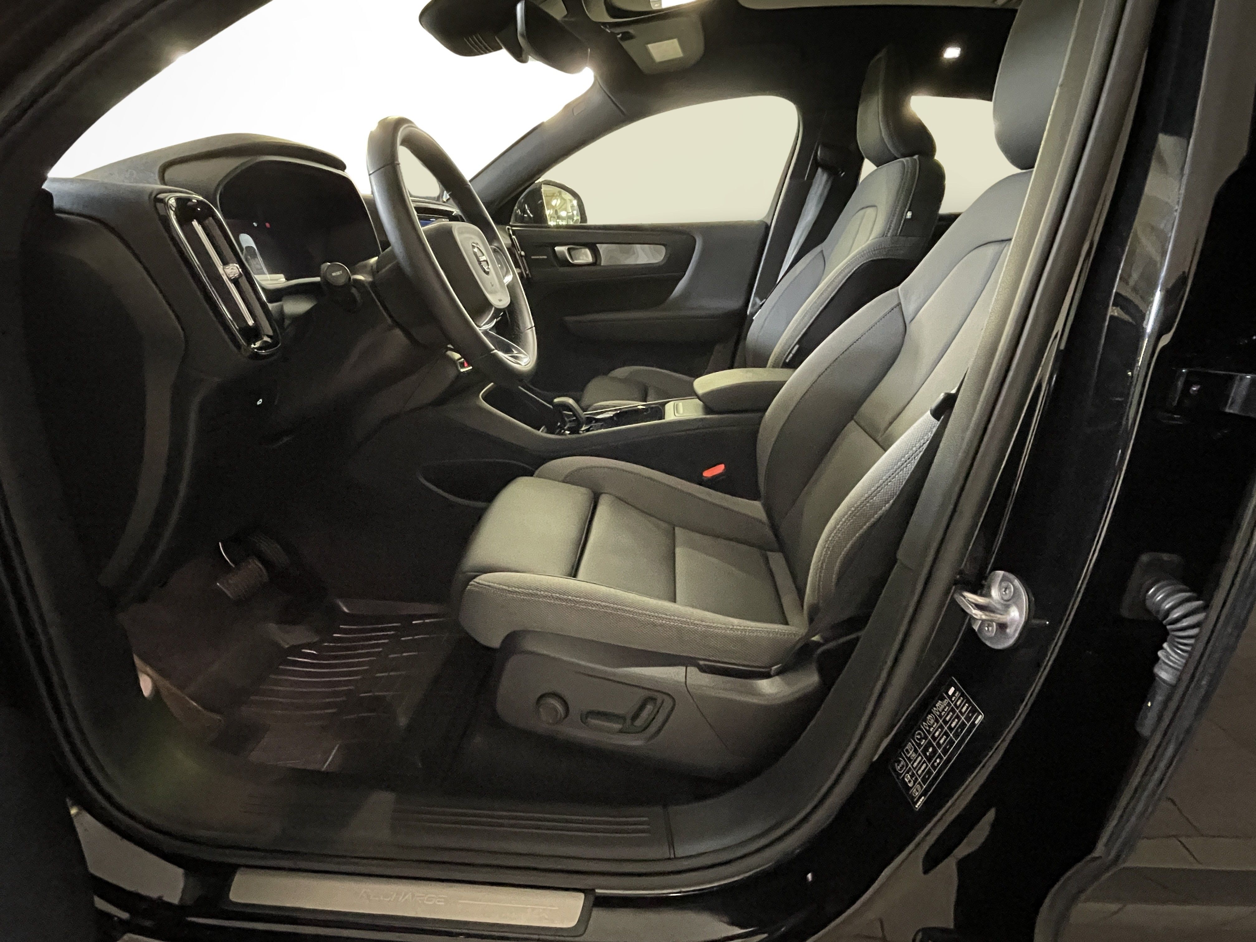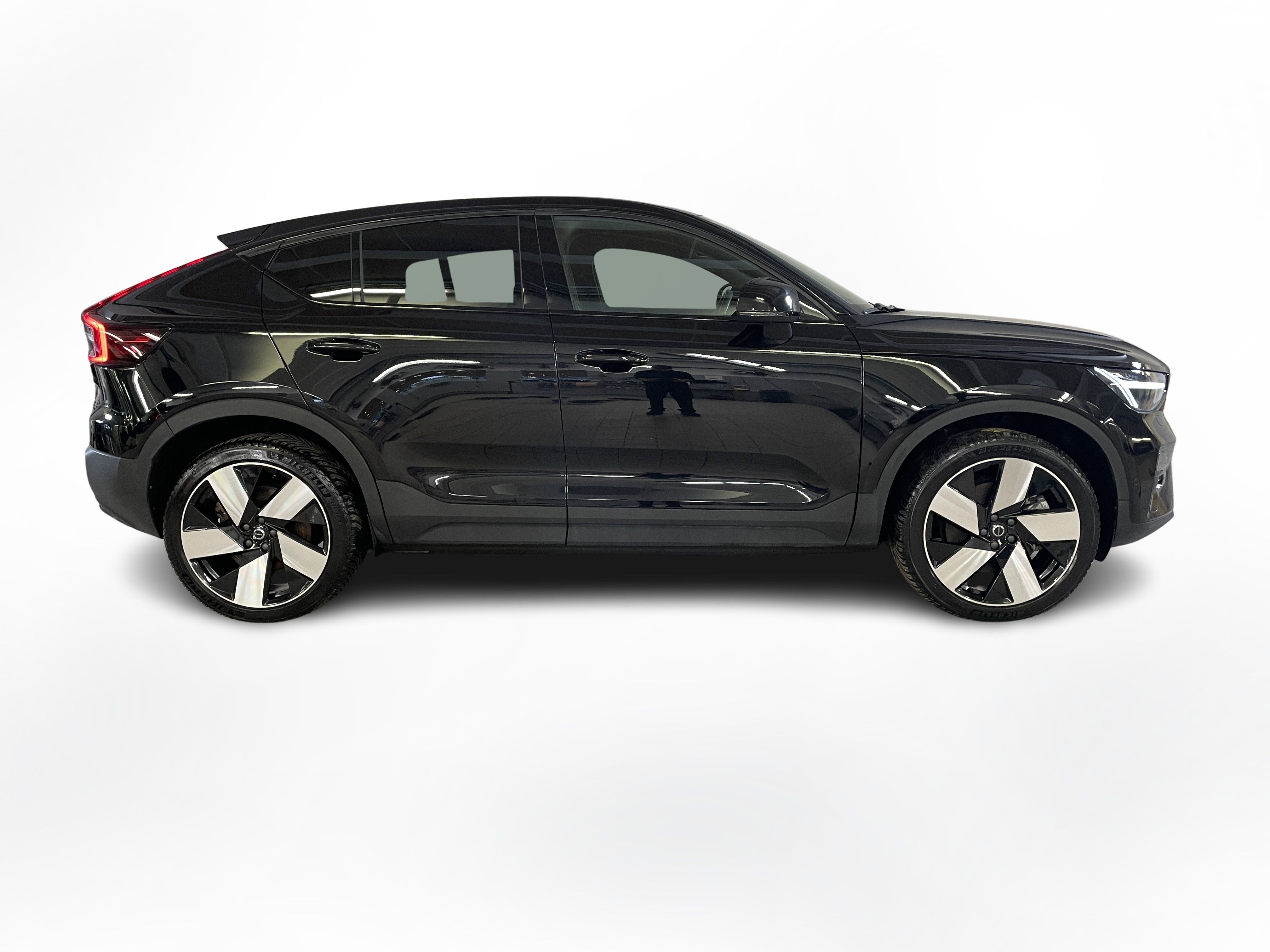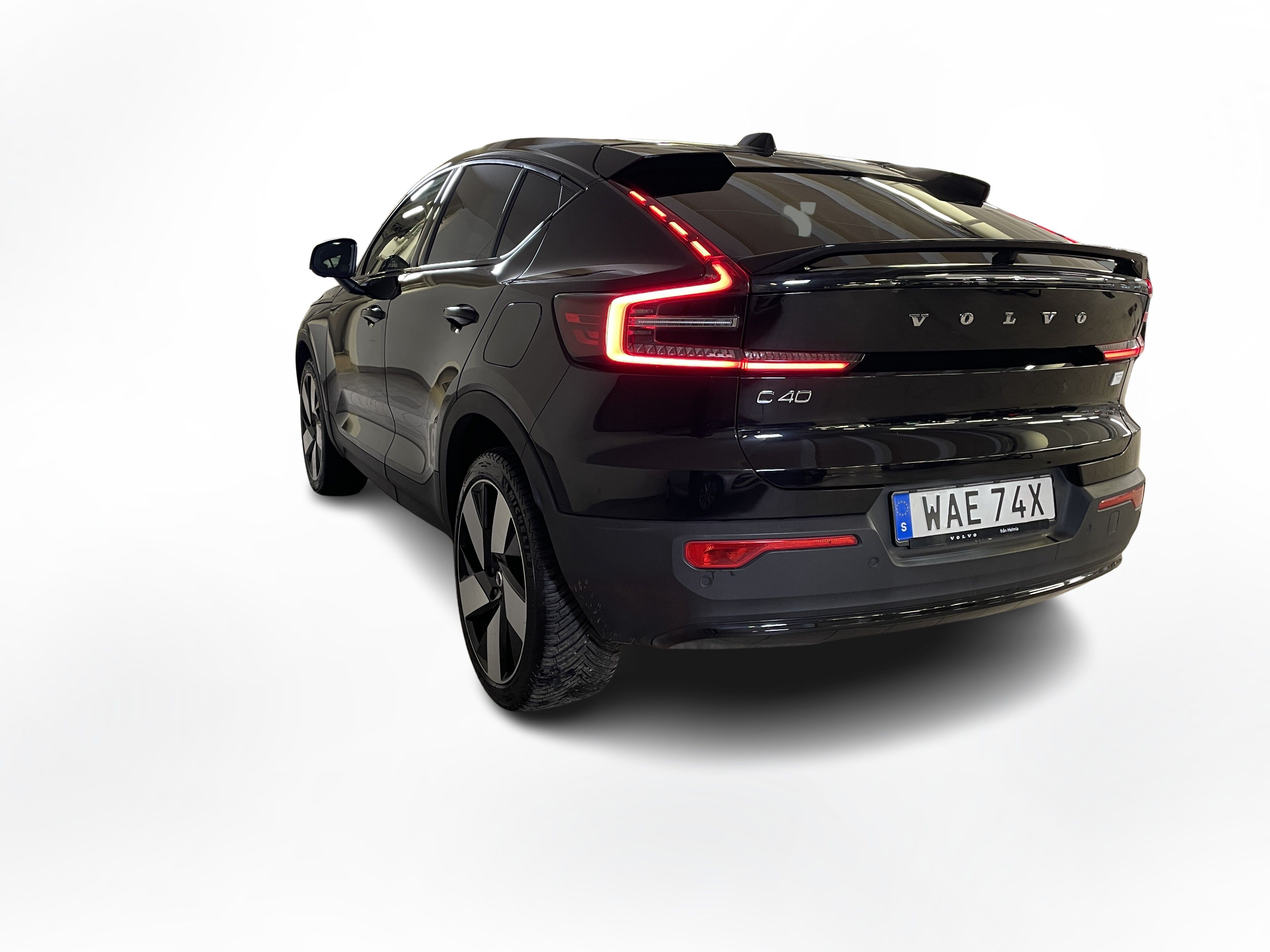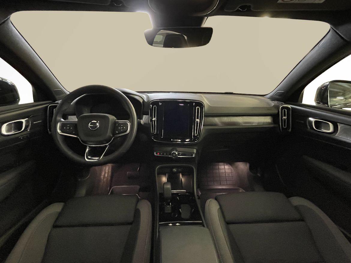 En svart begagnad Volvo C40 Recharge Twin motor som är tillverkad 2022 med årsmodell 2023 och har utrustningspaketet Ultimate med 408 hk. Fordonet finns i Karlstad med reg. nummer WAE74X, har automat-växellåda och mätarställning är 5.000 mil. Fordonet har totalt 5 st sittplatser och är kategoriserad som liten suv.