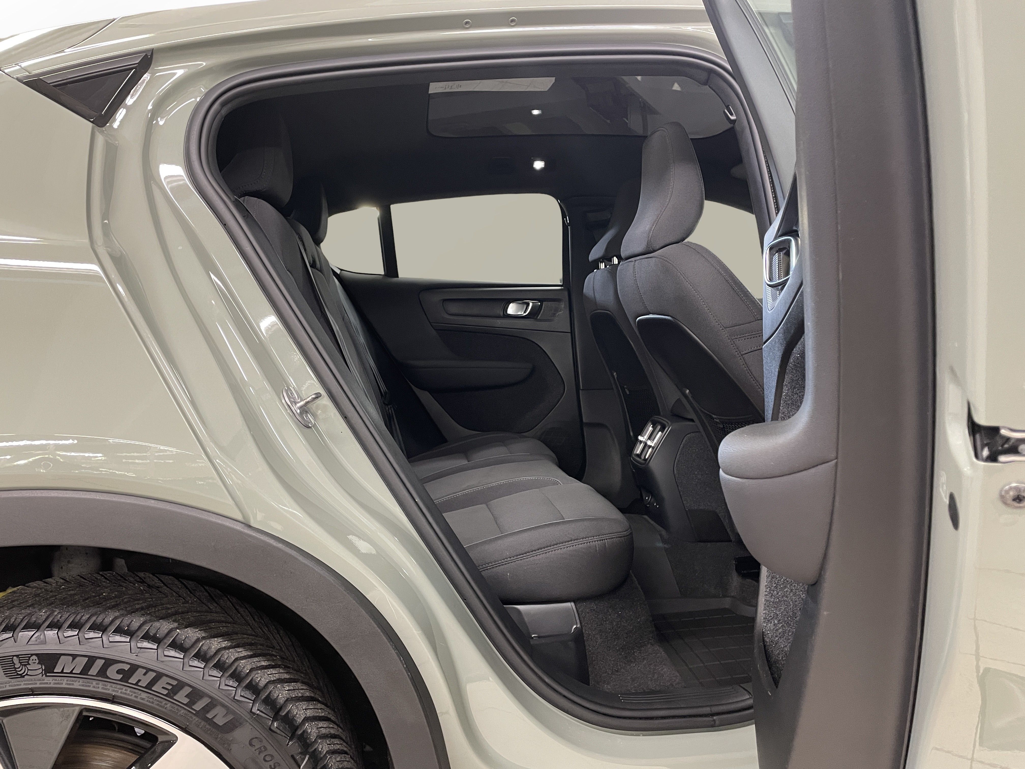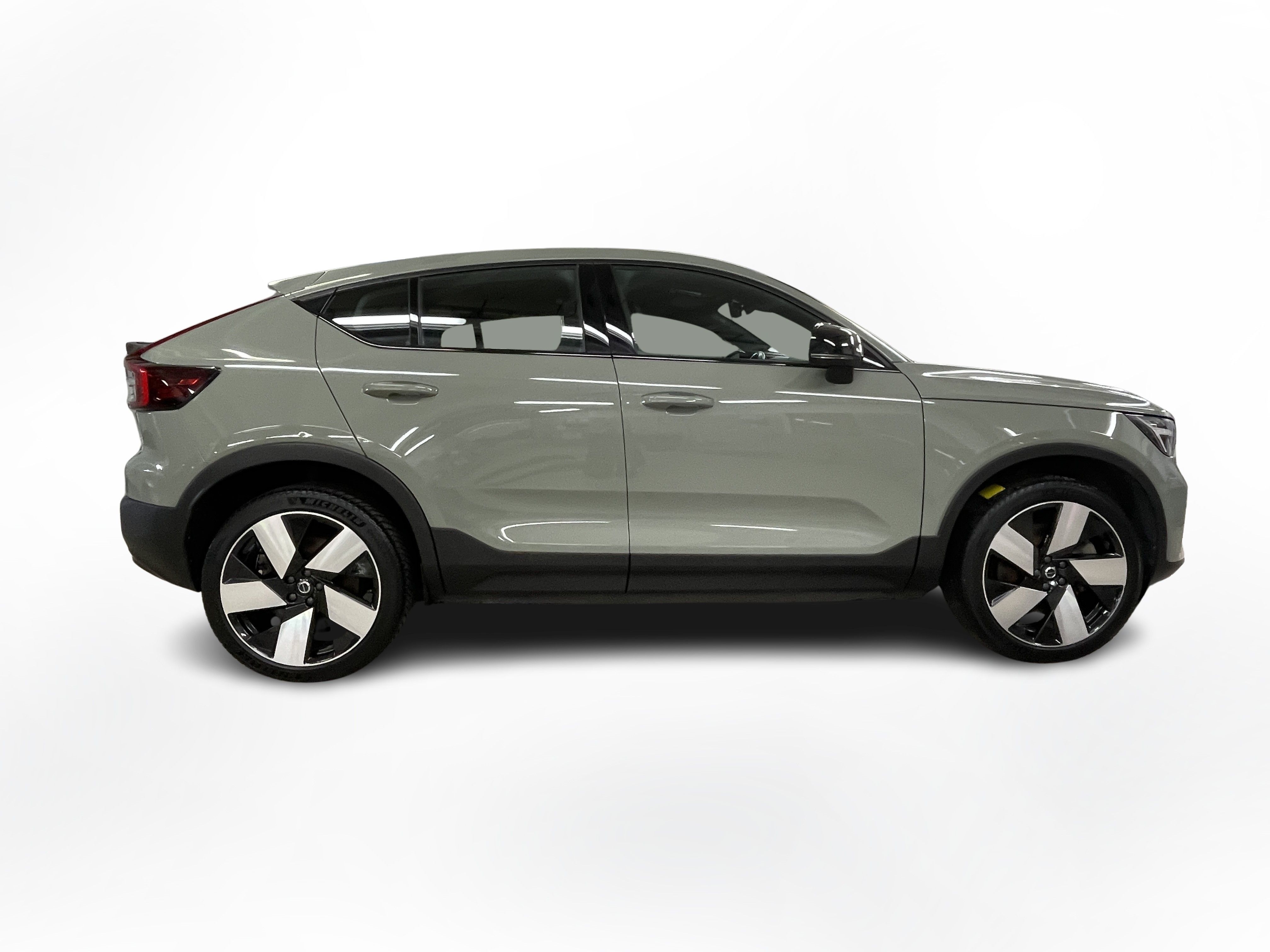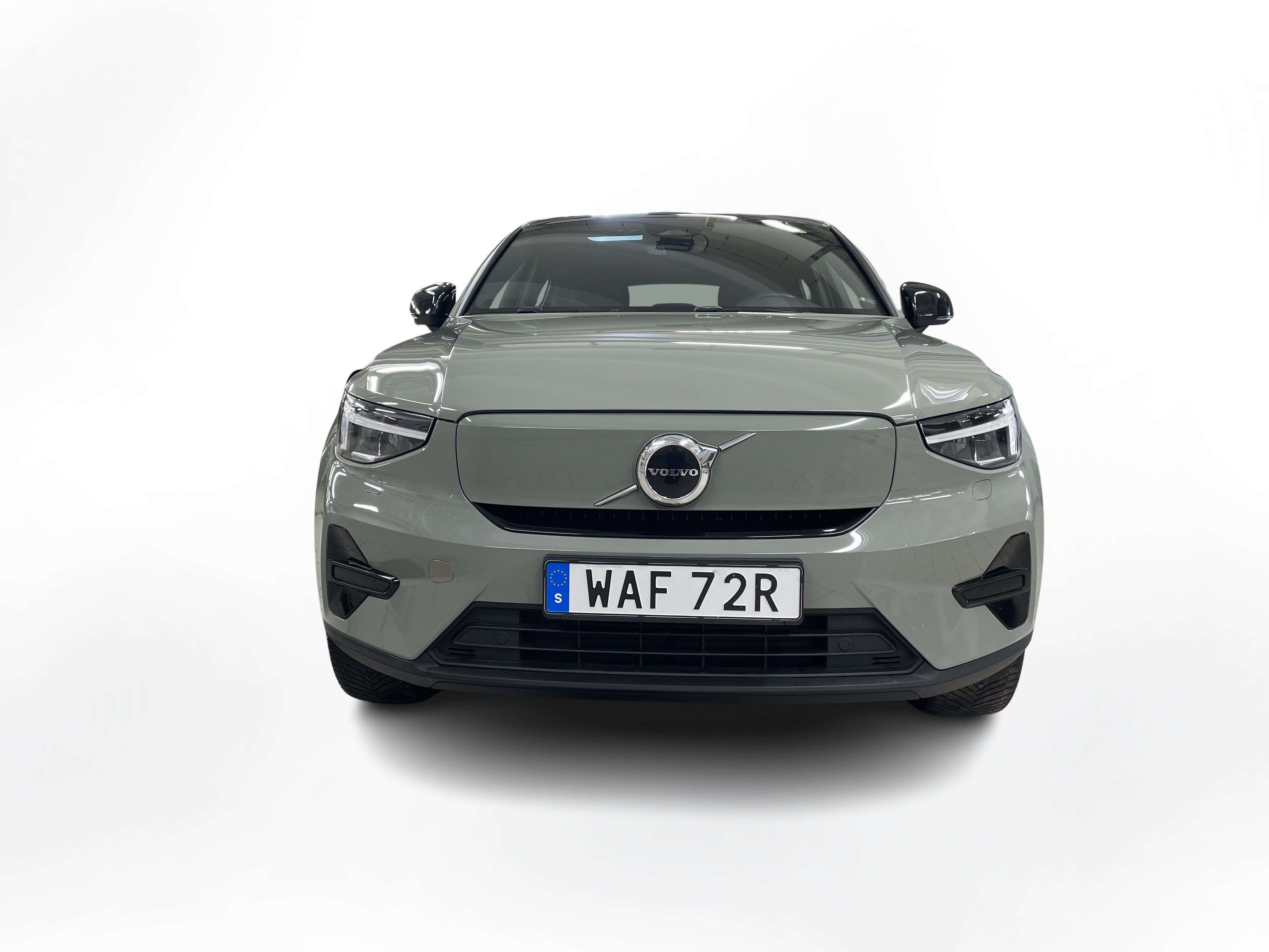 En grön begagnad Volvo C40 Recharge Twin motor som är tillverkad 2022 med årsmodell 2023 och har utrustningspaketet Core med 408 hk. Fordonet finns i Karlstad med reg. nummer WAF72R, har automat-växellåda och mätarställning är 9.441 mil. Fordonet har totalt 5 st sittplatser och är kategoriserad som liten suv.