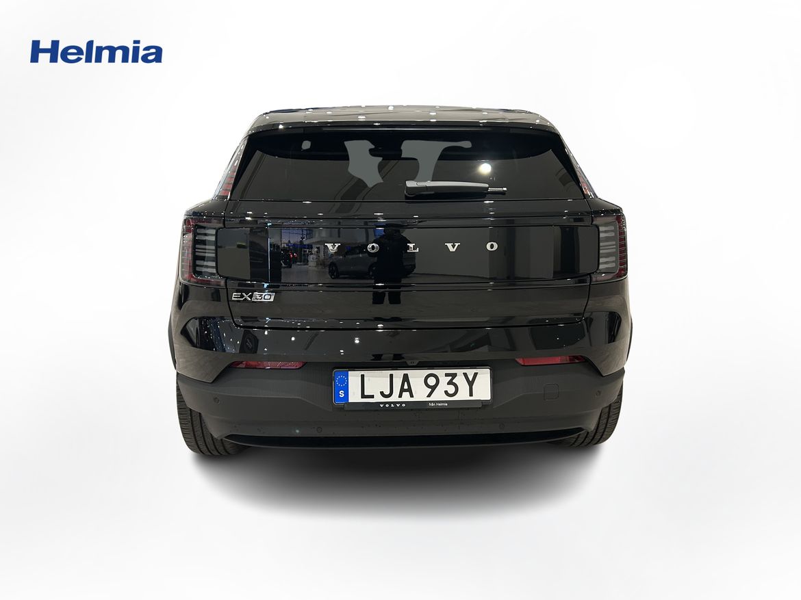 En svart begagnad Volvo EX30 Twin Motor Performance som är tillverkad 2024 med årsmodell 2025 och har utrustningspaketet Ultra med 428 hk. Fordonet finns i Arvika med reg. nummer LJA93Y, har automat-växellåda och mätarställning är 295 mil. Fordonet har totalt 5 st sittplatser och är kategoriserad som liten suv.