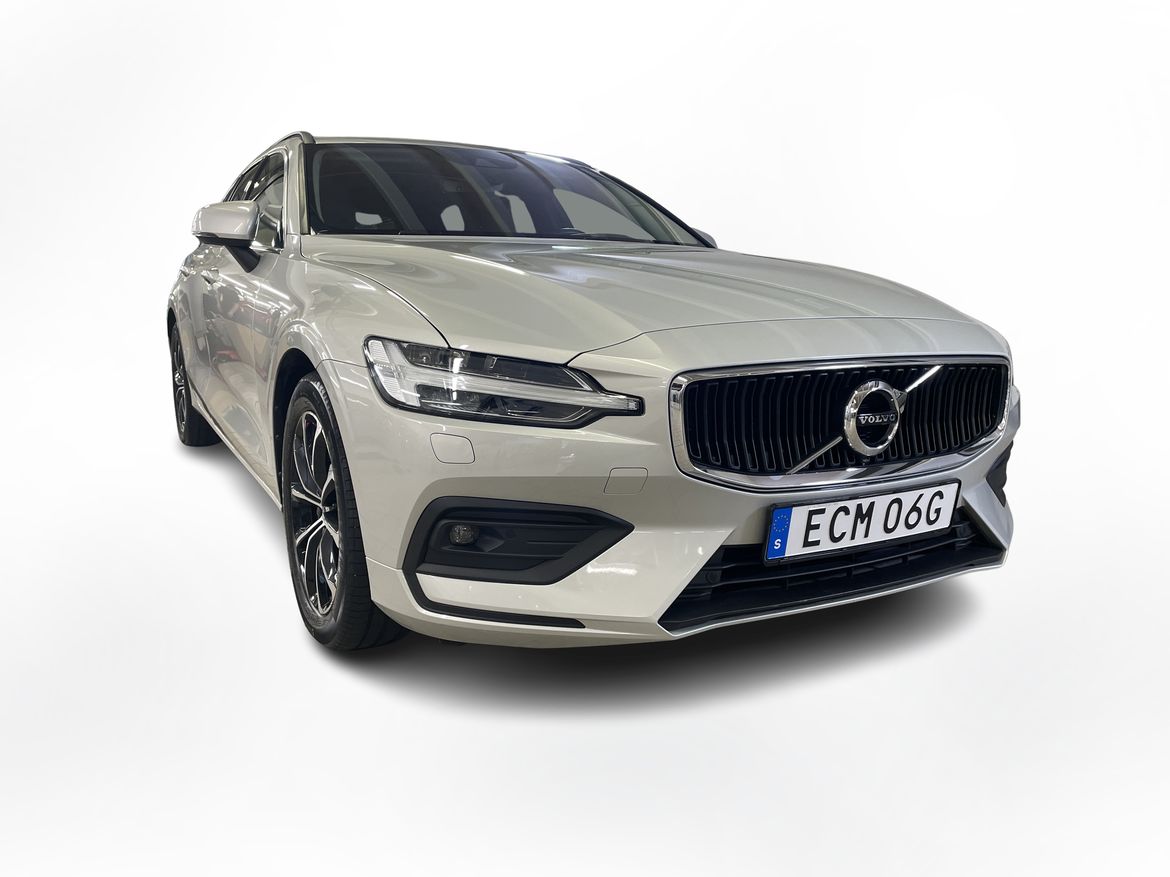 En vit begagnad Volvo V60 som är tillverkad 2021 med årsmodell 2022 och har utrustningspaketet Momentum Advanced med 197 hk. Fordonet finns i Karlstad med reg. nummer ECM06G, har automat-växellåda och mätarställning är 7.800 mil. Fordonet har totalt 5 st sittplatser och är kategoriserad som mellanstor premiumbil.