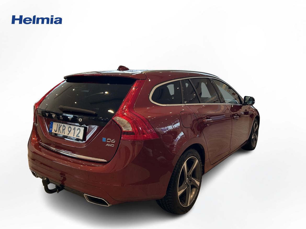 En röd begagnad Volvo V60 som är tillverkad 2014 med årsmodell 2014 och har utrustningspaketet Summum med 283 hk. Fordonet finns i Arvika med reg. nummer JKR912, har automat-växellåda och mätarställning är 13.510 mil. Fordonet har totalt 5 st sittplatser och är kategoriserad som mellanstor premiumbil.