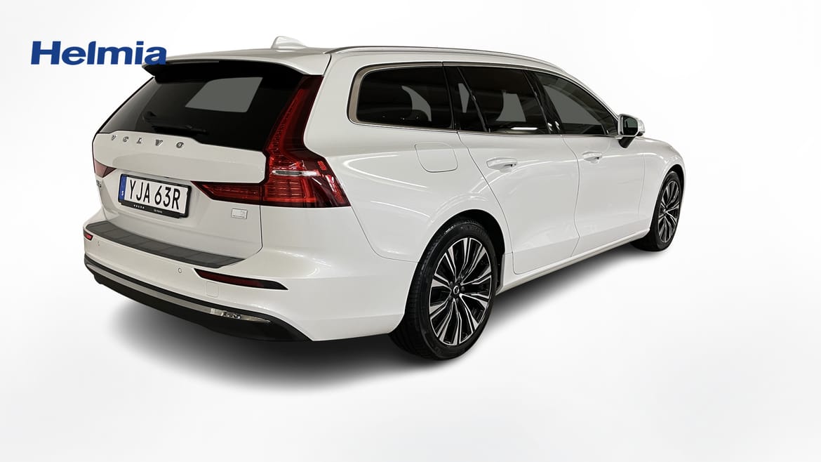 En vit begagnad Volvo V60 som är tillverkad 2024 med årsmodell 2024 och har utrustningspaketet Core med 350 hk. Fordonet finns i Karlstad med reg. nummer YJA63R, har automat-växellåda och mätarställning är 3.659 mil. Fordonet har totalt 5 st sittplatser och är kategoriserad som mellanstor premiumbil.
