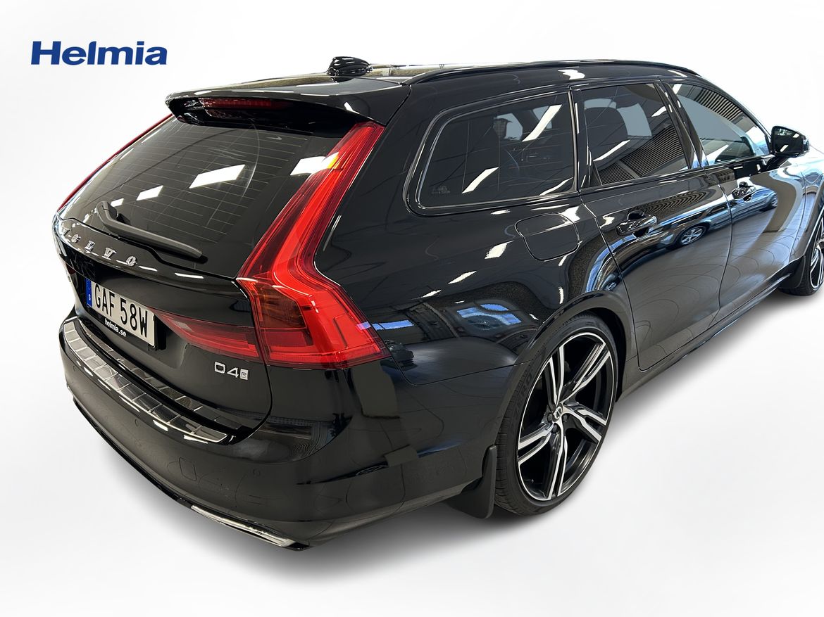 En svart begagnad Volvo V90 som är tillverkad 2020 med årsmodell 2020 och har utrustningspaketet R-Design med 190 hk. Fordonet finns i Filipstad med reg. nummer GAF58W, har automat-växellåda och mätarställning är 9.740 mil. Fordonet har totalt 5 st sittplatser och är kategoriserad som premiumbil.