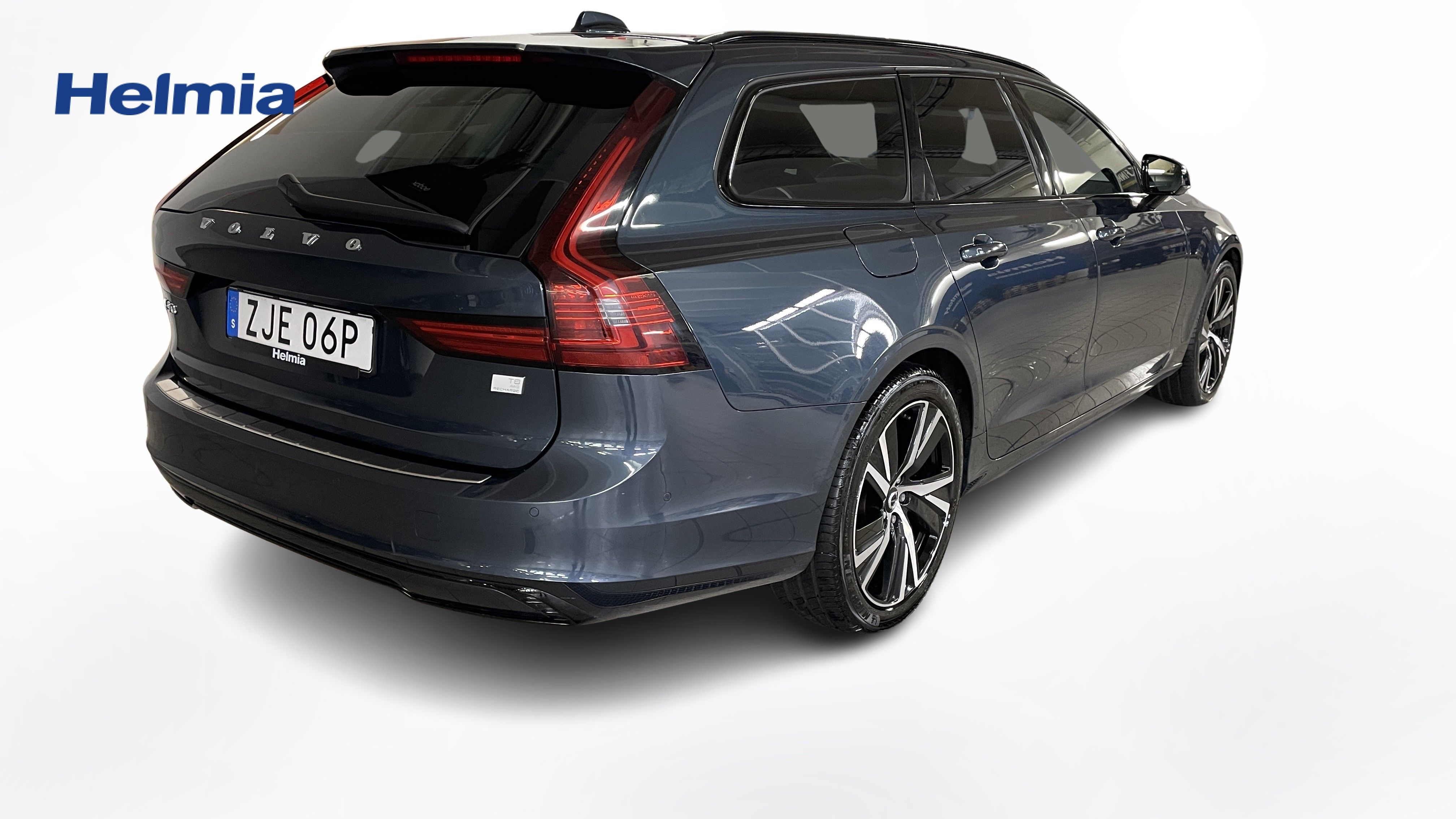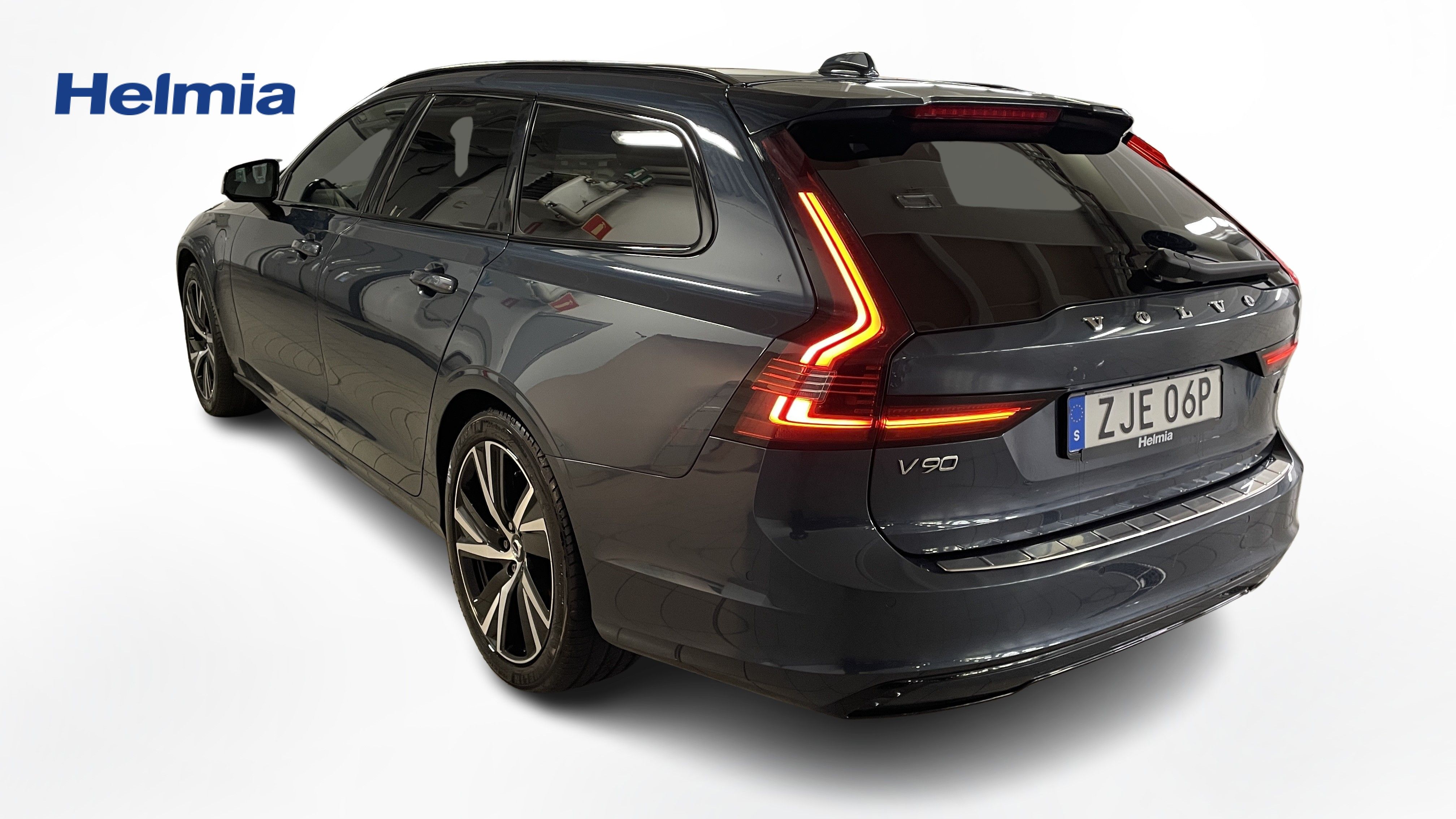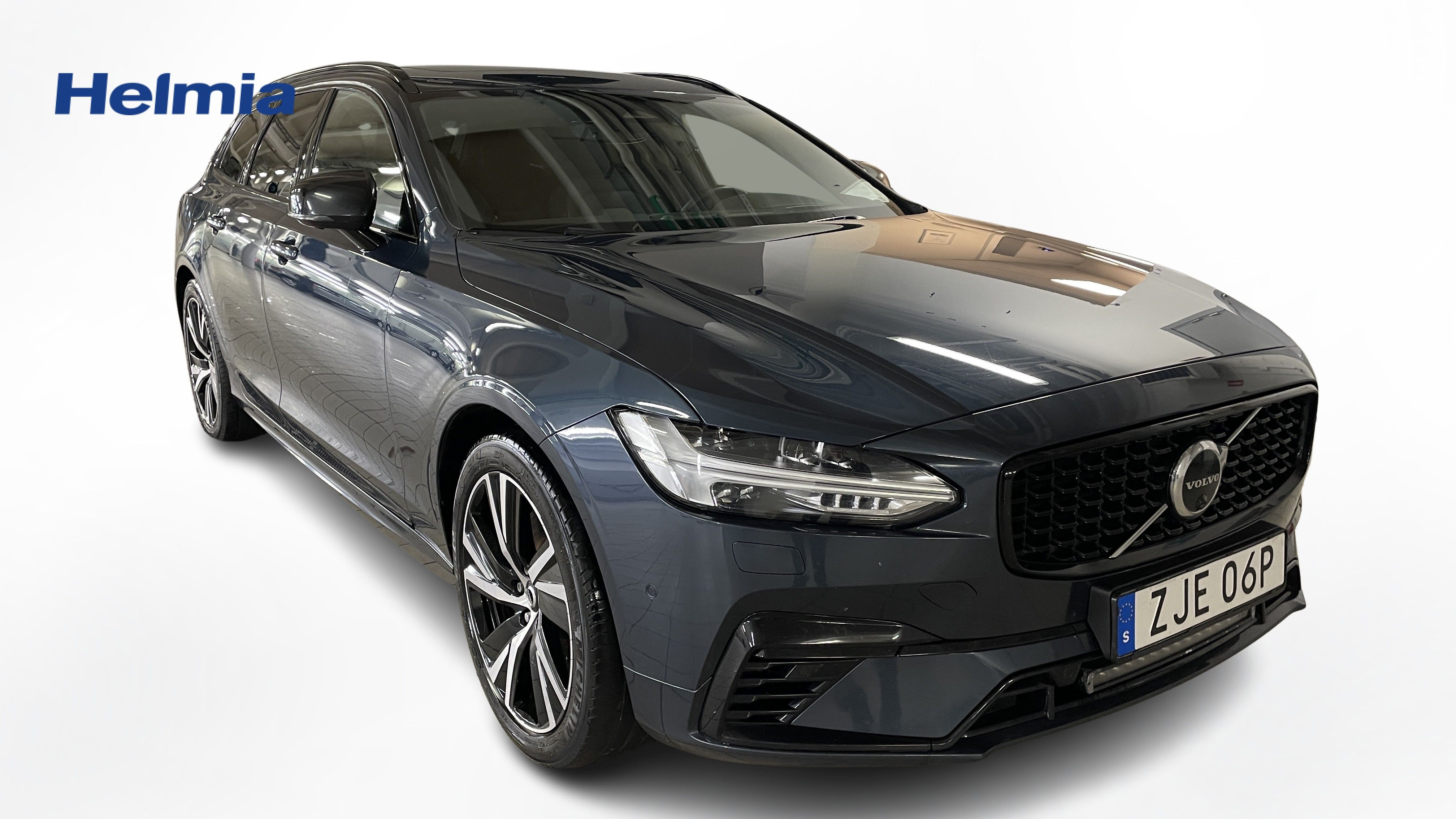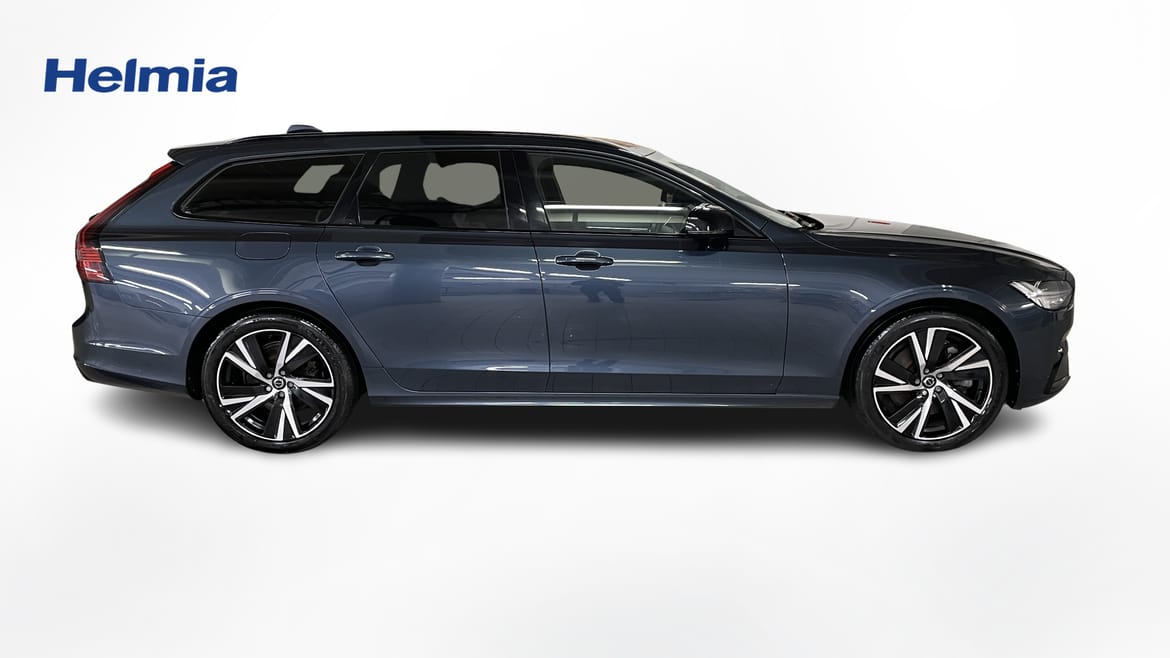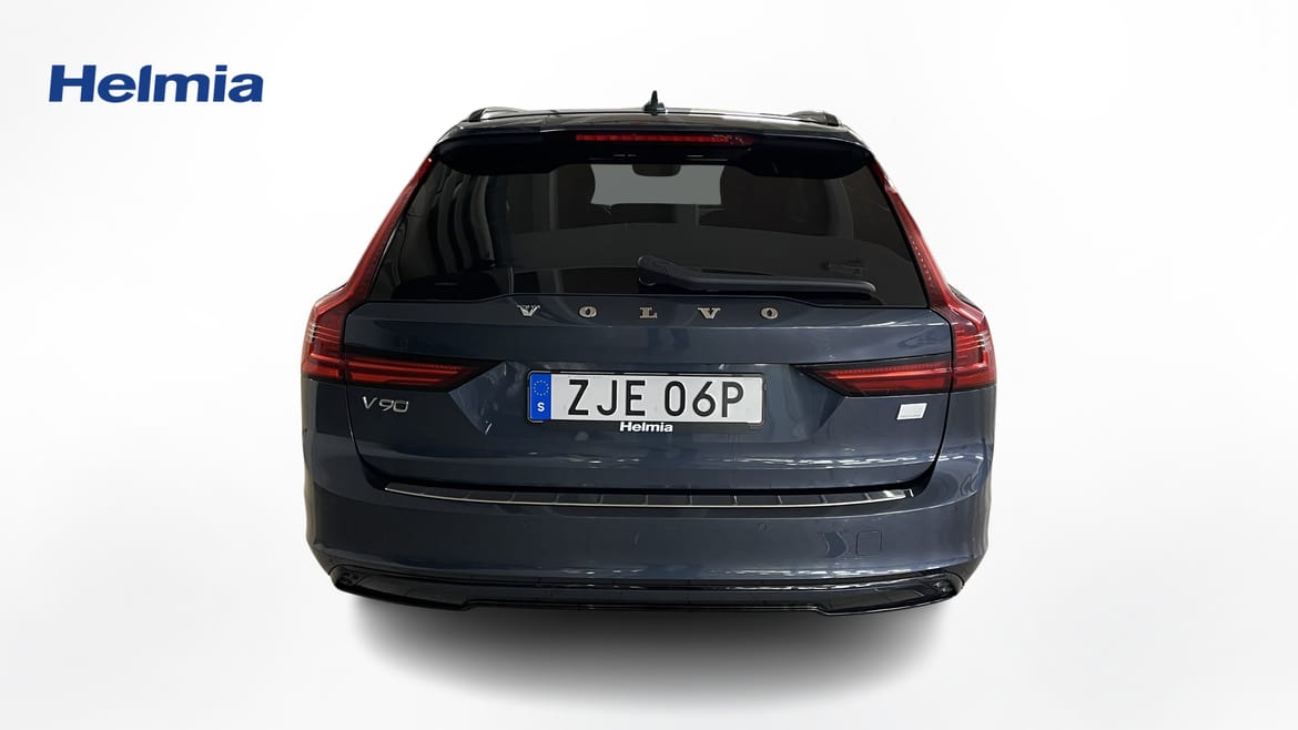 En blå begagnad Volvo V90 som är tillverkad 2022 med årsmodell 2023 och har utrustningspaketet R-Design med 456 hk. Fordonet finns i Arvika med reg. nummer ZJE06P, har automat-växellåda och mätarställning är 14.750 mil. Fordonet har totalt 5 st sittplatser och är kategoriserad som premiumbil.