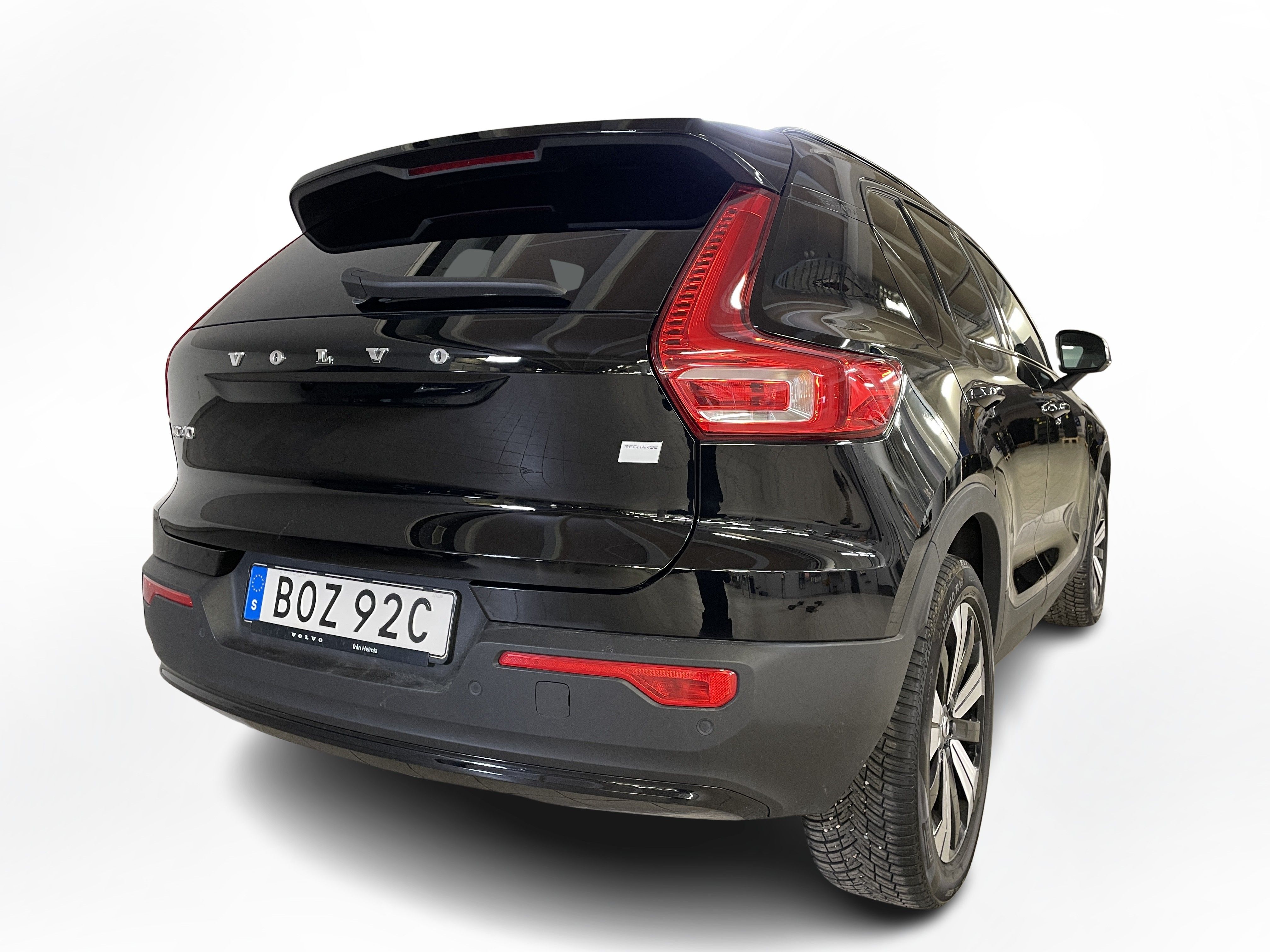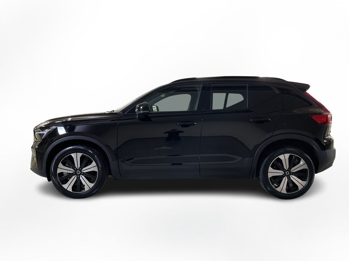 En svart begagnad Volvo XC40 Recharge Single Motor som är tillverkad 2022 med årsmodell 2023 och har utrustningspaketet Core med 231 hk. Fordonet finns i Karlstad med reg. nummer BOZ92C, har automat-växellåda och mätarställning är 4.532 mil. Fordonet har totalt 5 st sittplatser och är kategoriserad som liten suv.