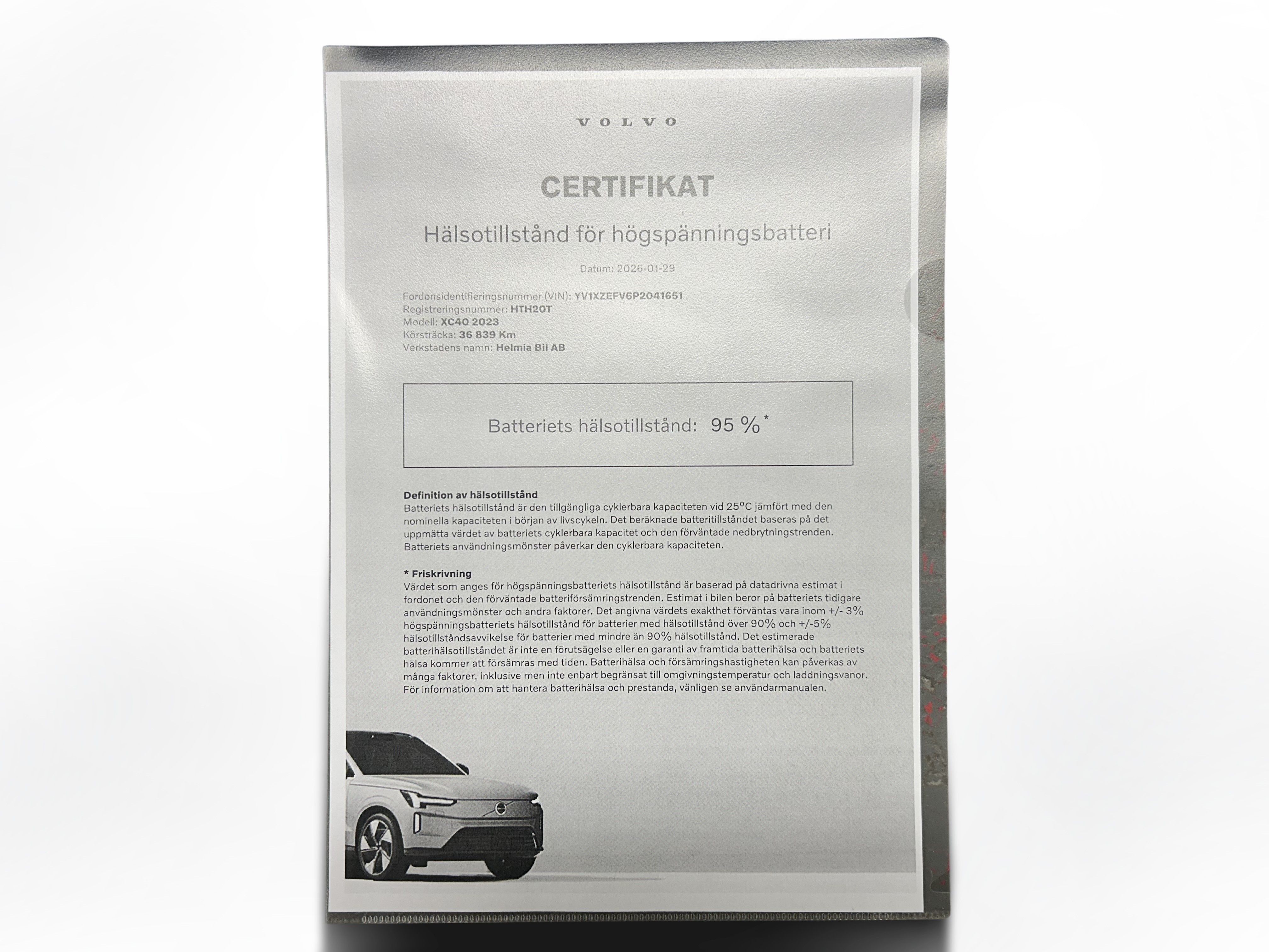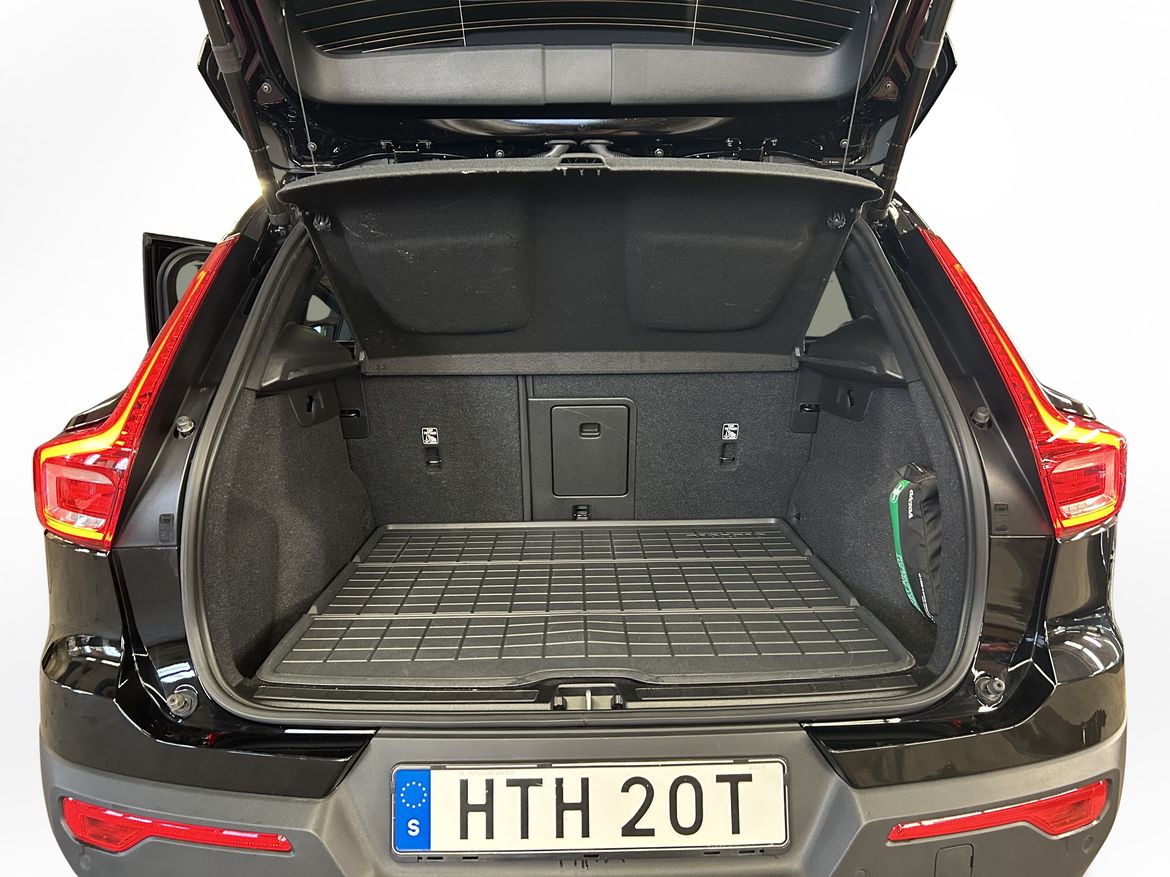 En svart begagnad Volvo XC40 Recharge Single Motor som är tillverkad 2023 med årsmodell 2023 och har utrustningspaketet Core med 231 hk. Fordonet finns i Karlskoga med reg. nummer HTH20T, har automat-växellåda och mätarställning är 3.683 mil. Fordonet har totalt 5 st sittplatser och är kategoriserad som liten suv.
