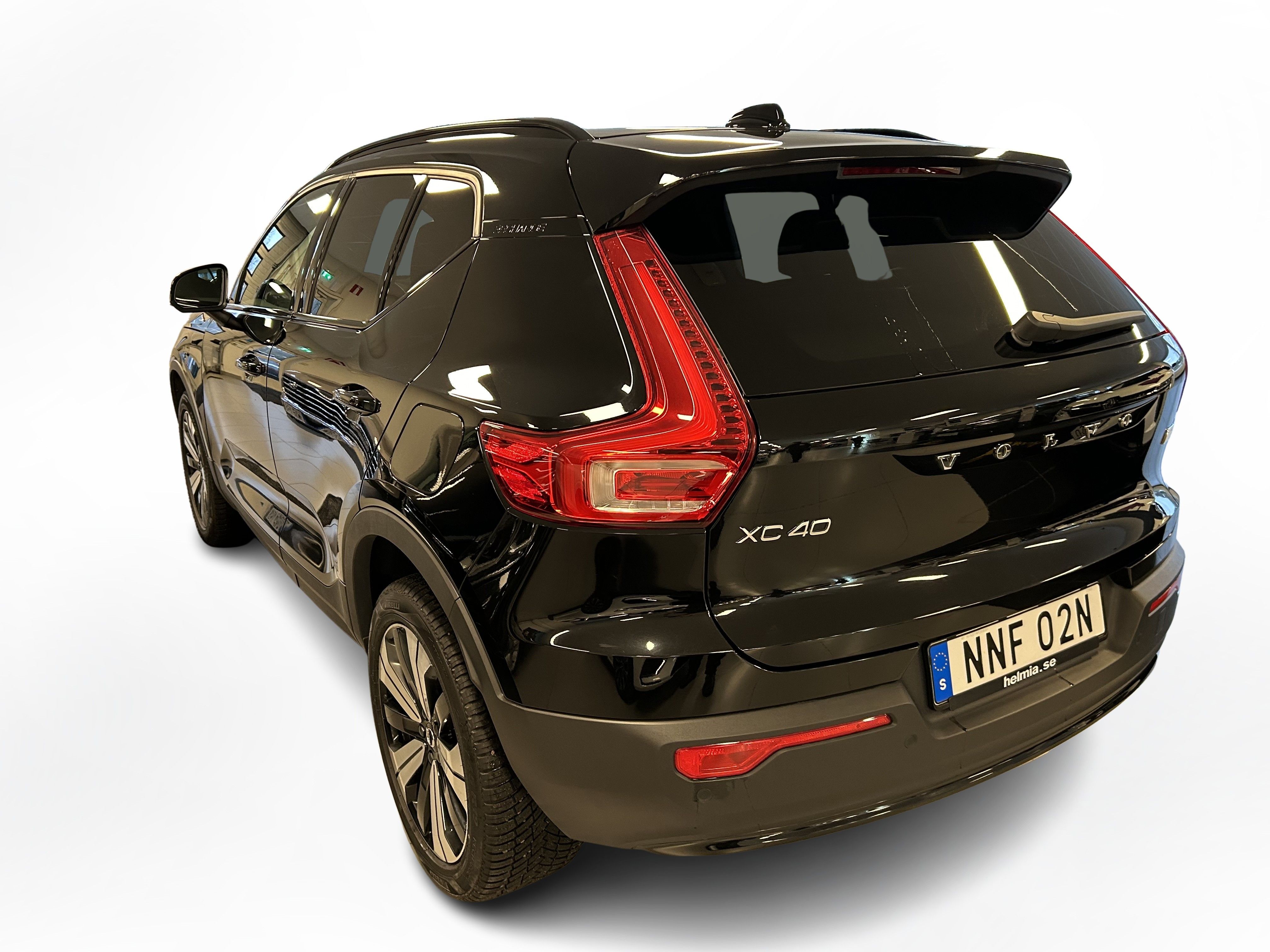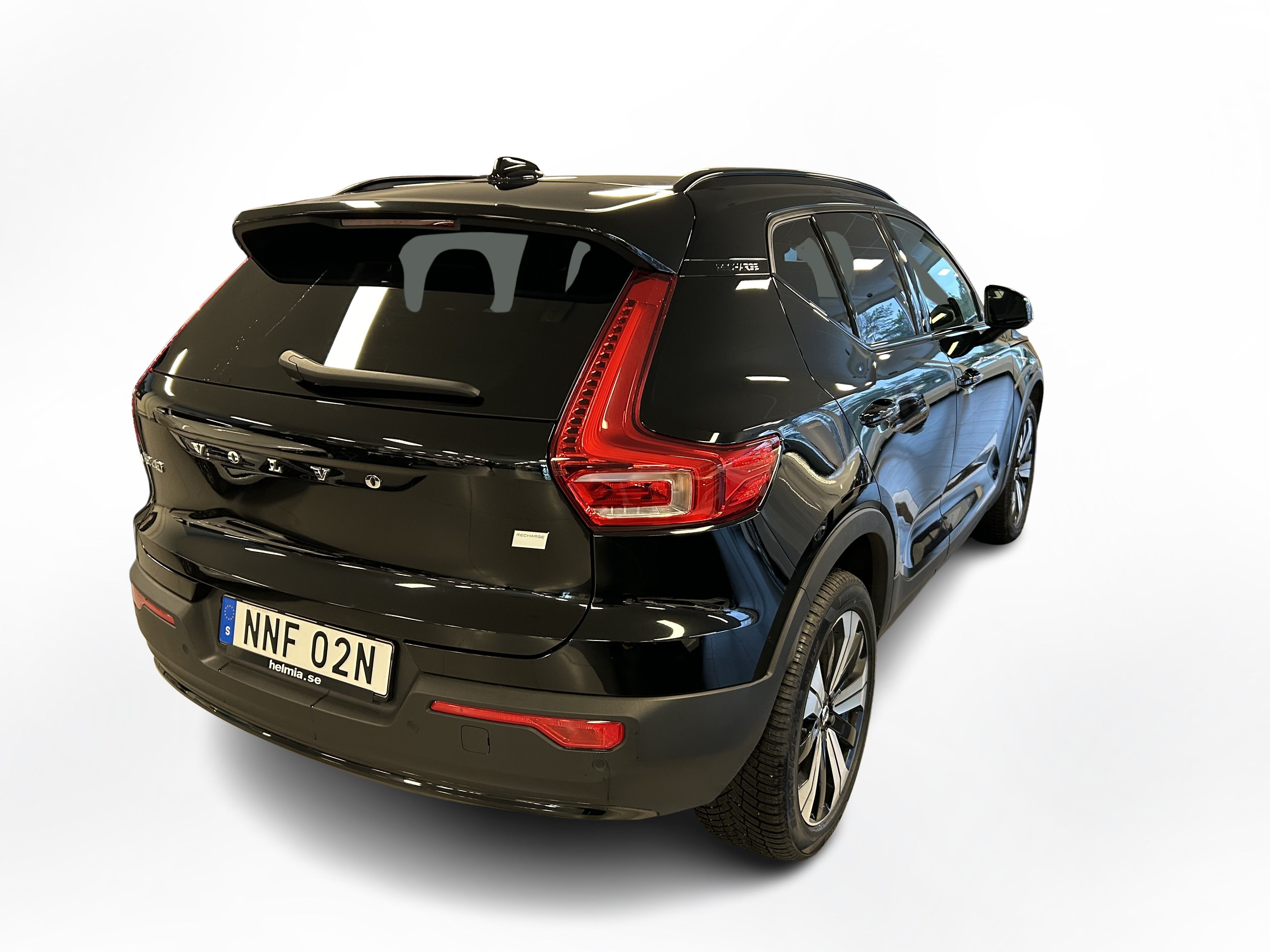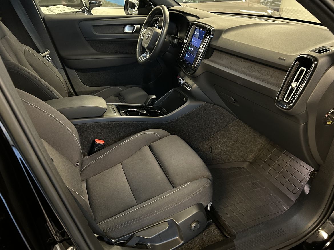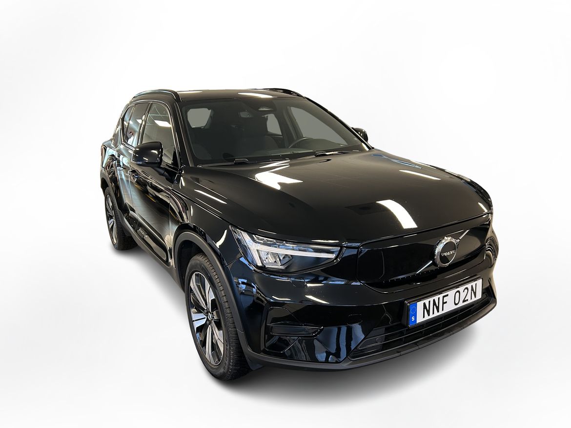 En svart begagnad Volvo XC40 Recharge Single Motor som är tillverkad 2022 med årsmodell 2023 och har utrustningspaketet Core med 231 hk. Fordonet finns i Karlstad med reg. nummer NNF02N, har automat-växellåda och mätarställning är 9.027 mil. Fordonet har totalt 5 st sittplatser och är kategoriserad som liten suv.