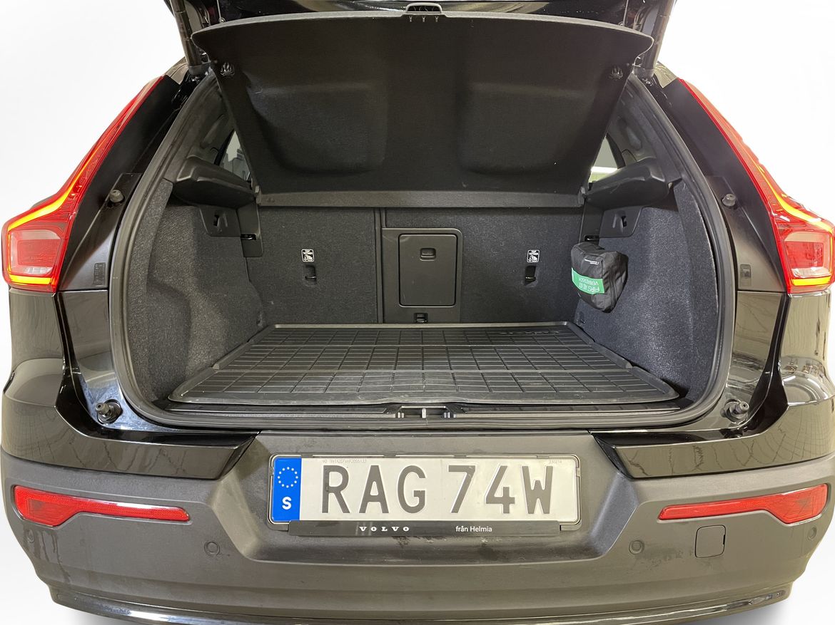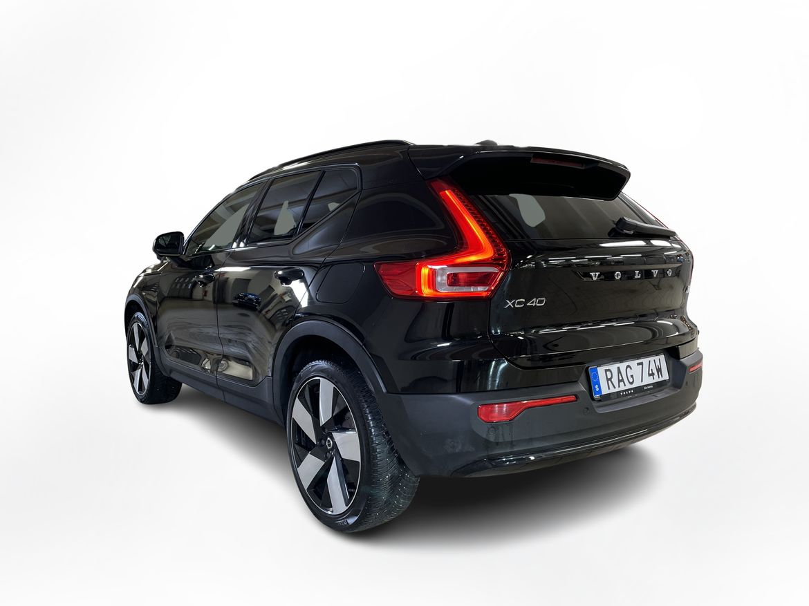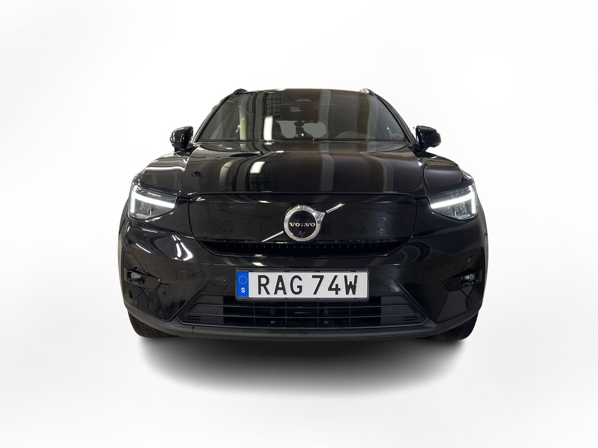 En svart begagnad Volvo XC40 Recharge Single Motor som är tillverkad 2023 med årsmodell 2023 och har utrustningspaketet Ultimate med 231 hk. Fordonet finns i Karlstad med reg. nummer RAG74W, har automat-växellåda och mätarställning är 5.223 mil. Fordonet har totalt 5 st sittplatser och är kategoriserad som liten suv.