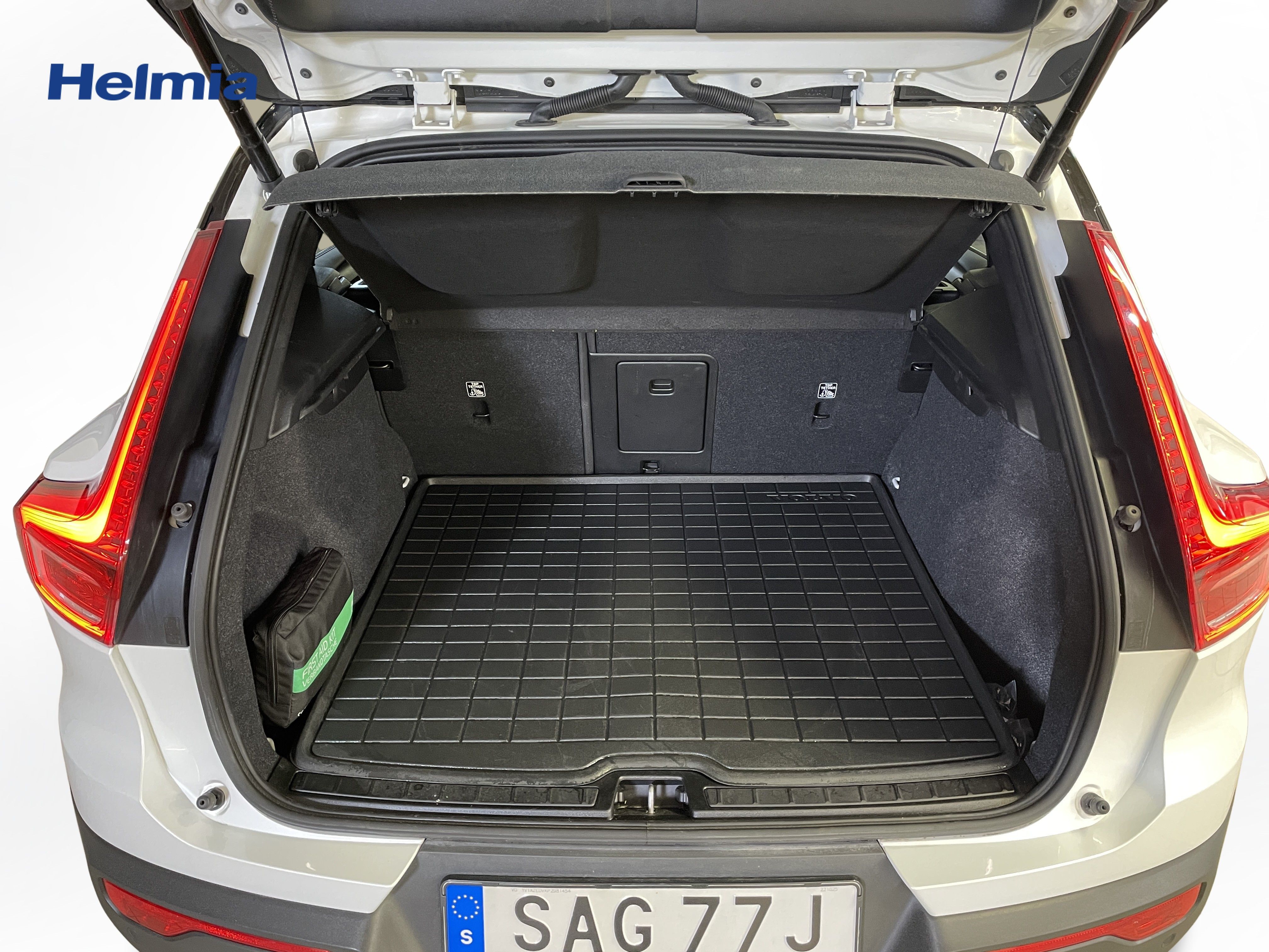 En vit begagnad Volvo XC40 Recharge Twin motor som är tillverkad 2022 med årsmodell 2023 och har utrustningspaketet Plus med 408 hk. Fordonet finns i Karlstad med reg. nummer SAG77J, har automat-växellåda och mätarställning är 13.166 mil. Fordonet har totalt 5 st sittplatser och är kategoriserad som liten suv.