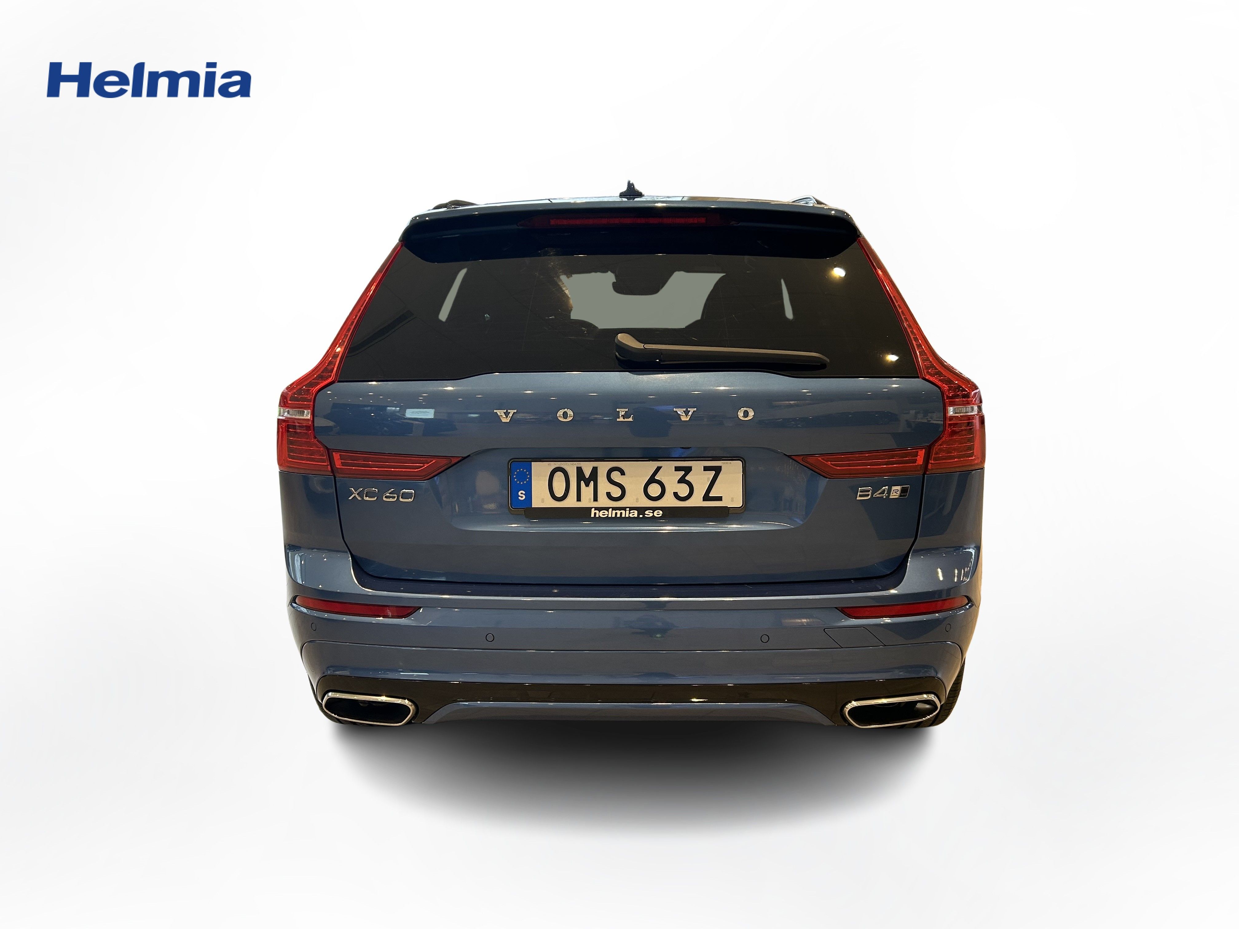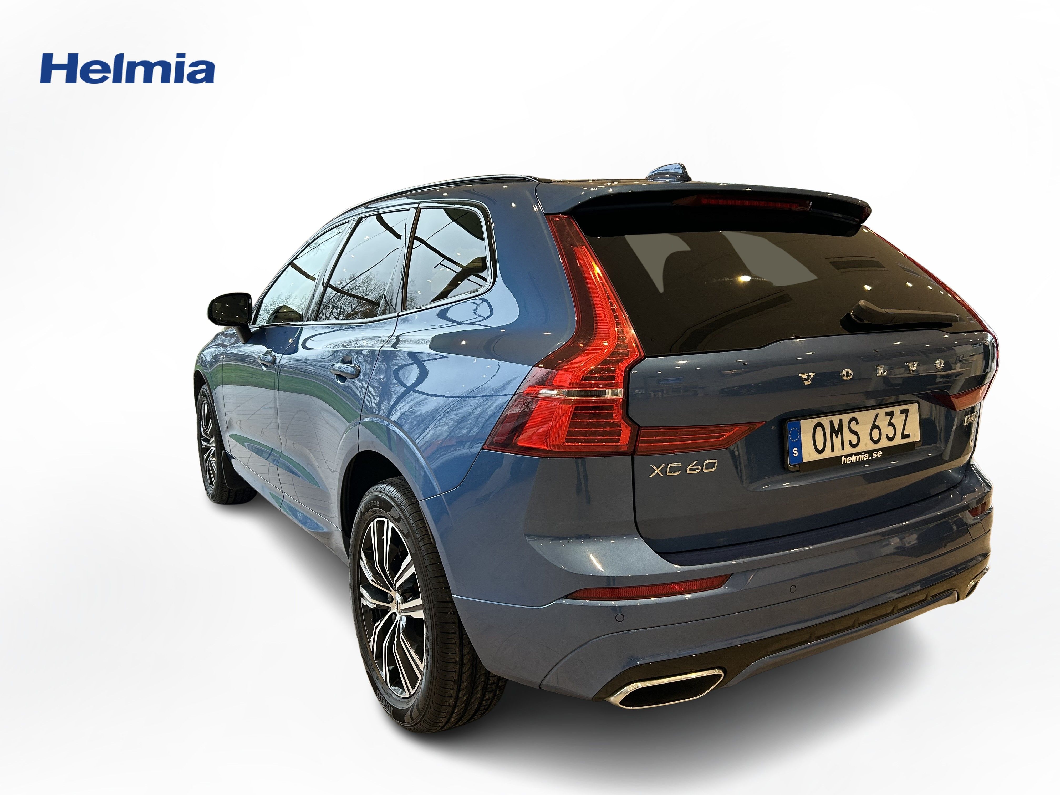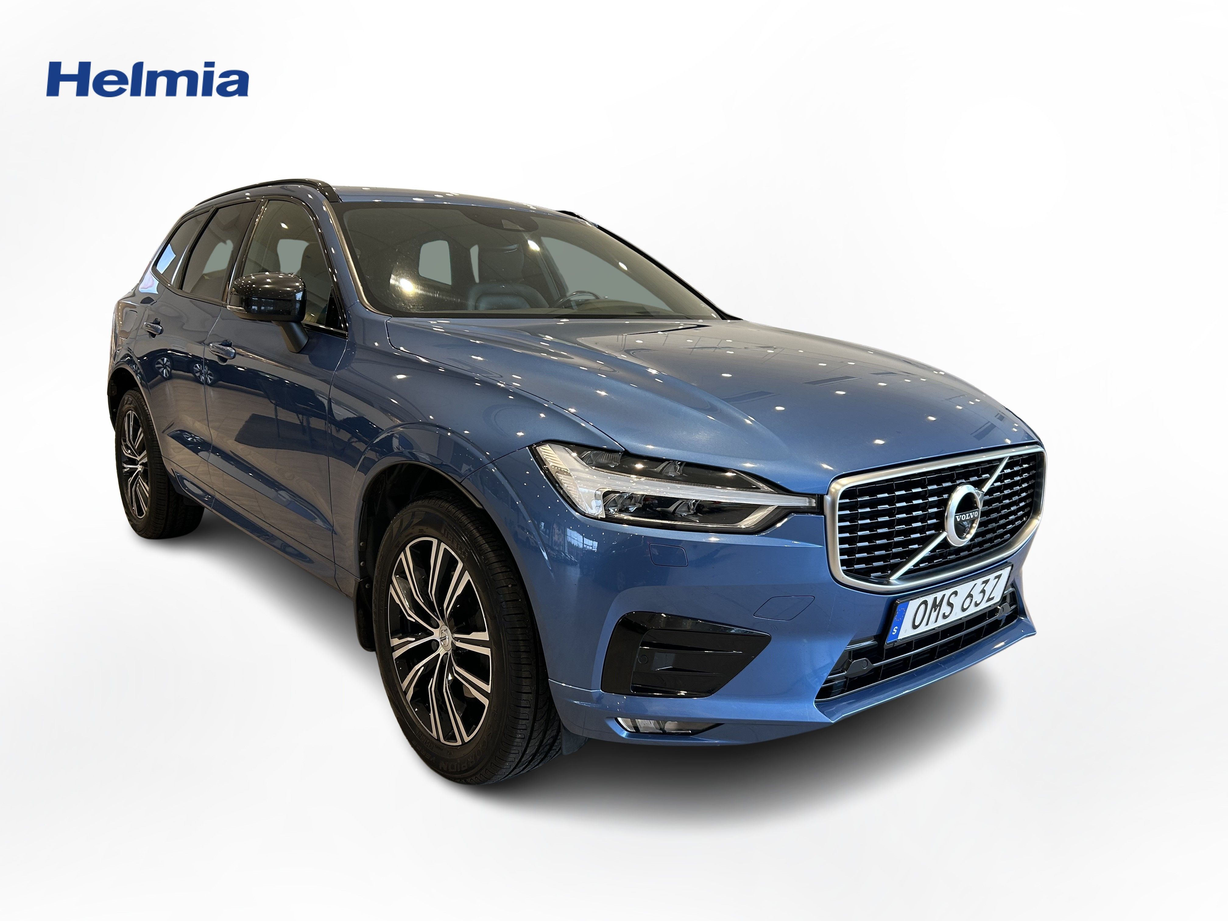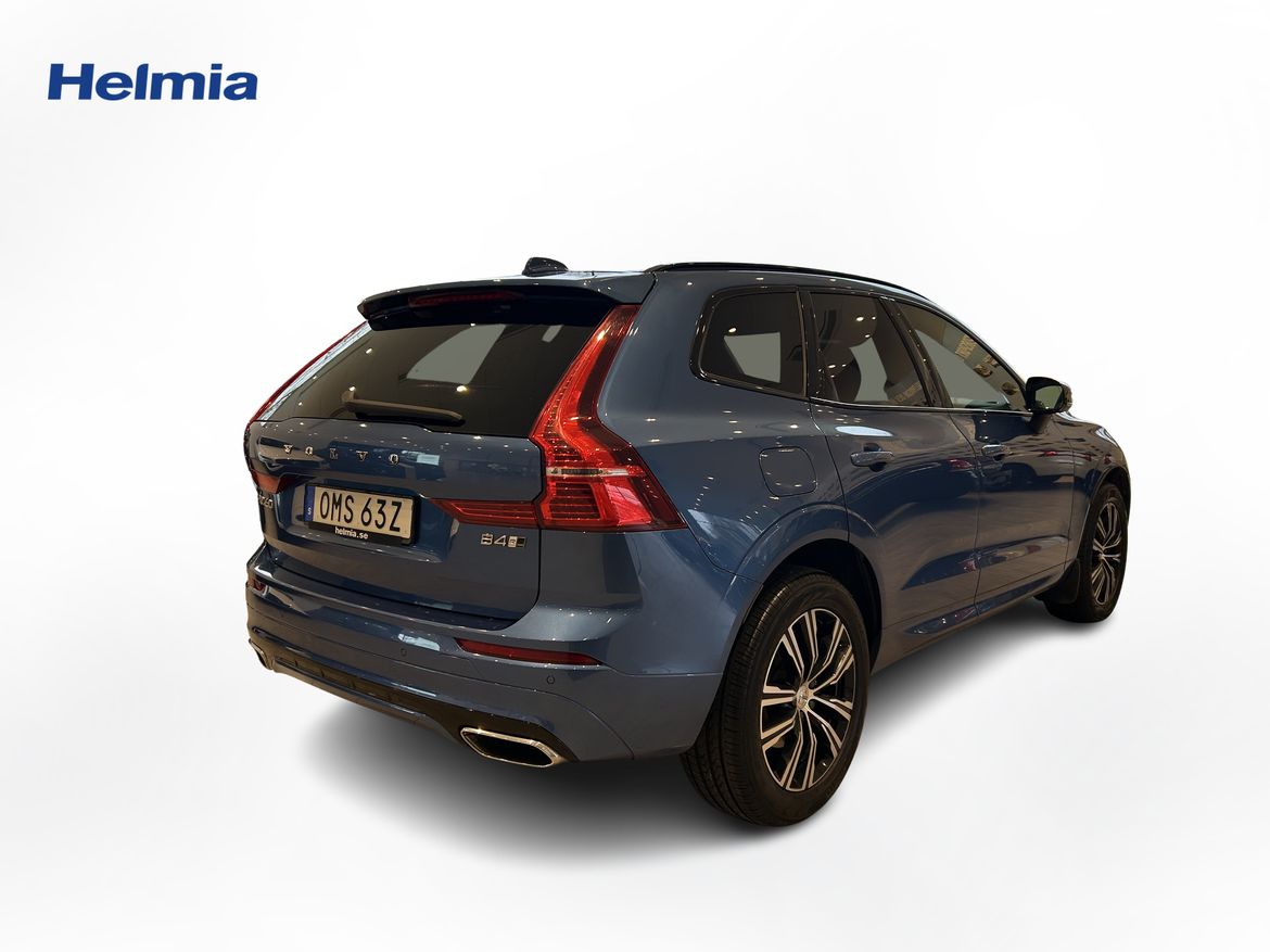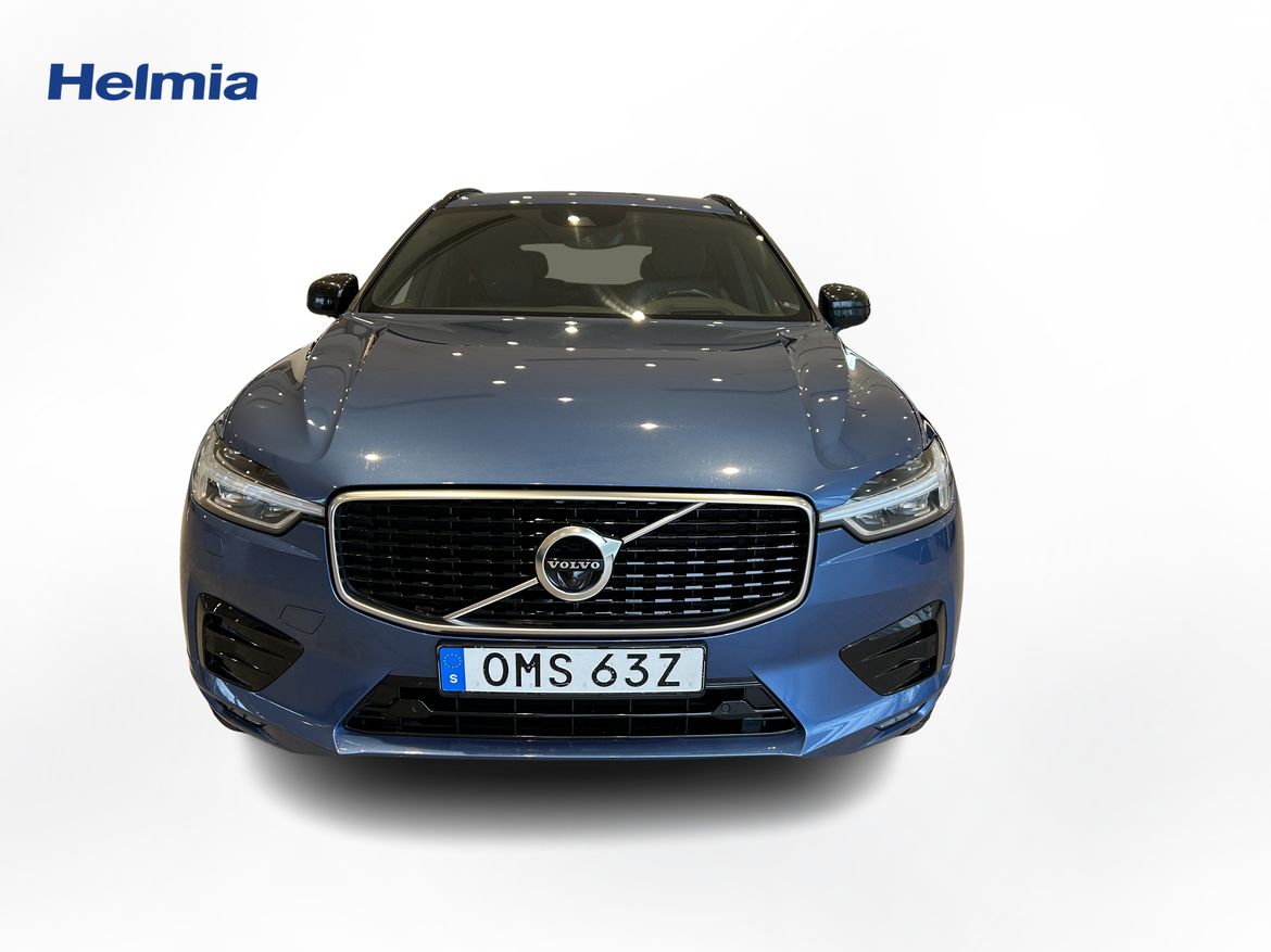 En blå begagnad Volvo XC60 som är tillverkad 2019 med årsmodell 2020 och har utrustningspaketet R-Design med 197 hk. Fordonet finns i Arvika med reg. nummer OMS63Z, har automat-växellåda och mätarställning är 20.136 mil. Fordonet har totalt 5 st sittplatser och är kategoriserad som mellanstor suv.