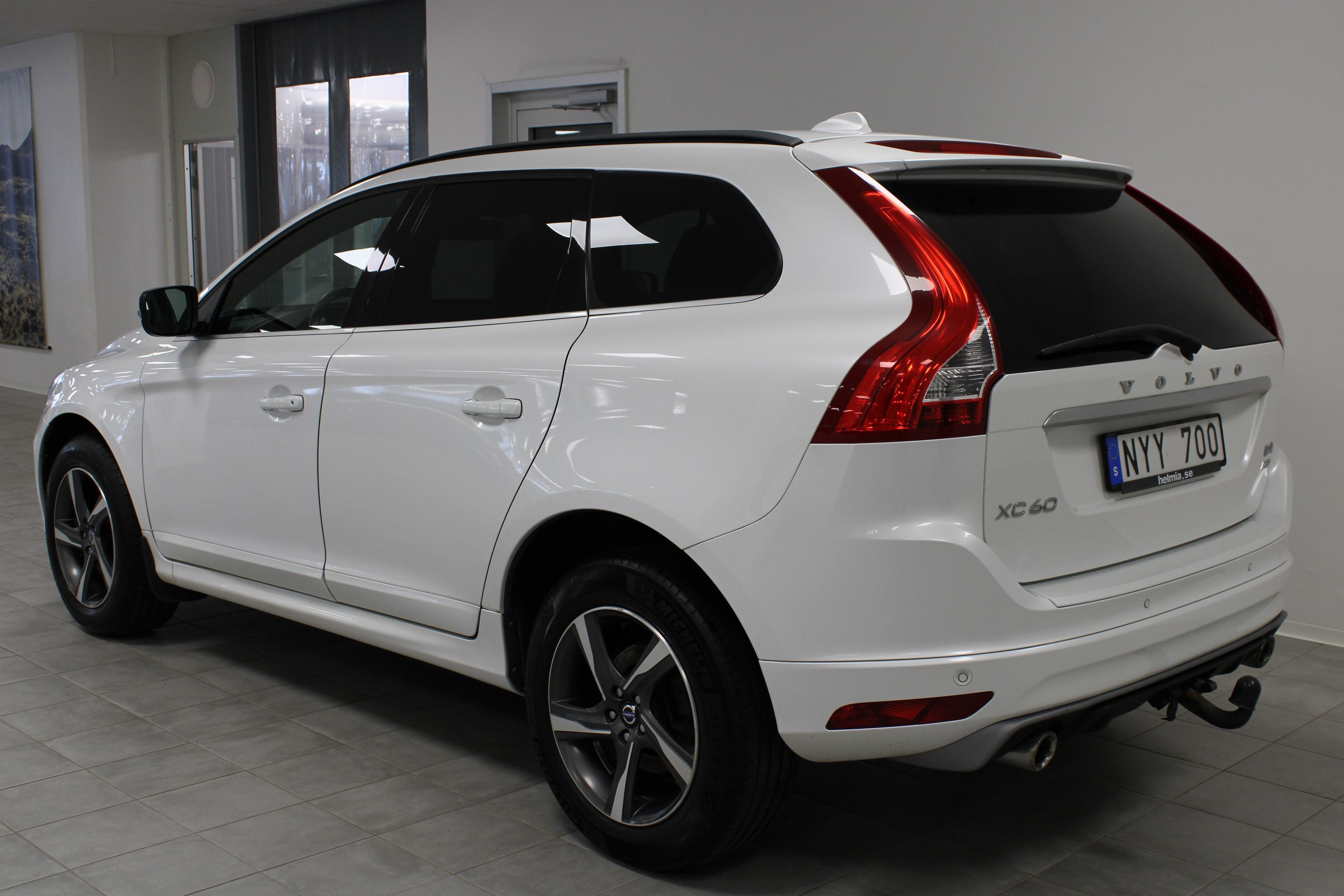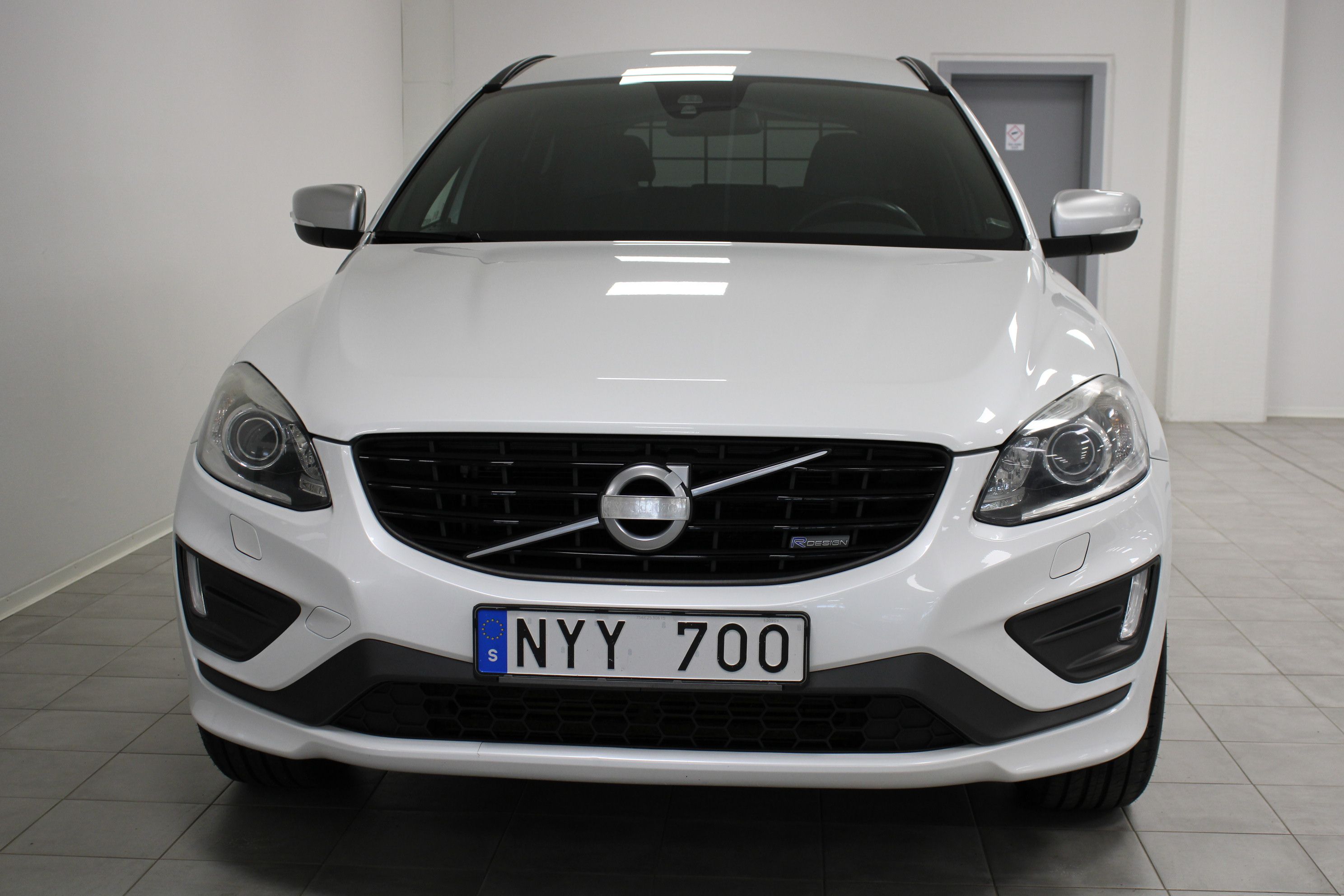 En vit begagnad Volvo XC60 som är tillverkad 2013 med årsmodell 2014 och har utrustningspaketet R-Design med 163 hk. Fordonet finns i Filipstad med reg. nummer NYY700, har automat-växellåda och mätarställning är 18.945 mil. Fordonet har totalt 5 st sittplatser och är kategoriserad som mellanstor suv.