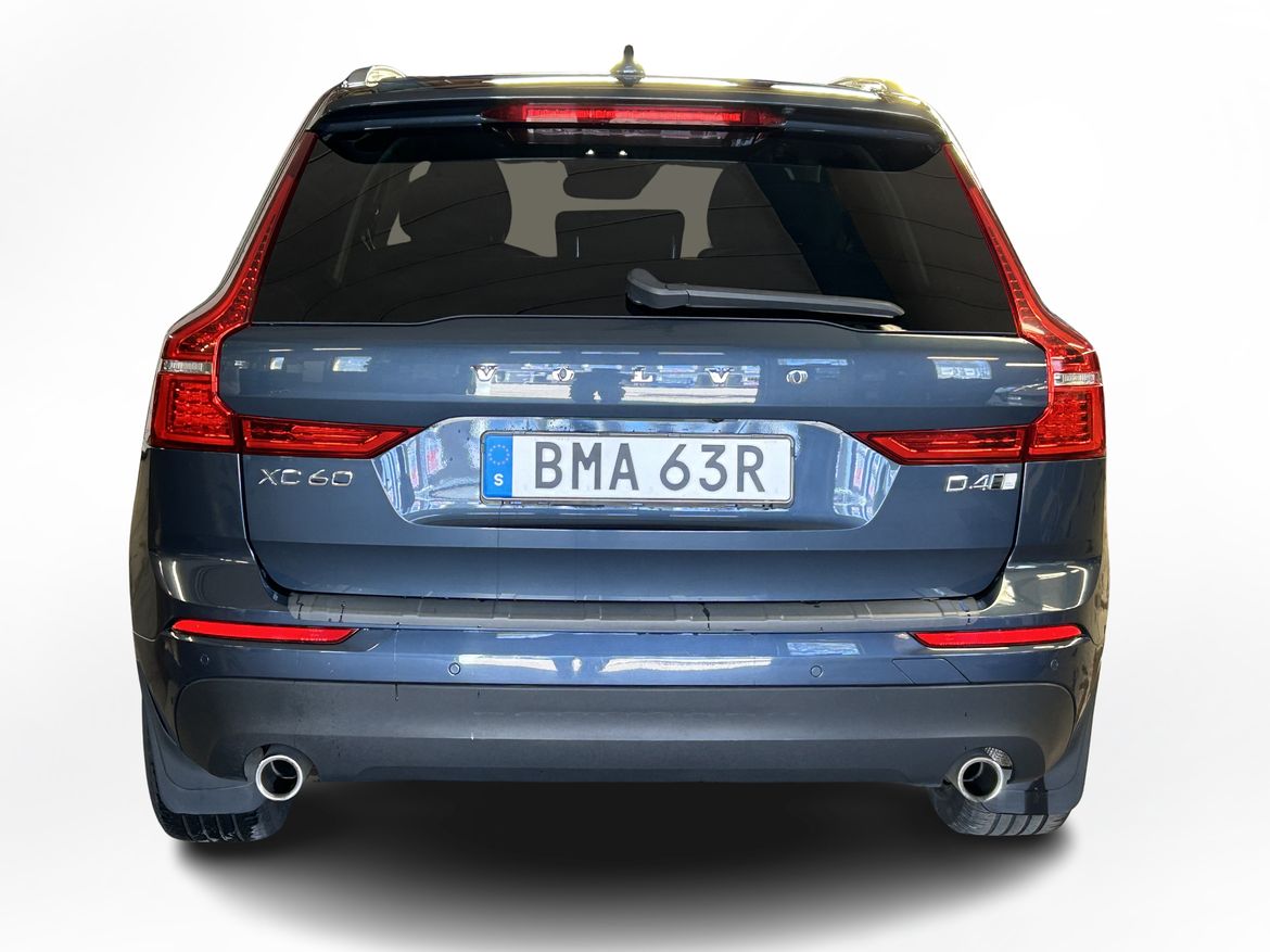 En blå begagnad Volvo XC60 D4 AWD som är tillverkad 2019 med årsmodell 2019 och har utrustningspaketet Momentum med 200 hk. Fordonet finns i Karlskoga med reg. nummer BMA63R, har automat-växellåda och mätarställning är 10.600 mil. Fordonet har totalt 5 st sittplatser och är kategoriserad som mellanstor suv.