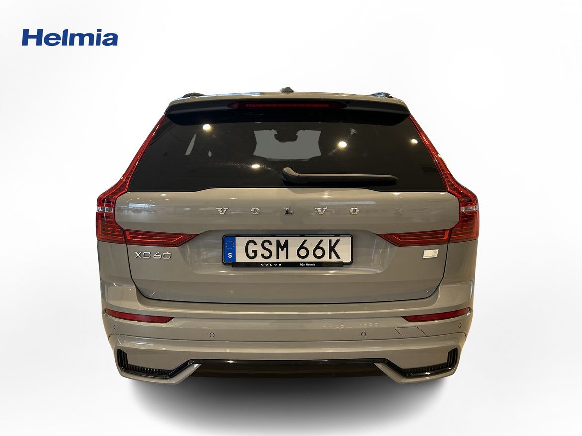 En grå begagnad Volvo XC60 som är tillverkad 2023 med årsmodell 2024 och har utrustningspaketet Plus med 350 hk. Fordonet finns i Arvika med reg. nummer GSM66K, har automat-växellåda och mätarställning är 9.650 mil. Fordonet har totalt 5 st sittplatser och är kategoriserad som mellanstor suv.
