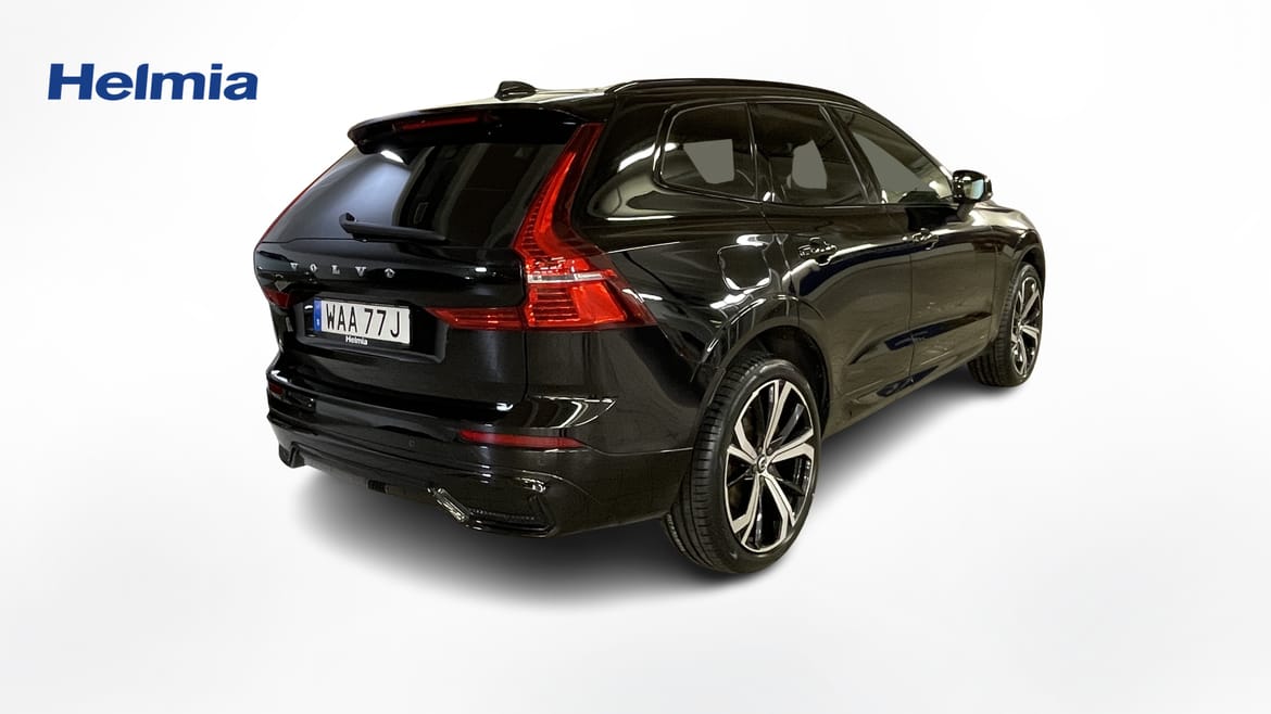 En svart begagnad Volvo XC60 som är tillverkad 2022 med årsmodell 2023 och har utrustningspaketet R-Design med 350 hk. Fordonet finns i Sunne med reg. nummer WAA77J, har automat-växellåda och mätarställning är 12.475 mil. Fordonet har totalt 5 st sittplatser och är kategoriserad som mellanstor suv.