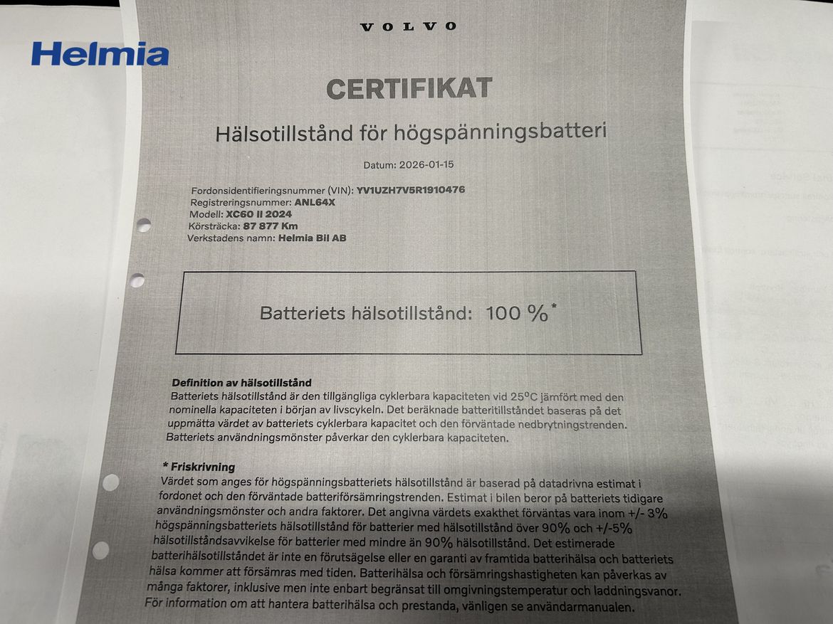 En vit begagnad Volvo XC60 som är tillverkad 2024 med årsmodell 2024 och har utrustningspaketet Ultimate med 456 hk. Fordonet finns i Sunne med reg. nummer ANL64X, har automat-växellåda och mätarställning är 8.787 mil. Fordonet har totalt 5 st sittplatser och är kategoriserad som mellanstor suv.