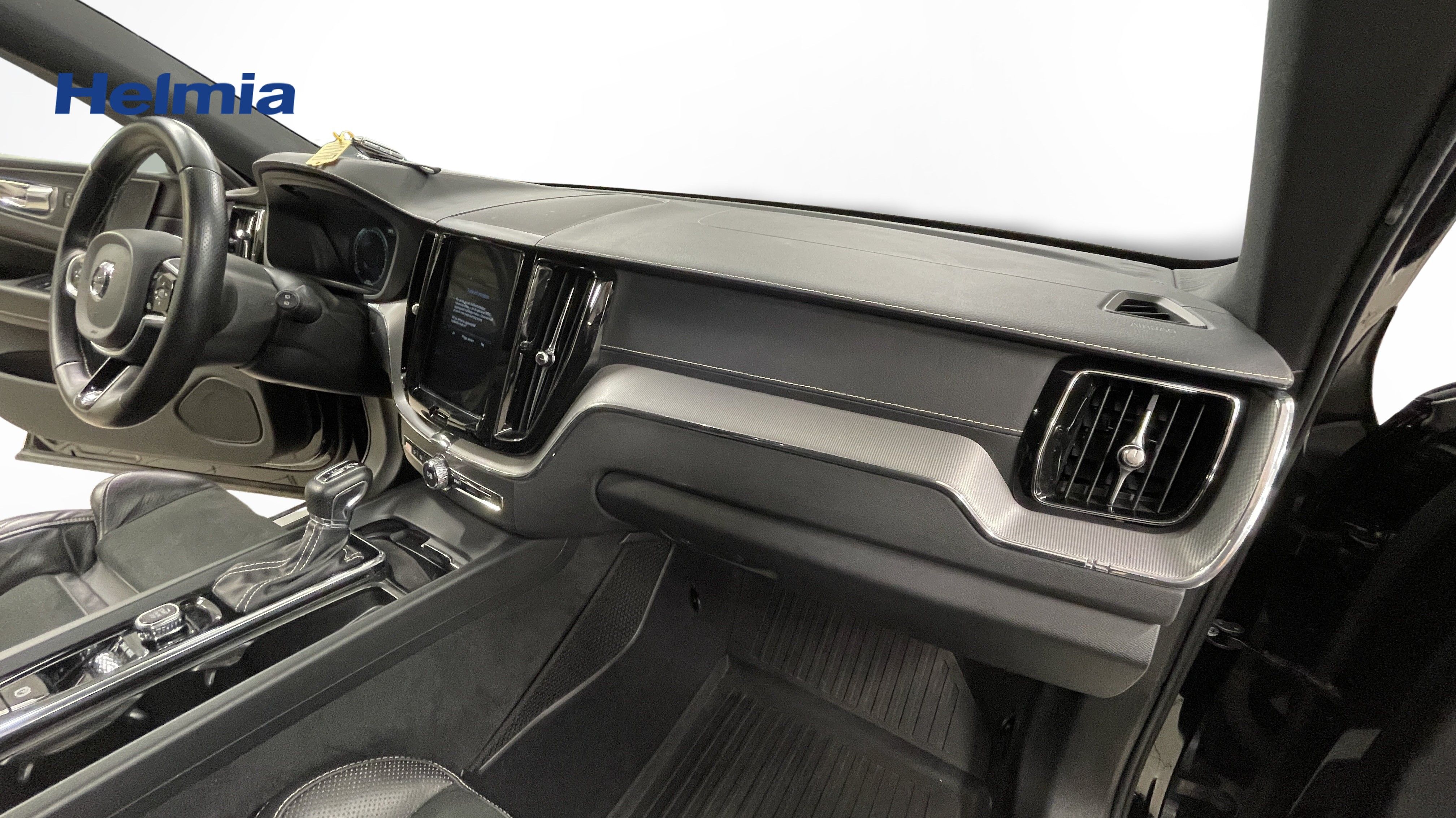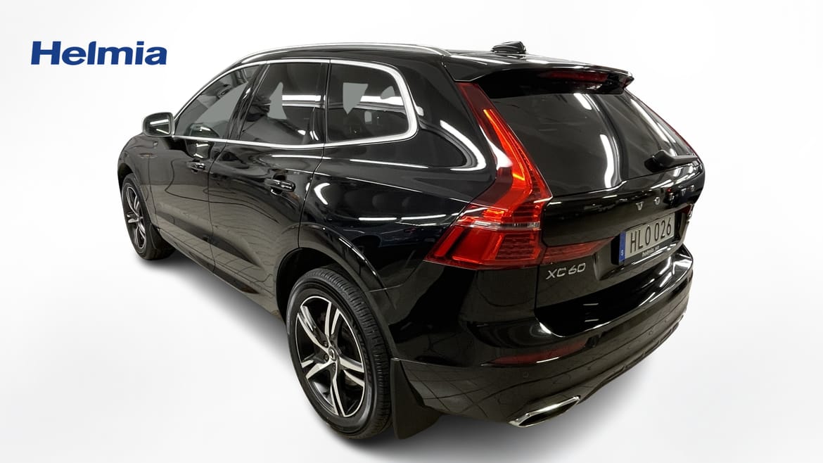 En svart begagnad Volvo XC60 som är tillverkad 2018 med årsmodell 2019 och har utrustningspaketet R-Design med 250 hk. Fordonet finns i Karlstad med reg. nummer HLO026, har automat-växellåda och mätarställning är 21.593 mil. Fordonet har totalt 5 st sittplatser och är kategoriserad som mellanstor suv.