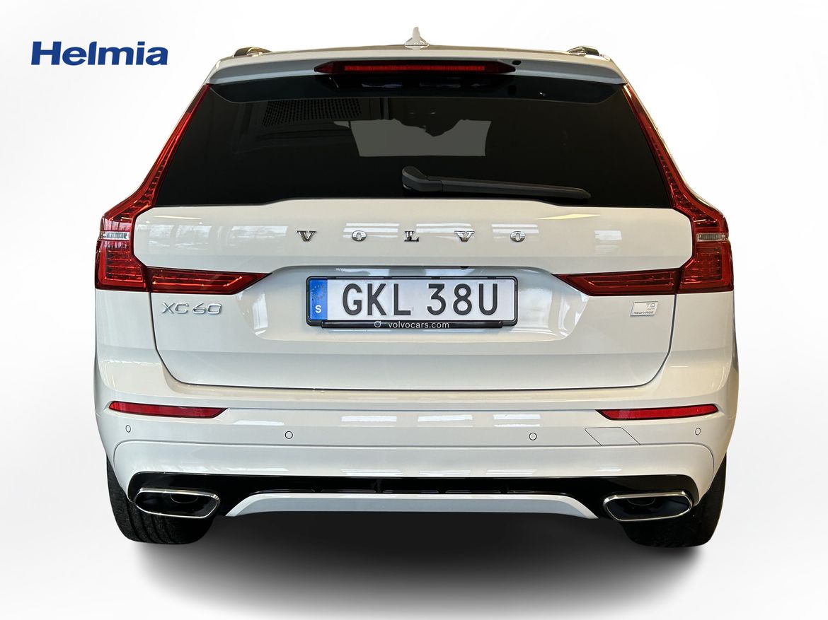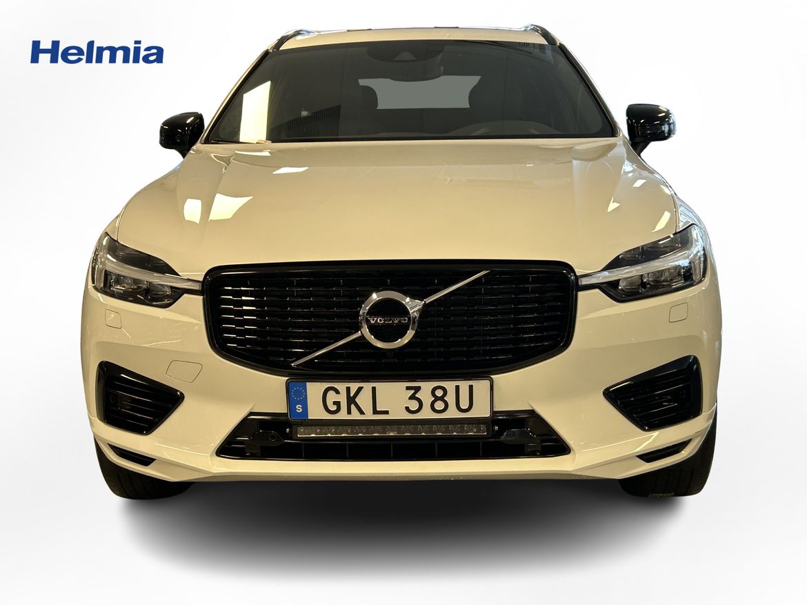 En vit begagnad Volvo XC60 T8 AWD Recharge som är tillverkad 2021 med årsmodell 2021 och har utrustningspaketet R-Design med 392 hk. Fordonet finns i Filipstad med reg. nummer GKL38U, har automat-växellåda och mätarställning är 4.695 mil. Fordonet har totalt 5 st sittplatser och är kategoriserad som mellanstor suv.