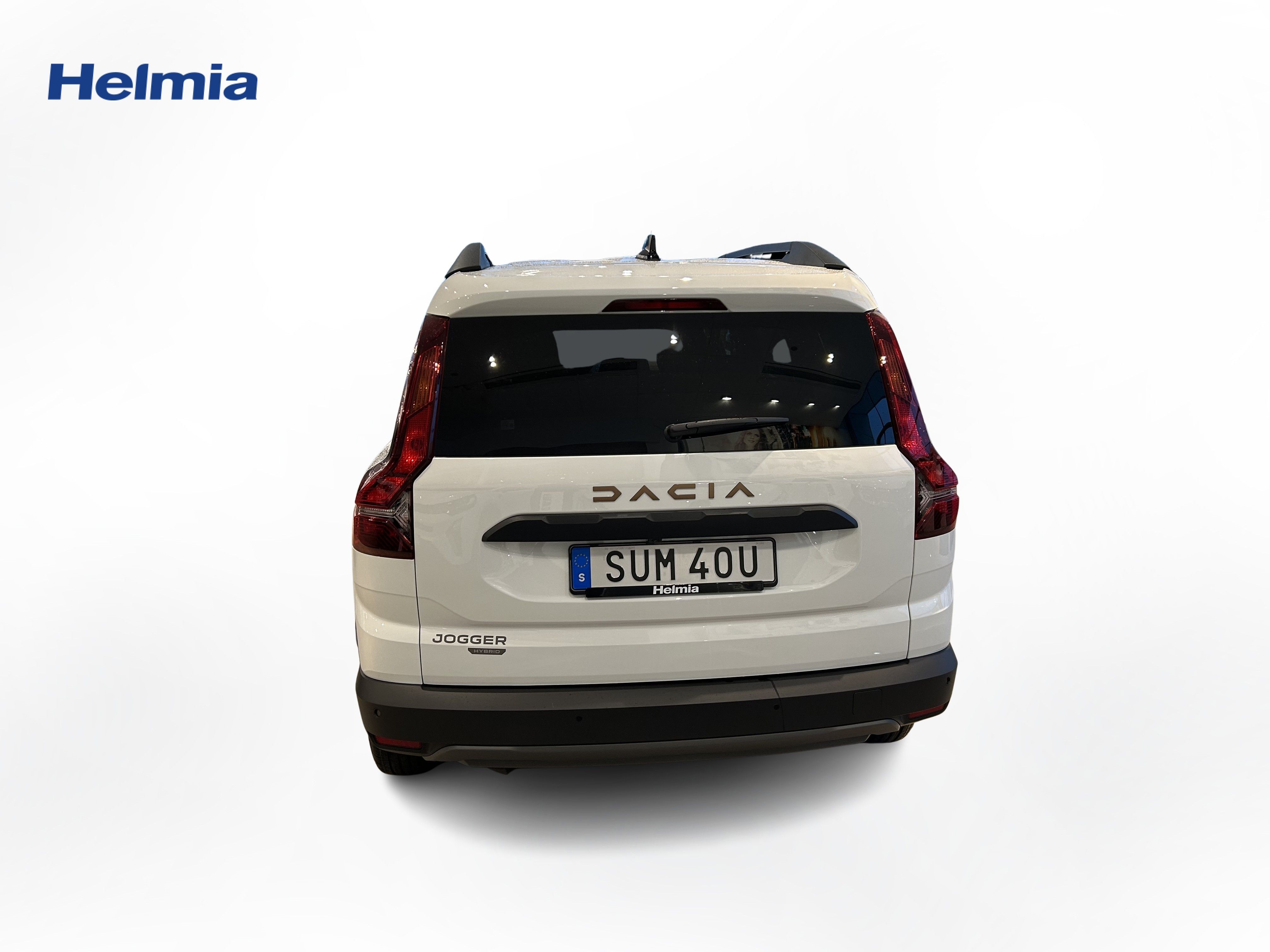 En vit ny Dacia Jogger 7-sätes HYBRID 140 som är tillverkad 2024 med årsmodell 2025 och har utrustningspaketet med 141 hk. Fordonet finns i Arvika med reg. nummer SUM40U, har automat-växellåda och mätarställning är 1 mil. Fordonet har totalt 7 st sittplatser och är kategoriserad som mellanstor mpv.