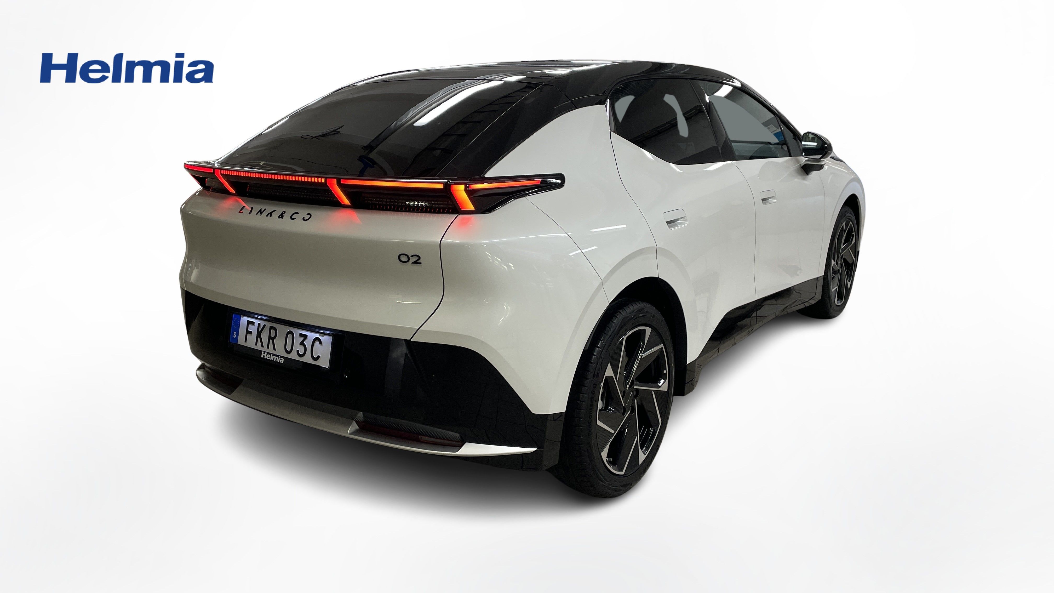 En vit ny Lynk & Co 02 EV som är tillverkad 2024 med årsmodell 2025 och har utrustningspaketet med 272 hk. Fordonet finns i Karlstad med reg. nummer FKR03C, har automat-växellåda och mätarställning är 10 mil. Fordonet har totalt 5 st sittplatser och är kategoriserad som liten suv.