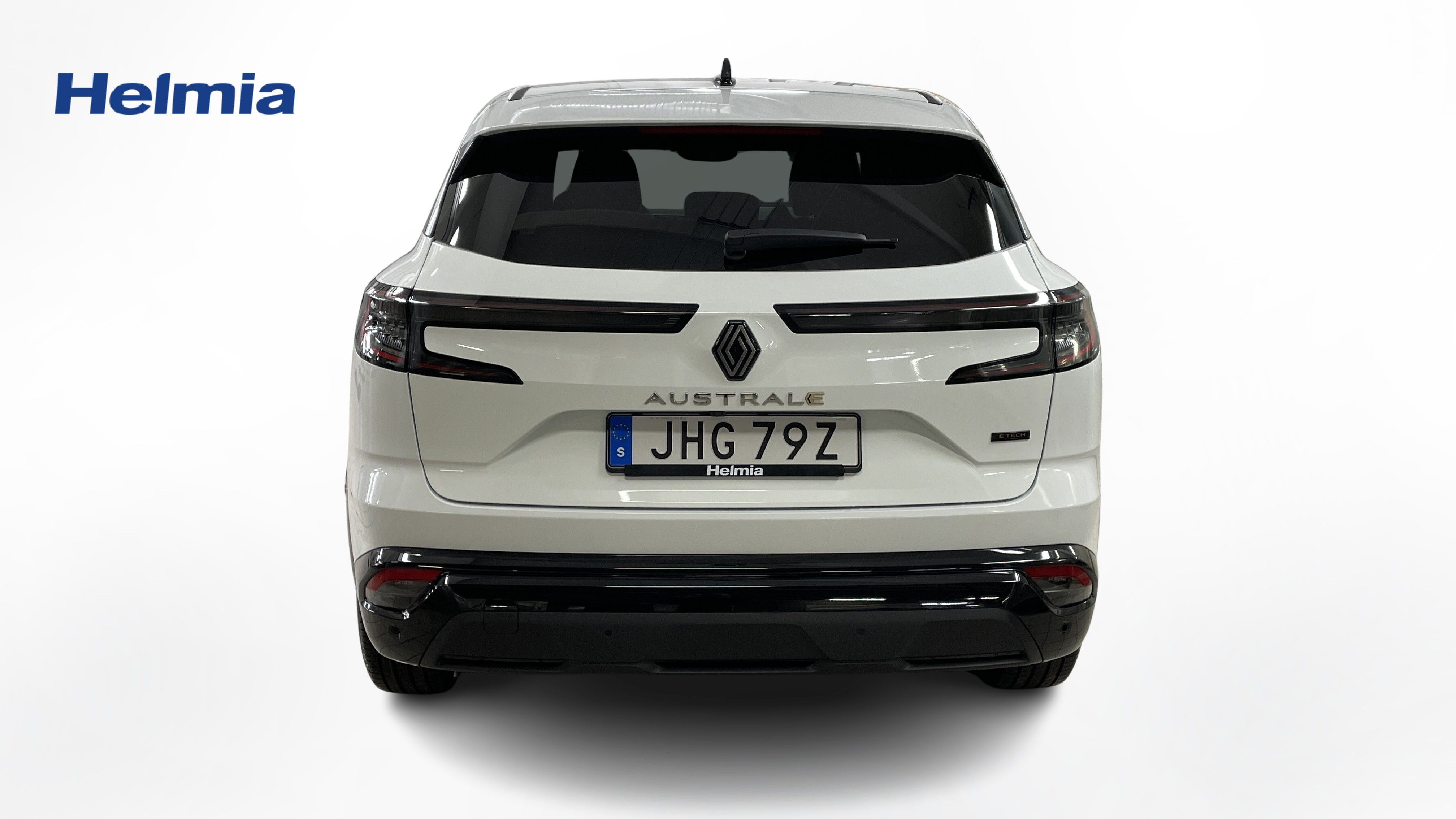 En vit ny Renault Austral E-TECH som är tillverkad 2024 med årsmodell 2025 och har utrustningspaketet med 200 hk. Fordonet finns i Karlstad med reg. nummer JHG79Z, har automat-växellåda och mätarställning är 0 mil. Fordonet har totalt 5 st sittplatser och är kategoriserad som mellanstor suv.