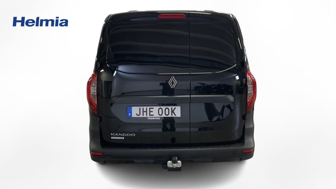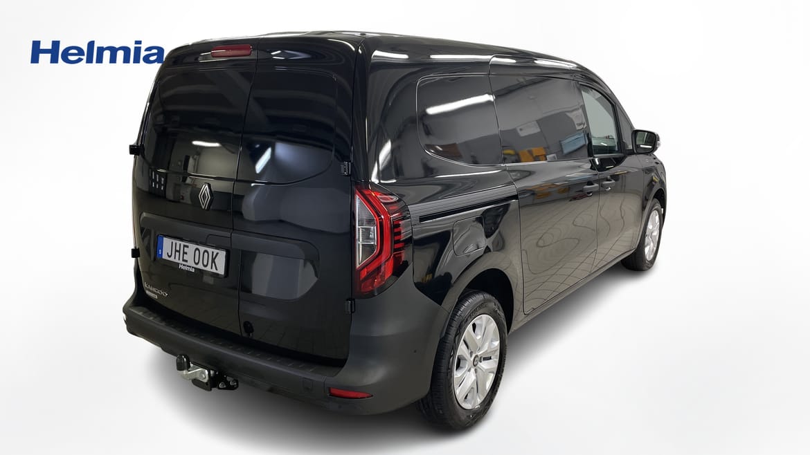 En svart ny Renault Kangoo Skåpbil som är tillverkad 2024 med årsmodell 2024 och har utrustningspaketet med 95 hk. Fordonet finns i Karlstad med reg. nummer JHE00K, har automat-växellåda och mätarställning är 1 mil. Fordonet har totalt 2 st sittplatser och är kategoriserad som skåpbil.