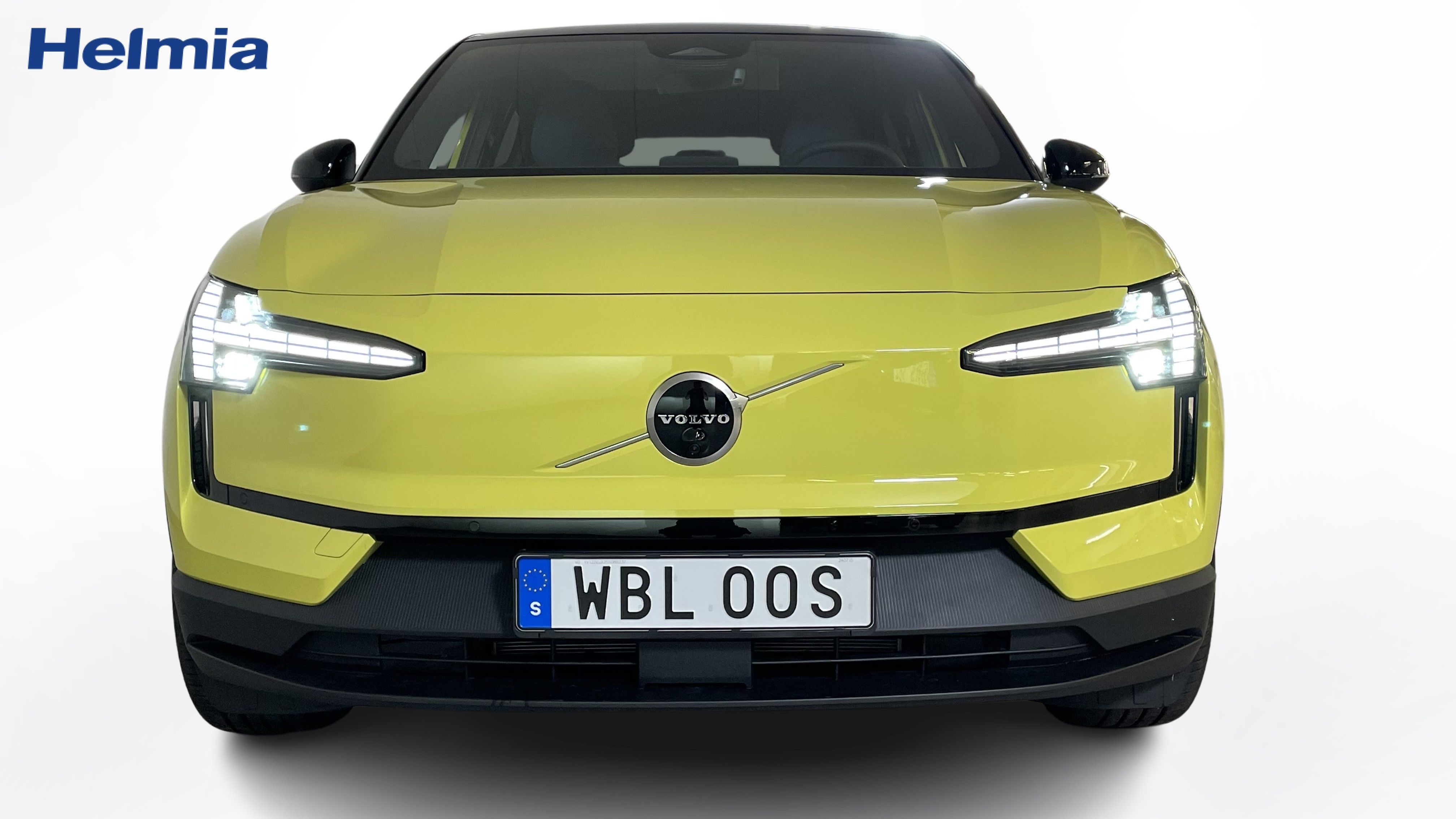 En gul ny Volvo EX30 Single Motor Extended Range som är tillverkad 2024 med årsmodell 2025 och har utrustningspaketet Ultra med 272 hk. Fordonet finns i Karlstad med reg. nummer WBL00S, har automat-växellåda och mätarställning är 2 mil. Fordonet har totalt 5 st sittplatser och är kategoriserad som liten suv.