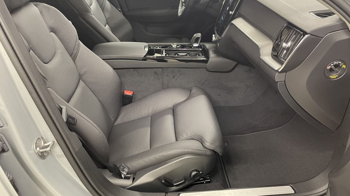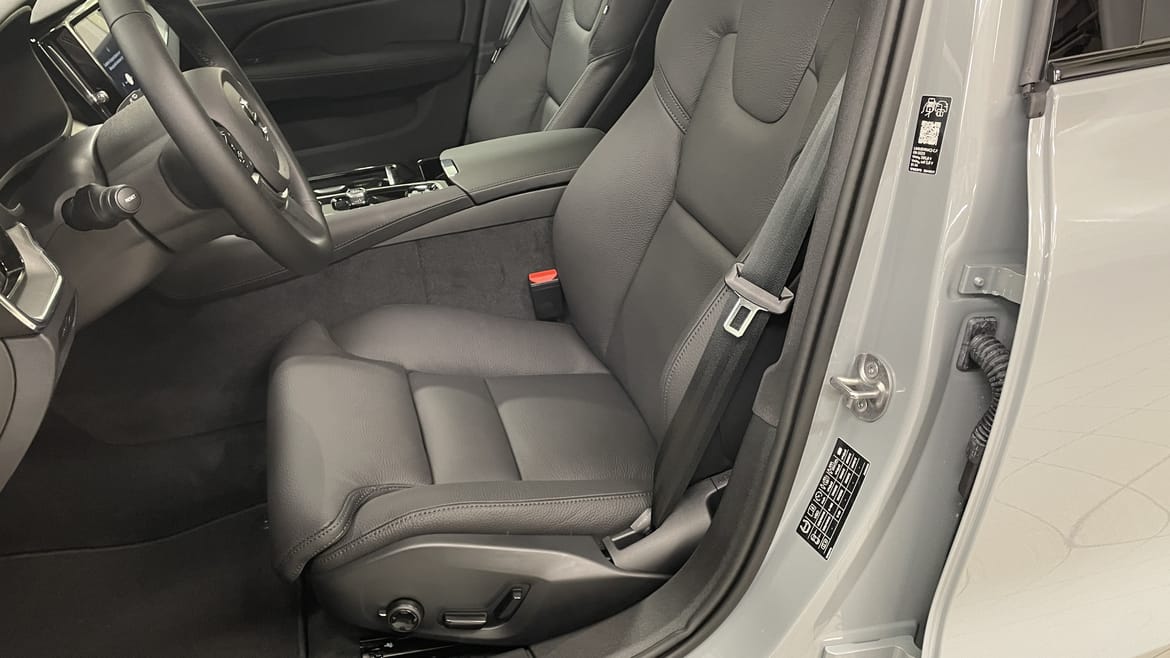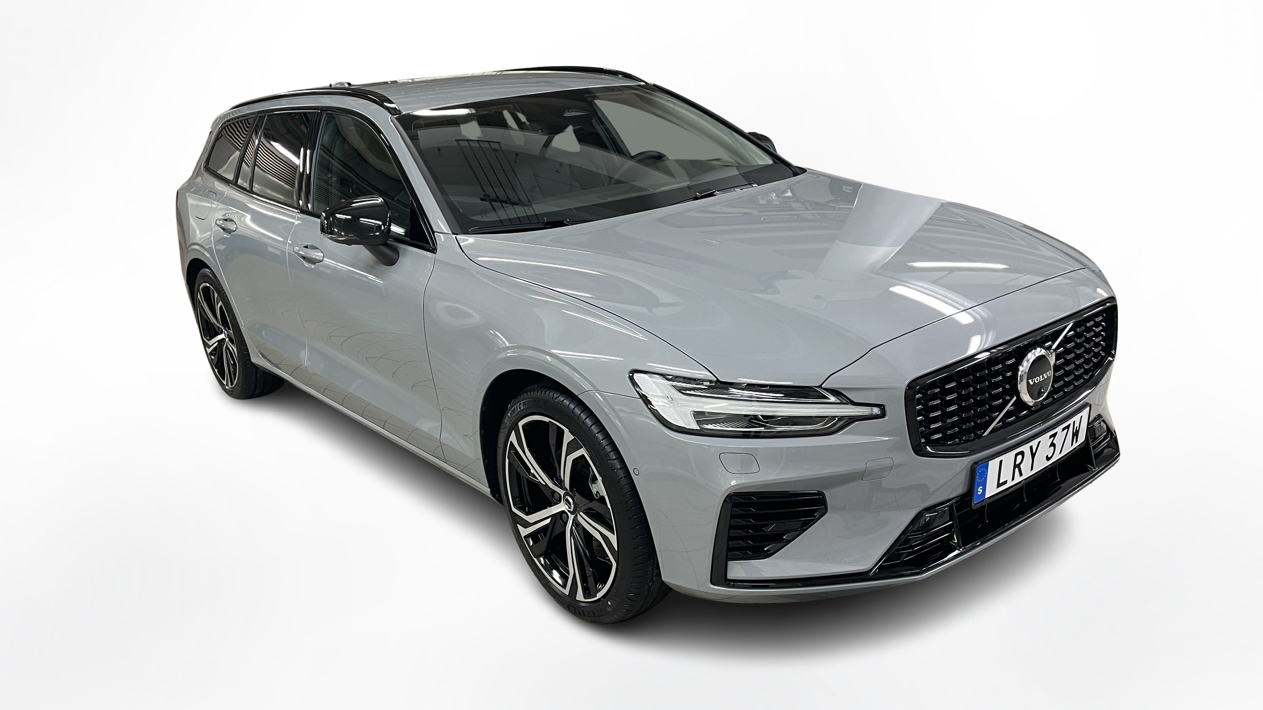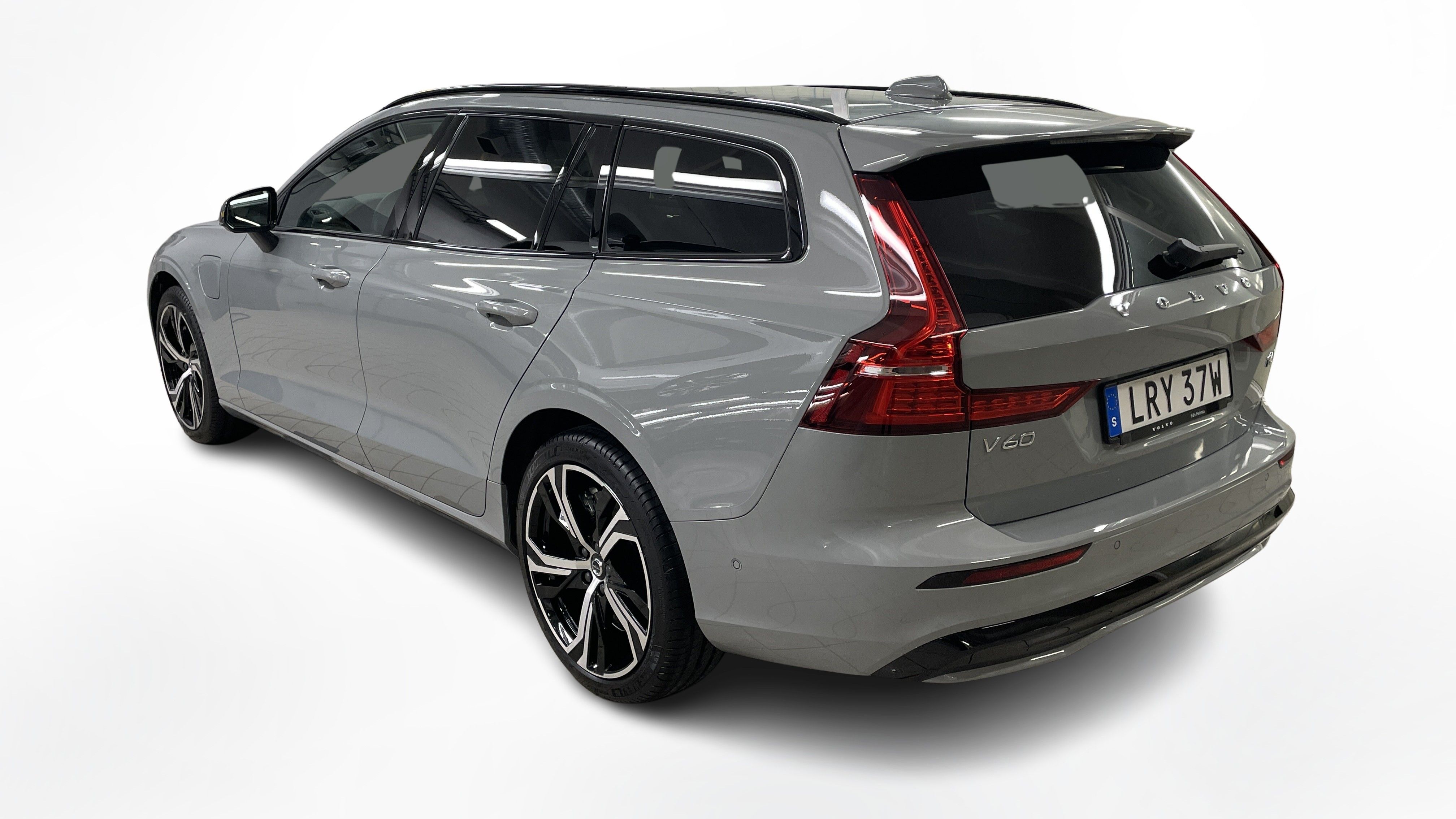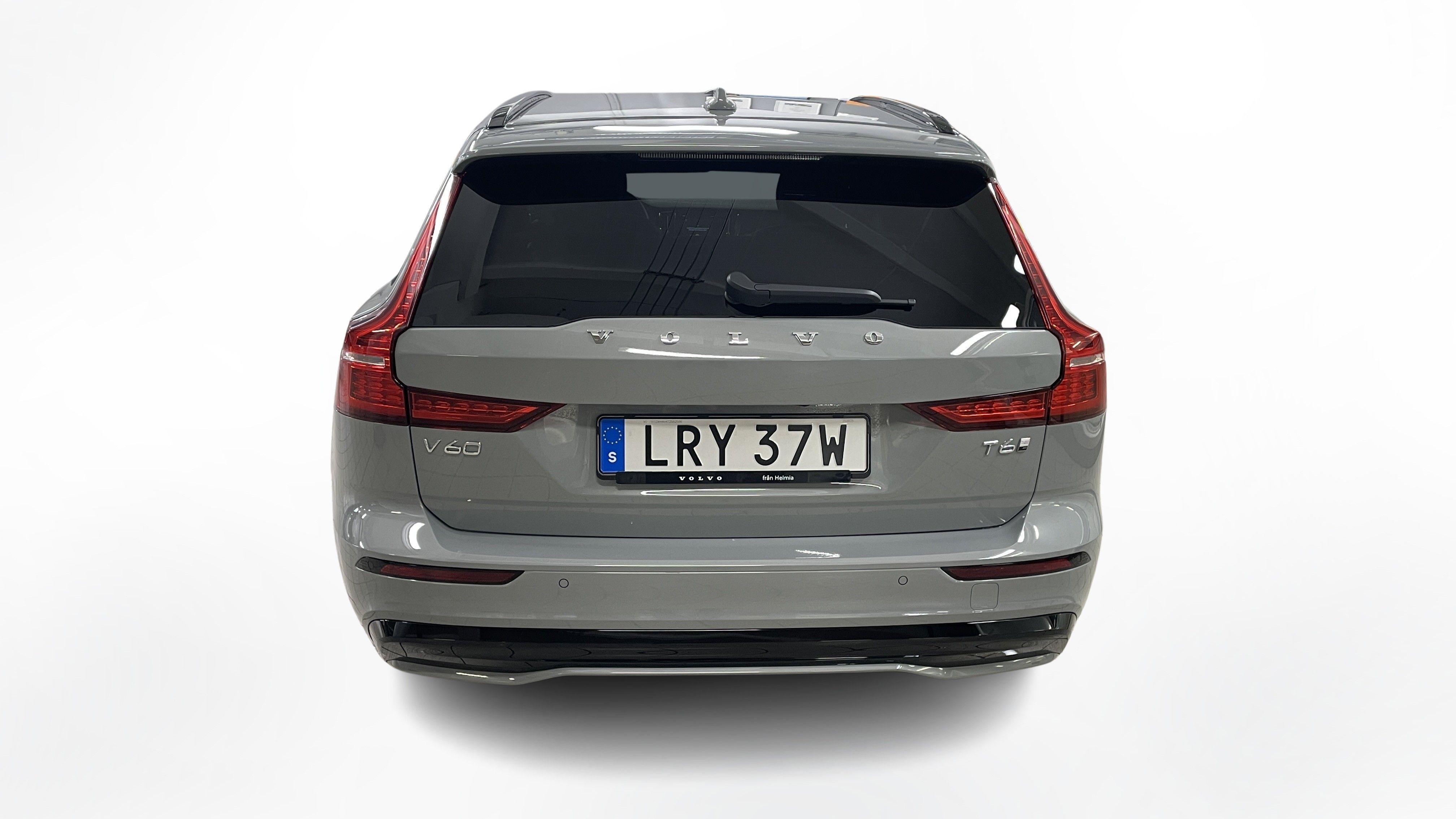 En grå ny Volvo V60 som är tillverkad 2025 med årsmodell 2026 och har utrustningspaketet Plus med 350 hk. Fordonet finns i Karlstad med reg. nummer LRY37W, har automat-växellåda och mätarställning är 0 mil. Fordonet har totalt 5 st sittplatser och är kategoriserad som mellanstor premiumbil.