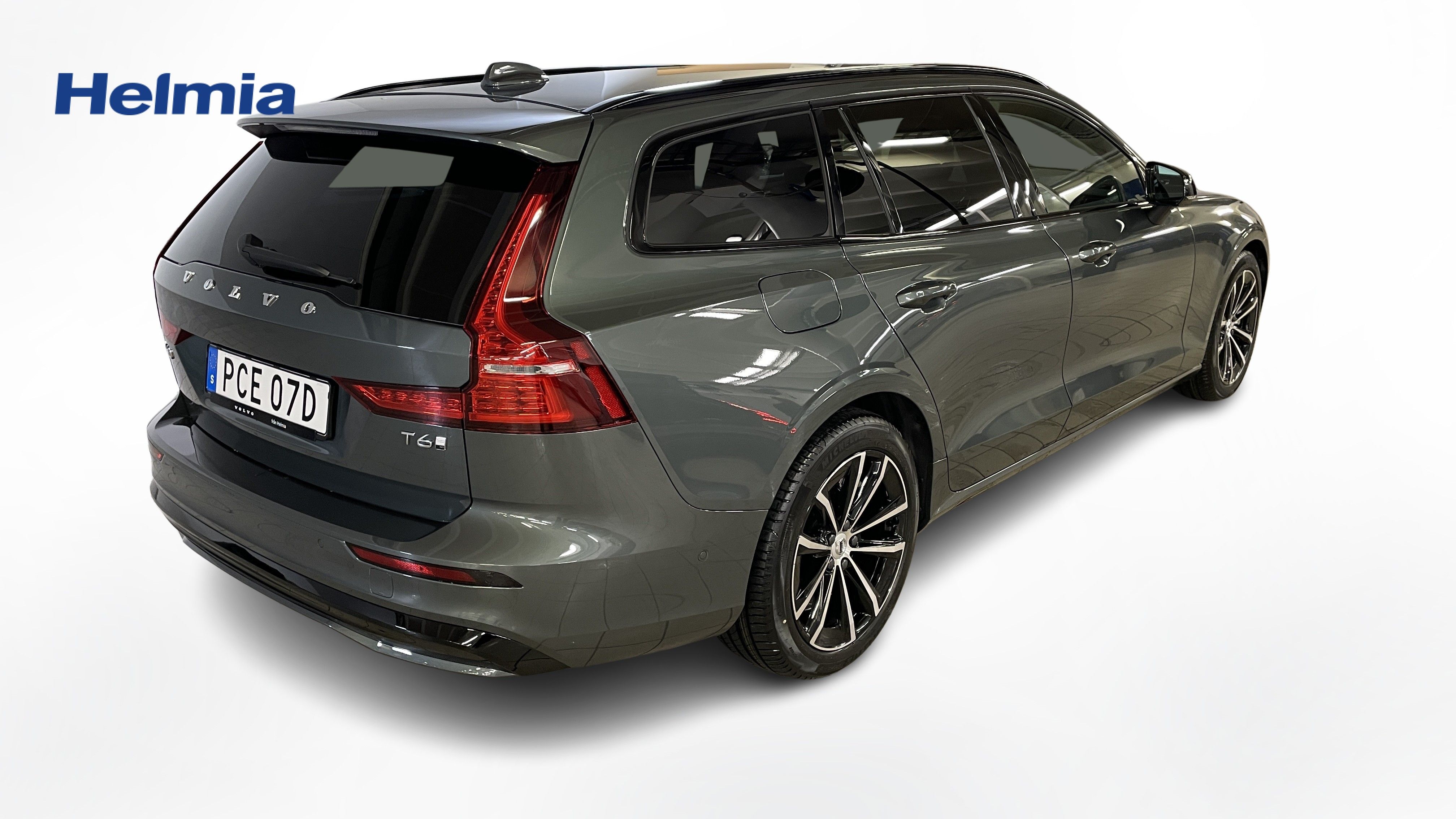 En grön ny Volvo V60 som är tillverkad 2025 med årsmodell 2026 och har utrustningspaketet Plus med 350 hk. Fordonet finns i Karlstad med reg. nummer PCE07D, har automat-växellåda och mätarställning är 0 mil. Fordonet har totalt 5 st sittplatser och är kategoriserad som mellanstor premiumbil.