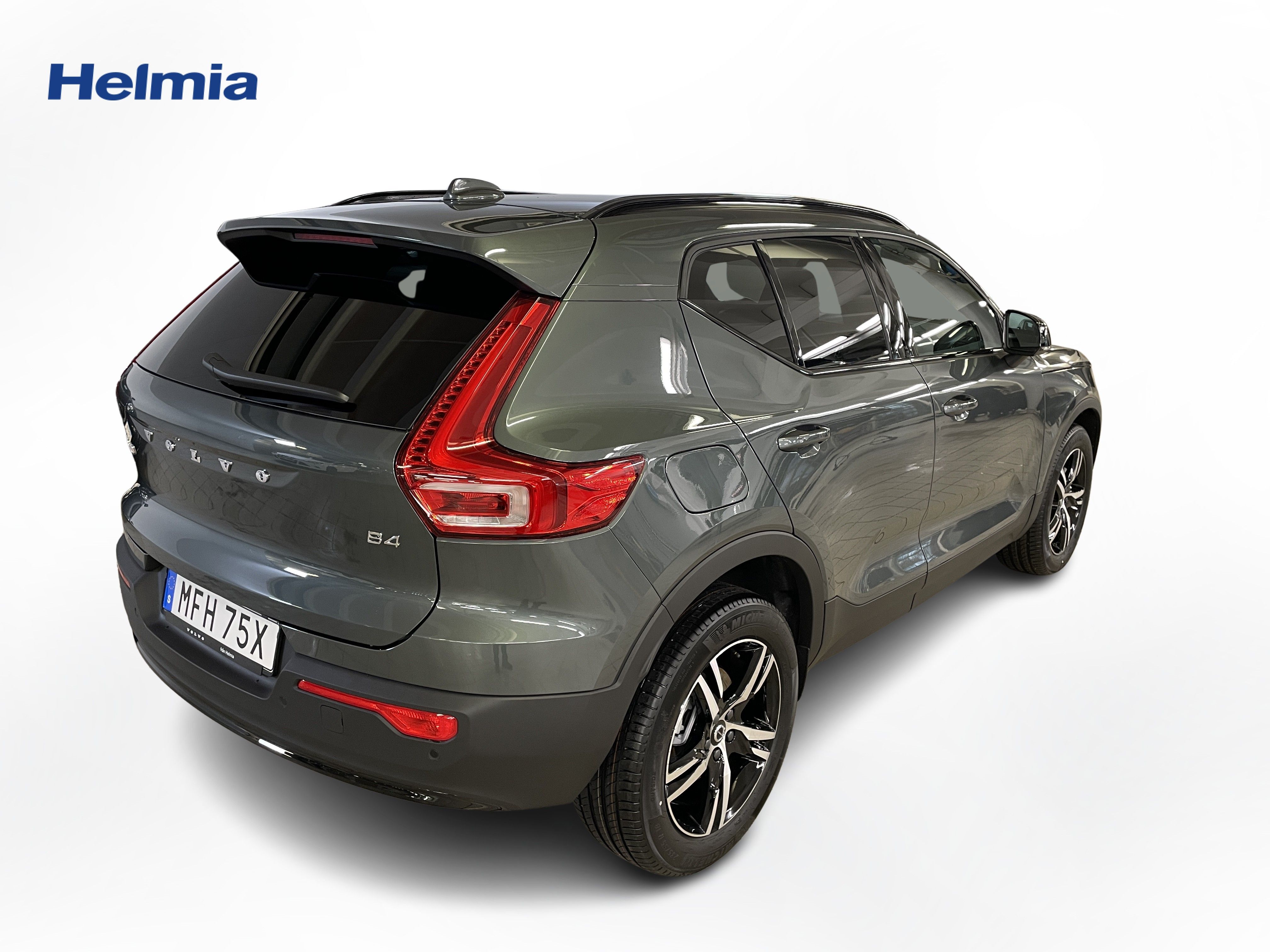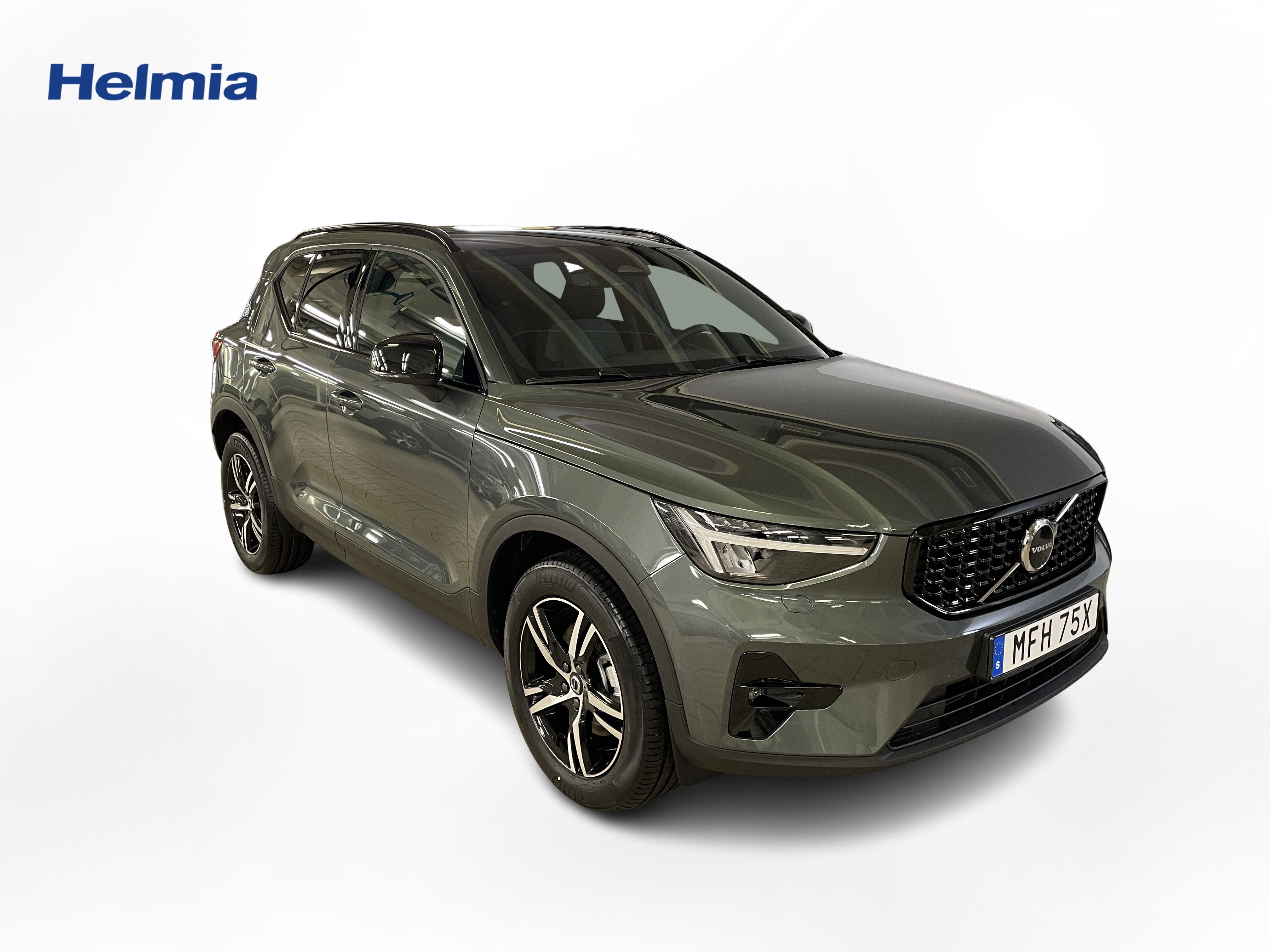 En grön ny Volvo XC40 som är tillverkad 2025 med årsmodell 2026 och har utrustningspaketet Plus med 197 hk. Fordonet finns i Karlstad med reg. nummer MFH75X, har automat-växellåda och mätarställning är 0 mil. Fordonet har totalt 5 st sittplatser och är kategoriserad som liten suv.